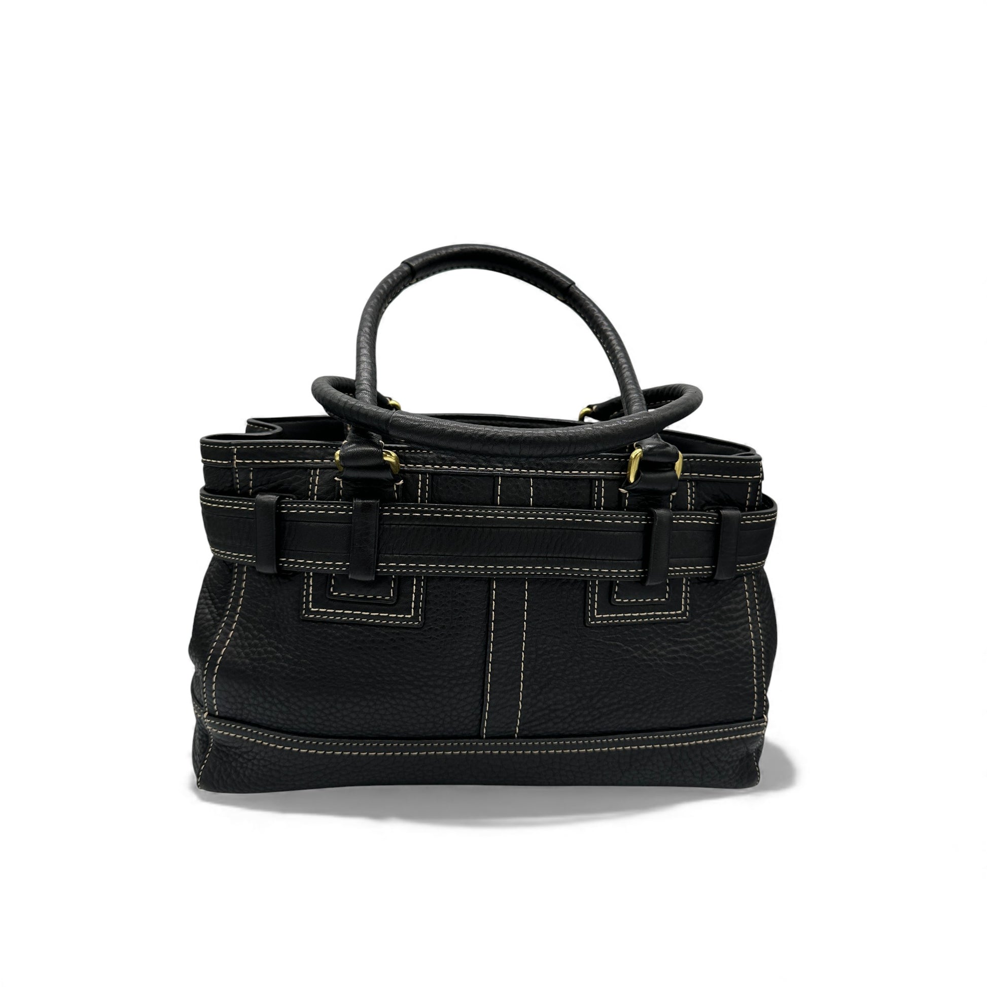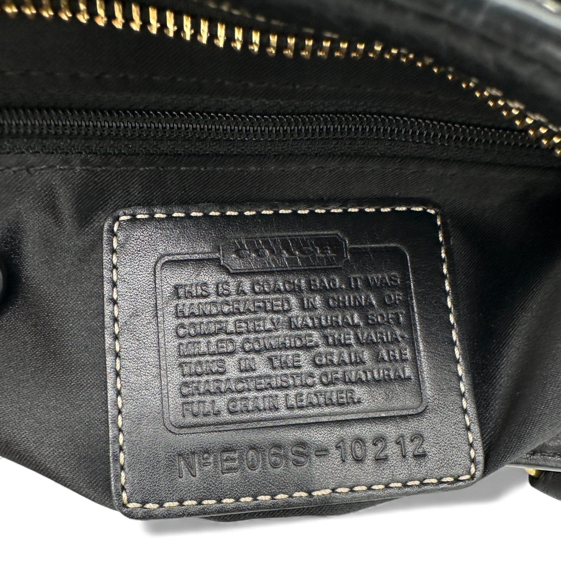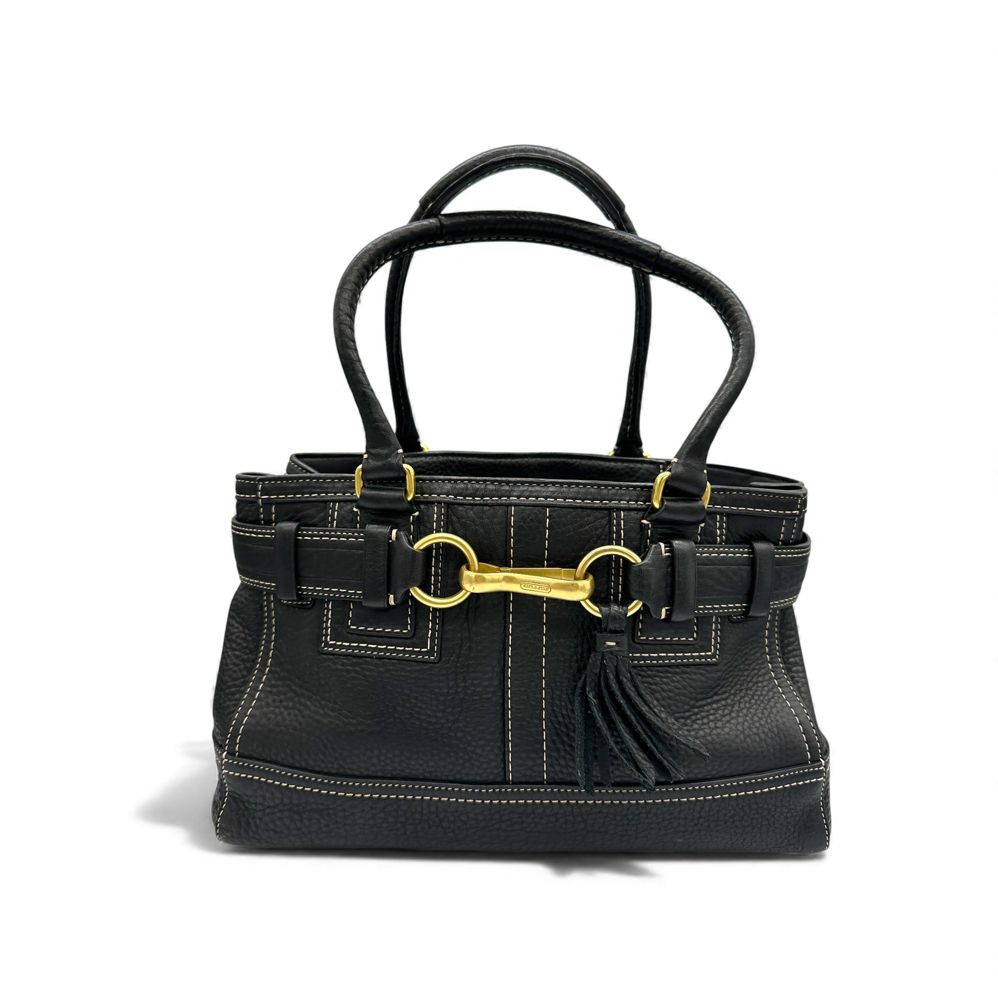 Vintage Coach 10212 Hampton Clip Handtasche. Aus schwarzem genarbtem Leder, mit goldfarbenem Messing-Horsebit-Verschluss und Quaste. Ein Y2K-Modell aus dem Jahr 2006.