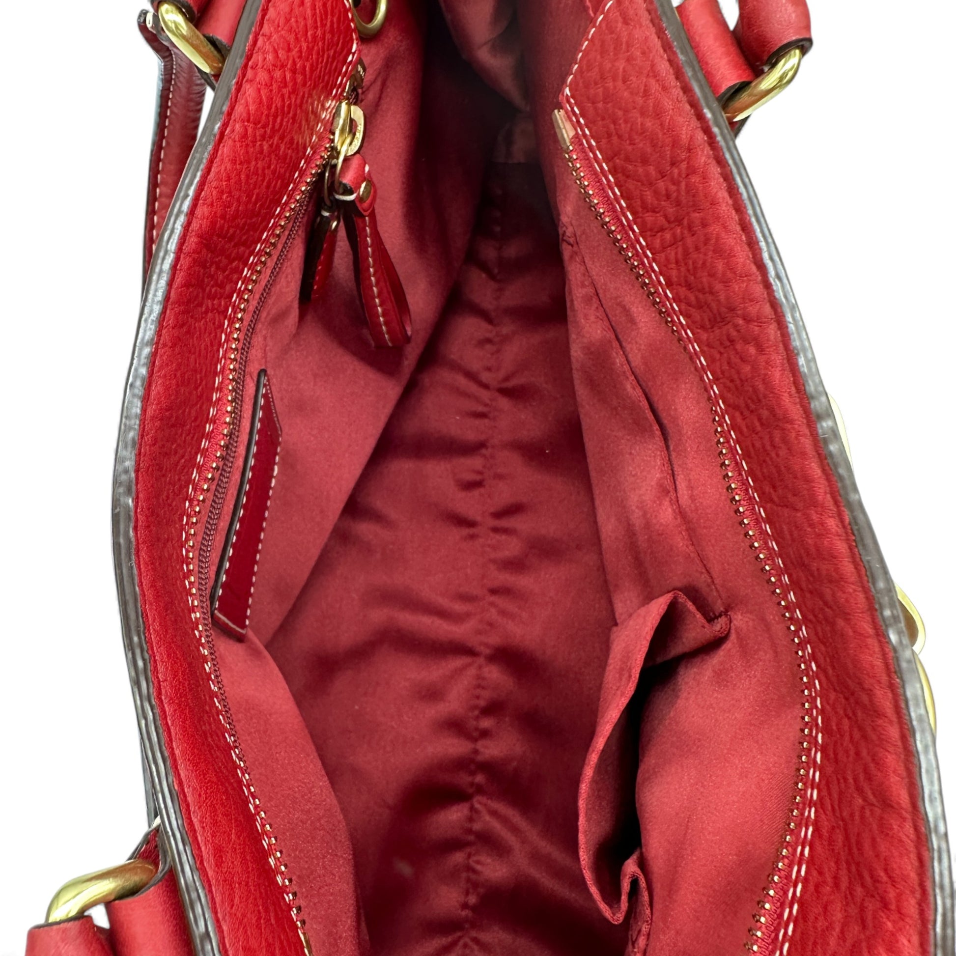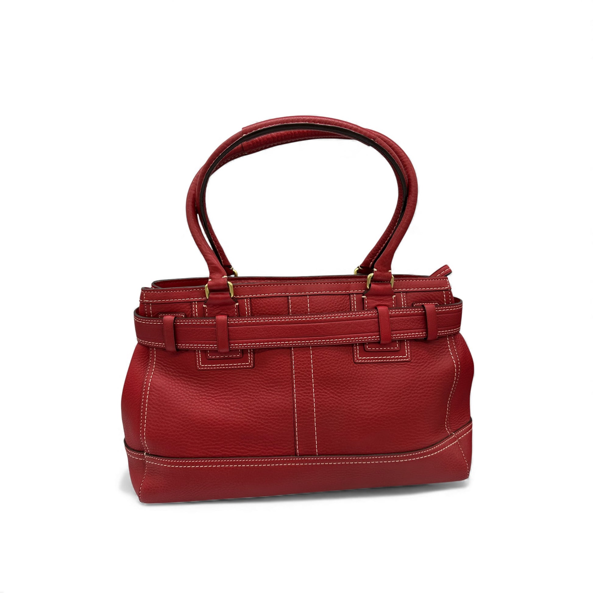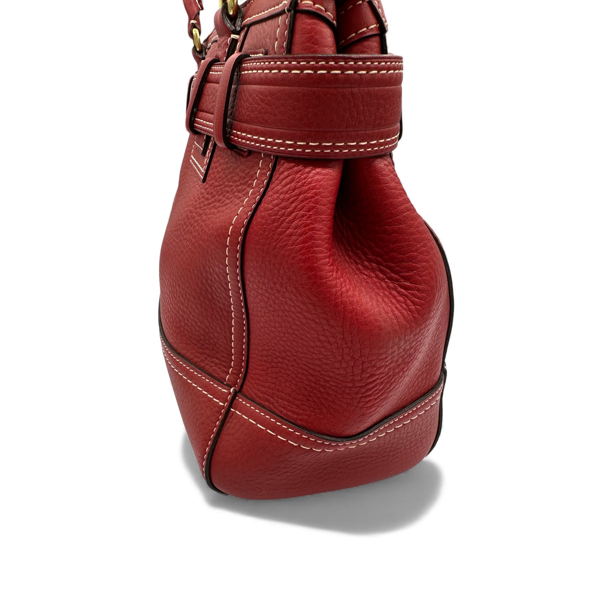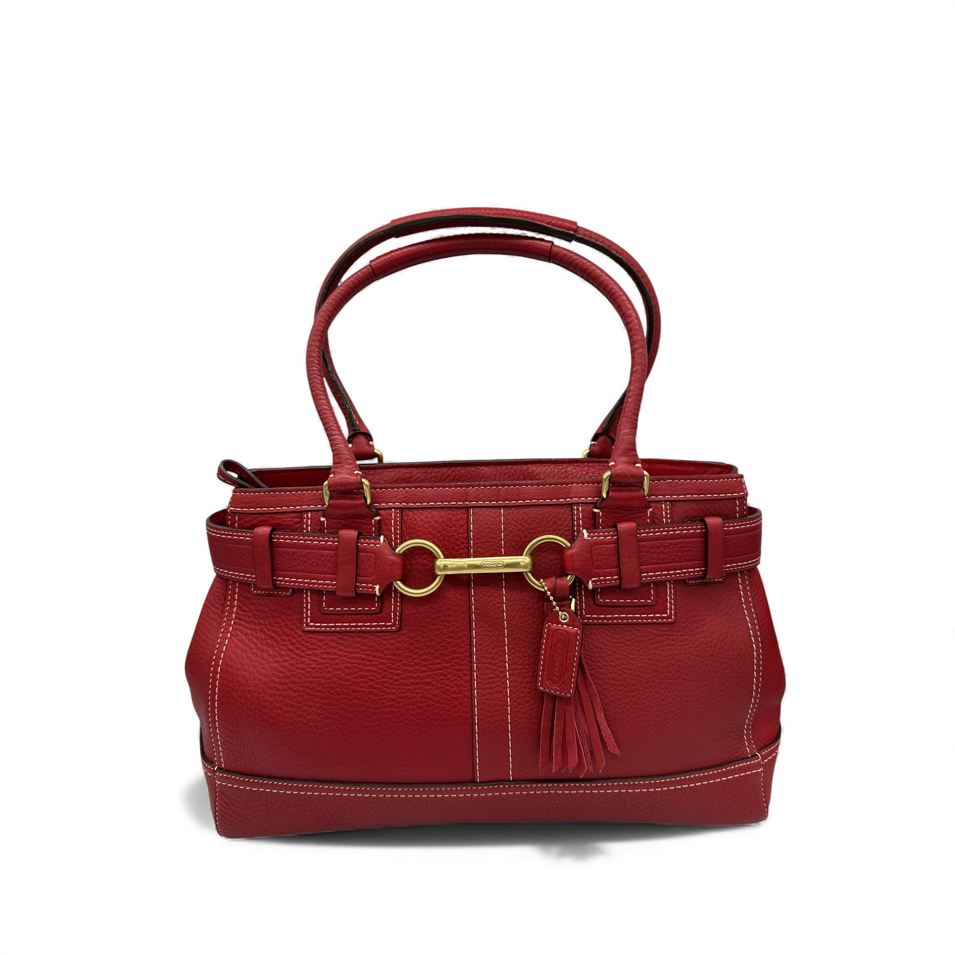 Vintage Coach Hampton Clip Handtasche, Modell 10213. Aus rotem genarbtem Leder, mit goldfarbenem Messing-Clip in Form eines Pferdegebisses und Quaste. Ein Y2K-Modell aus dem Jahr 2006.