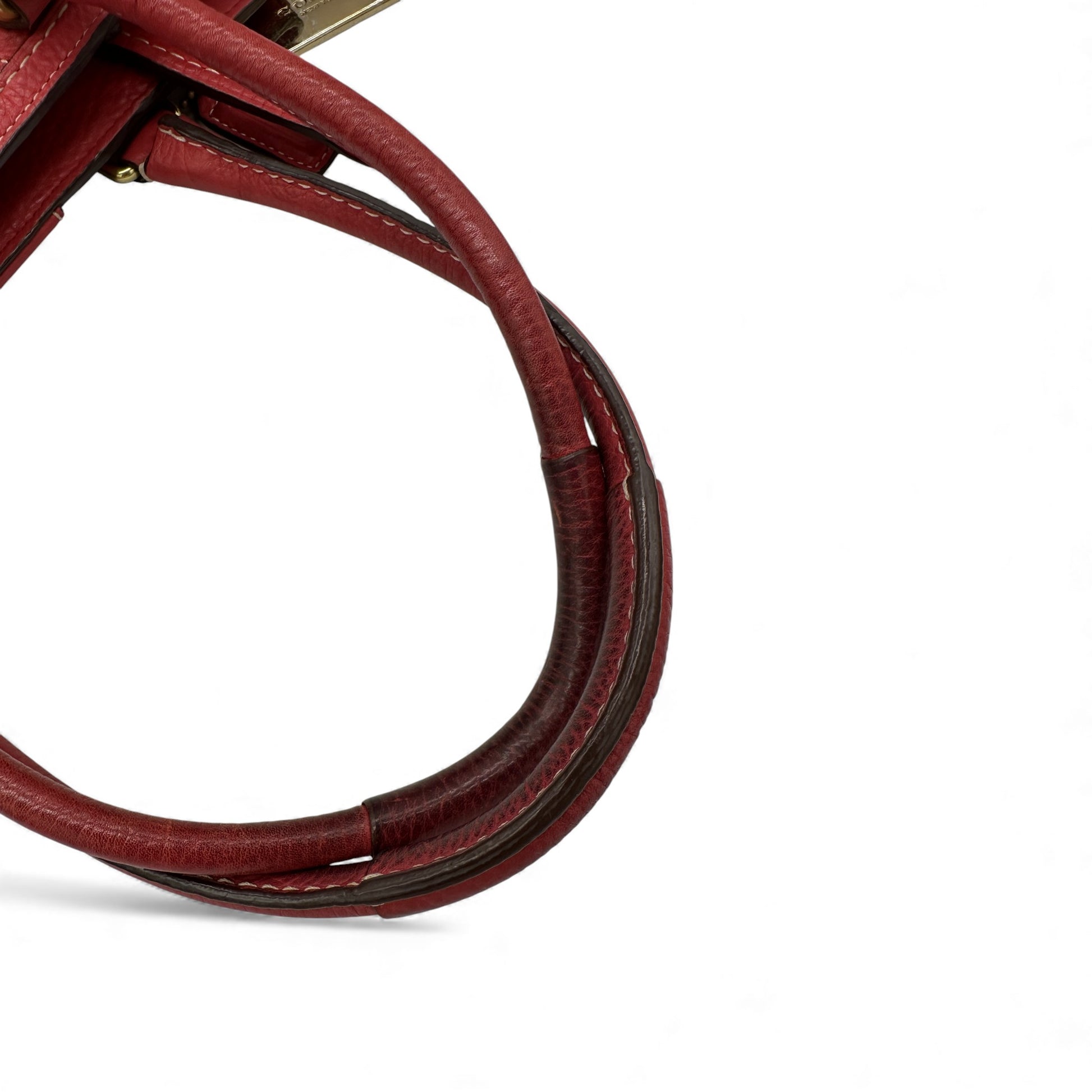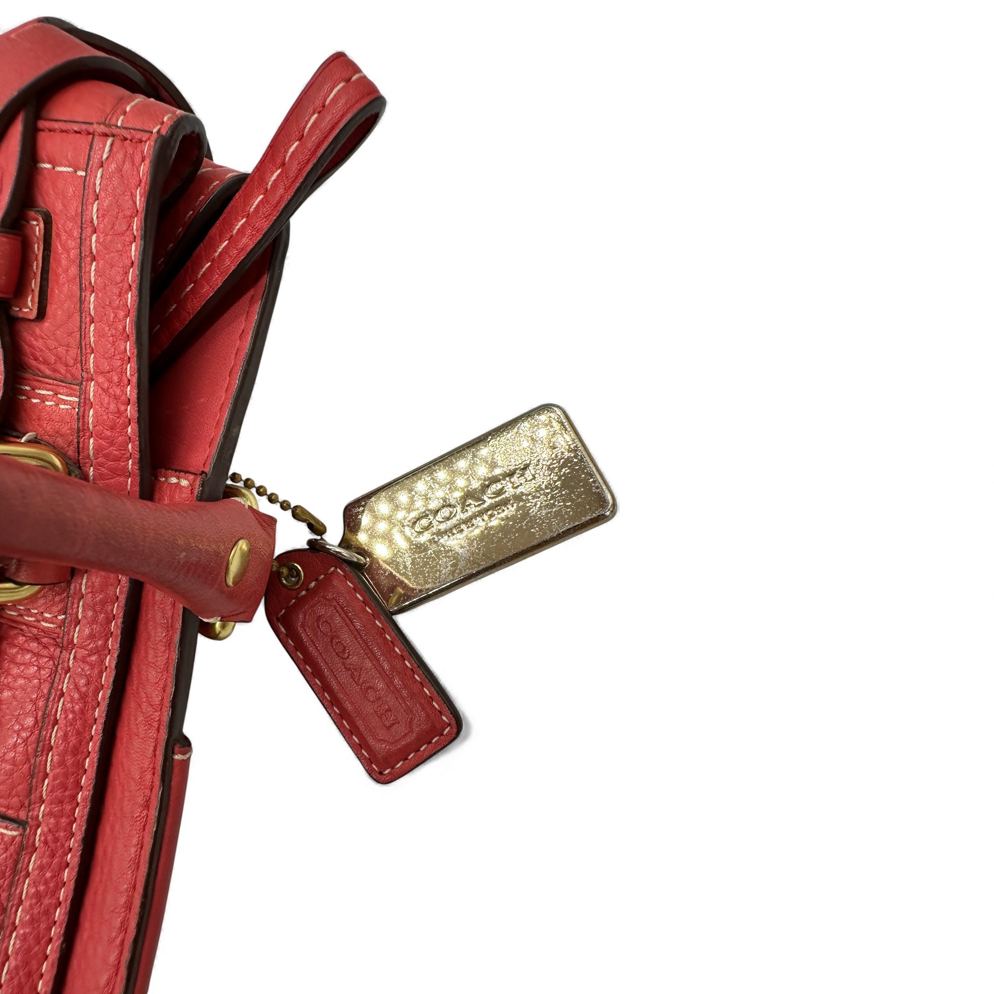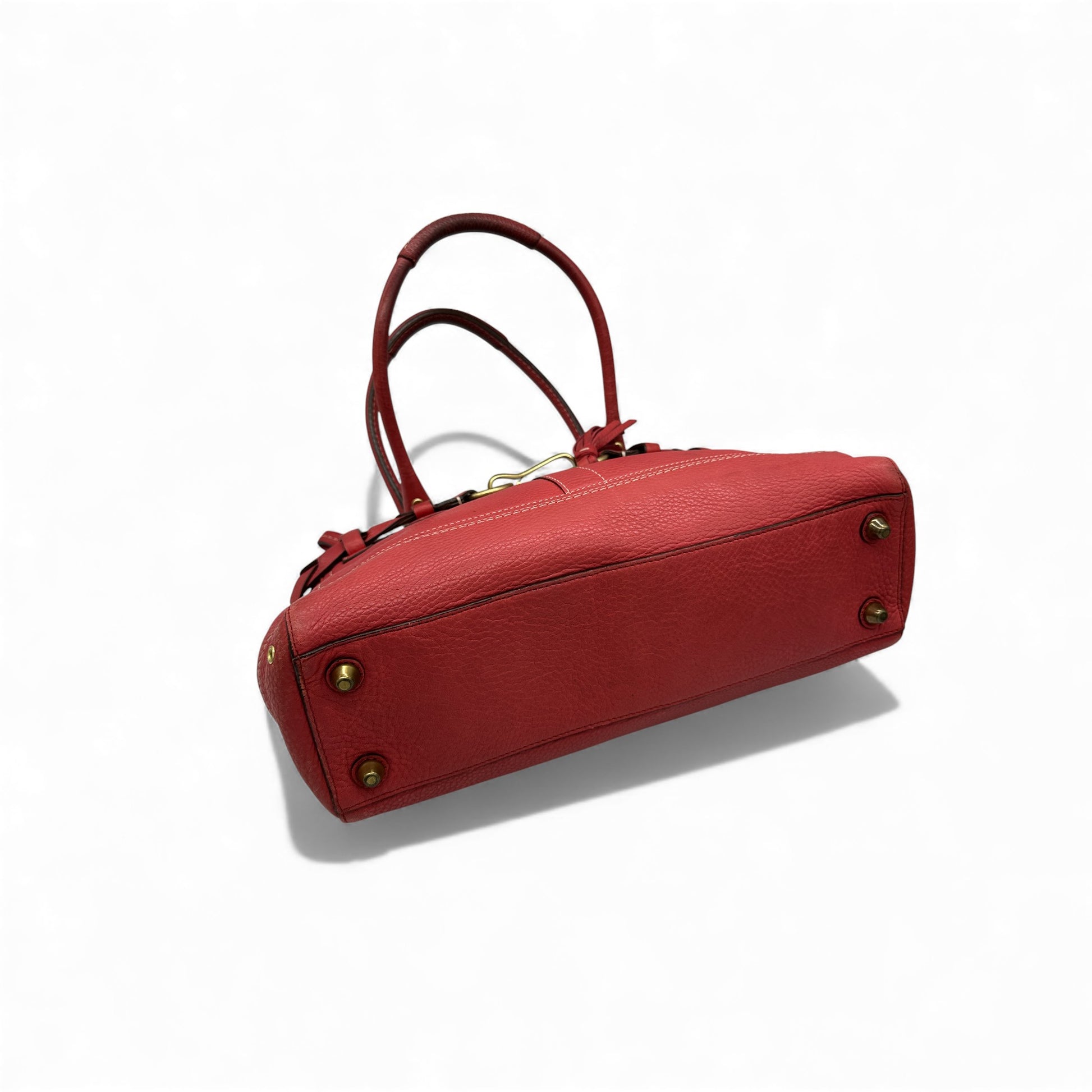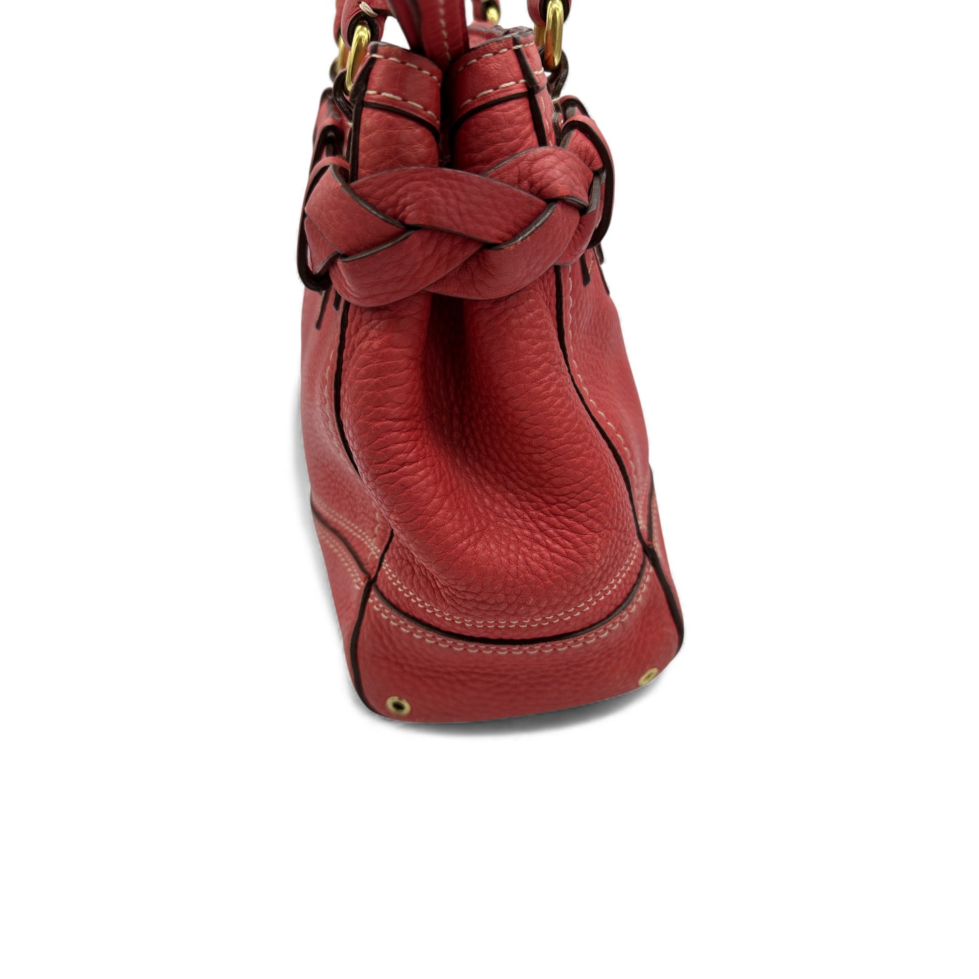 Vintage Coach Hamptons Tote Handtasche, Modell 10528. Aus weichem, genarbtem Rindsleder in Rot, mit Messing-Trageverschluss und geflochtenen Akzenten. Mit Coach-Lederanhänger und goldfarbenem Metallanhänger. Ein Y2K-Modell aus dem Jahr 2006.