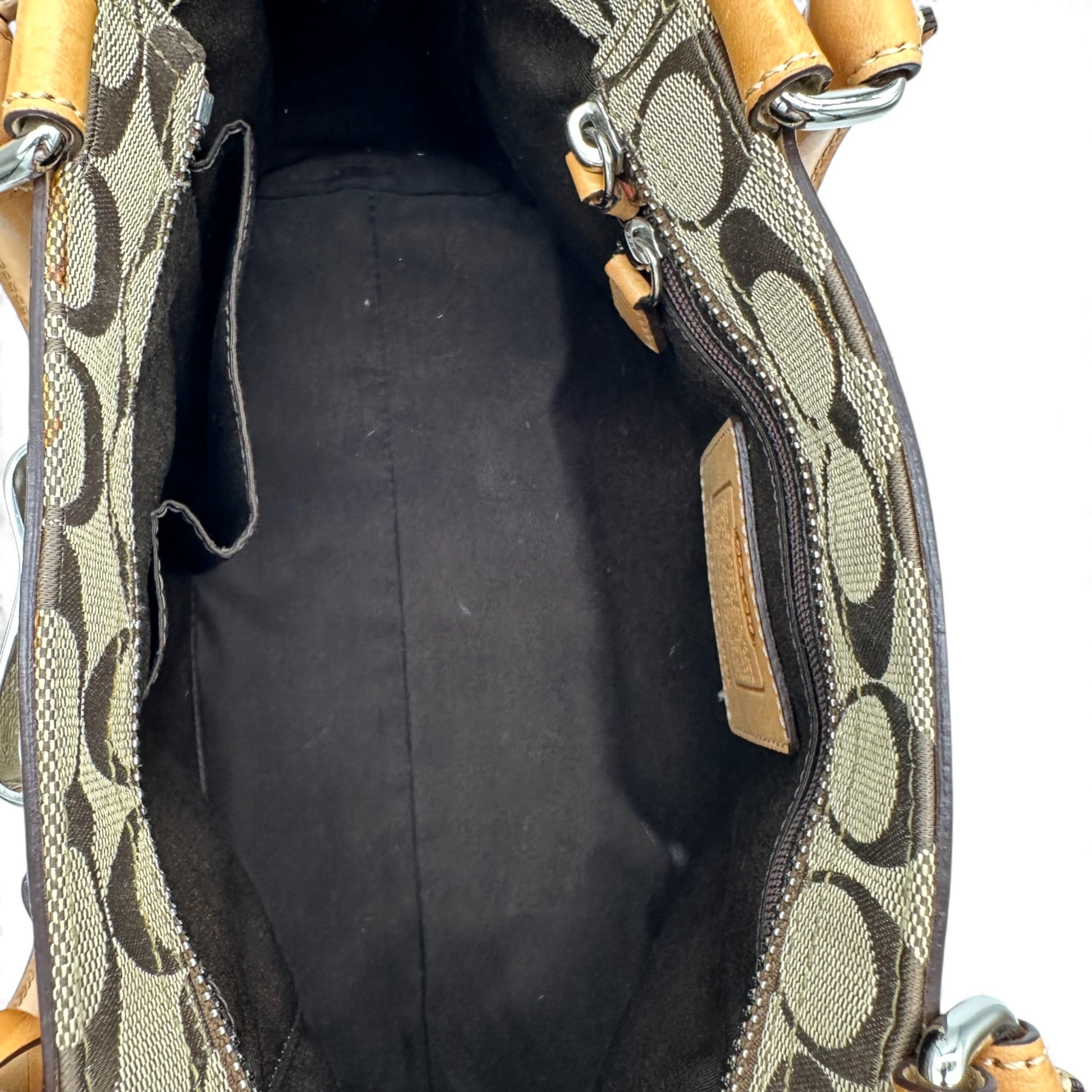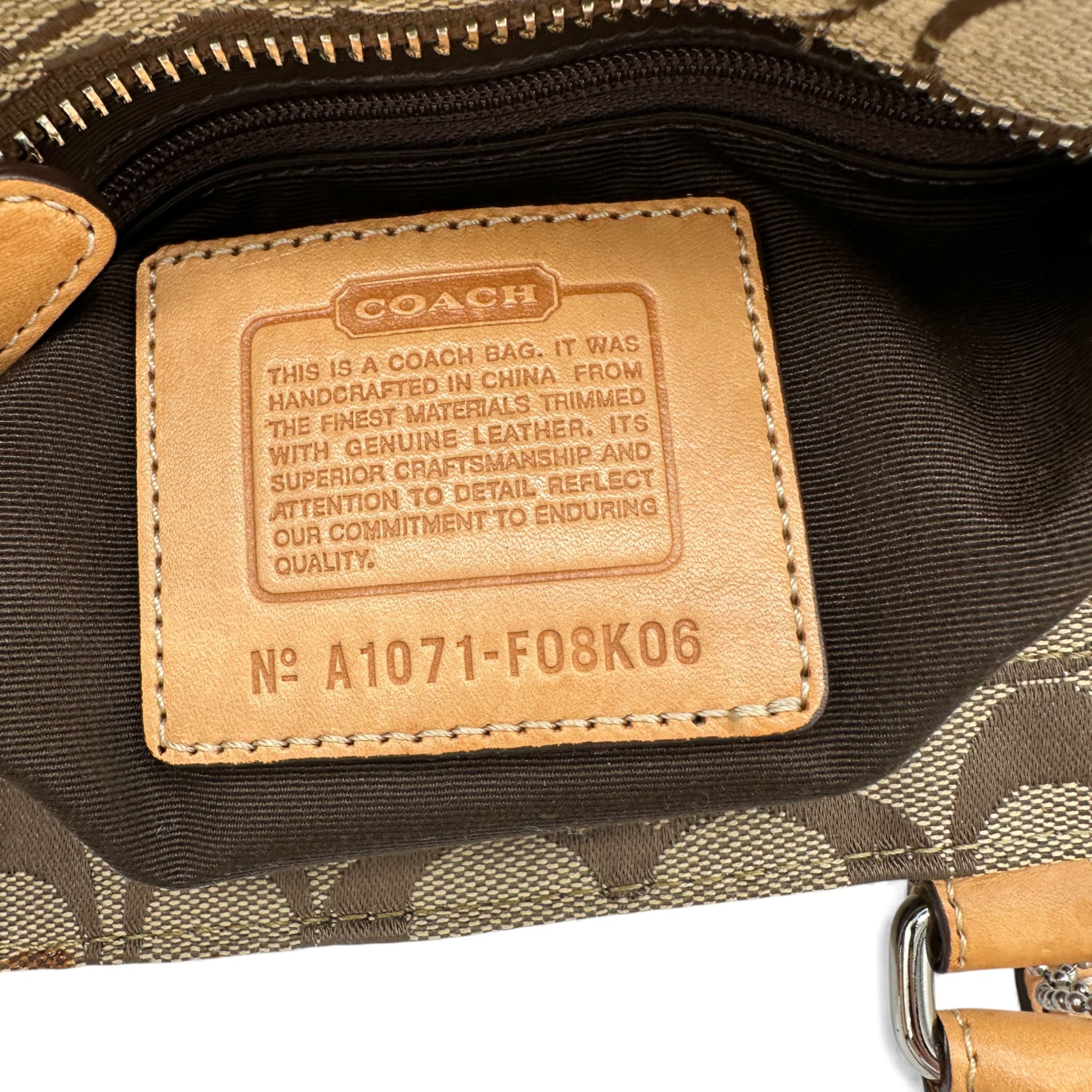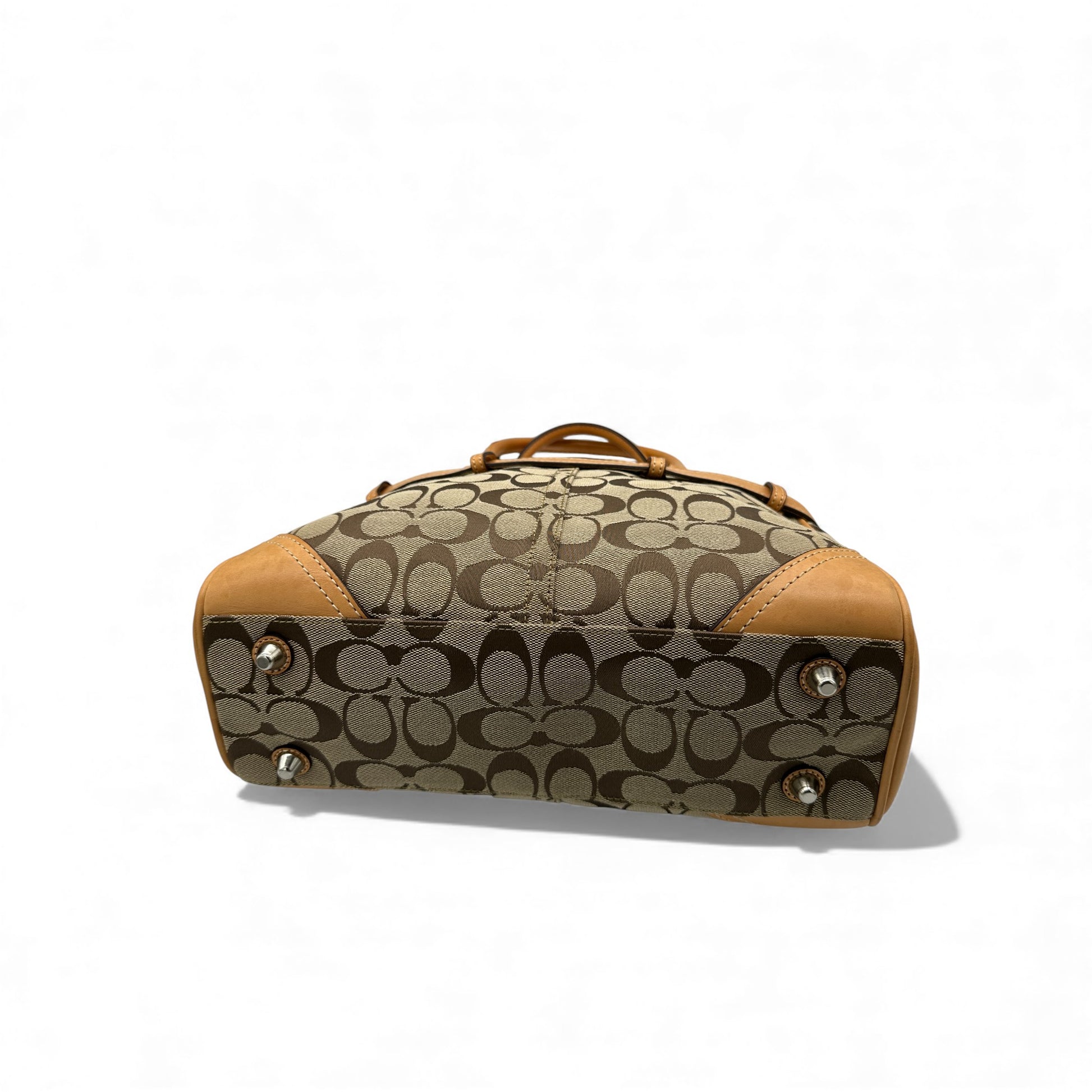 Vintage Coach F08K06 Hamptons Clip Tote Handtasche. Beige mit charakteristischem Monogramm, silberfarbenem Horsebit-Clip und hellbraunem Lederbesatz. Ein Y2K-Modell aus dem Jahr 2010.