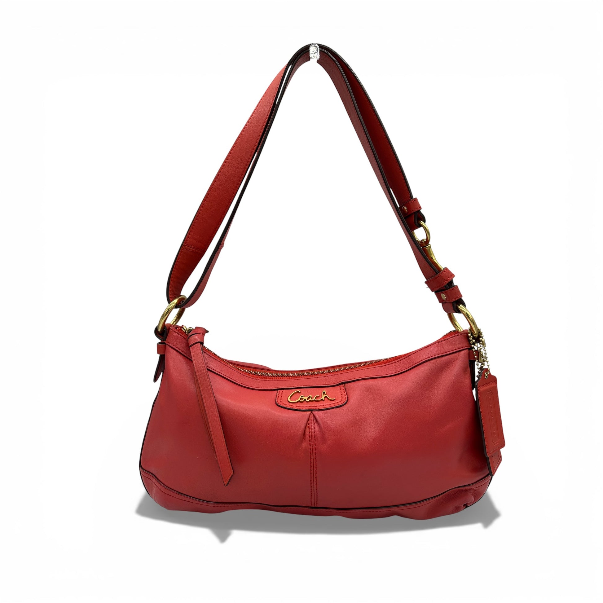 Vintage Coach 8A64 Rote Leder-Baguette-Schultertasche