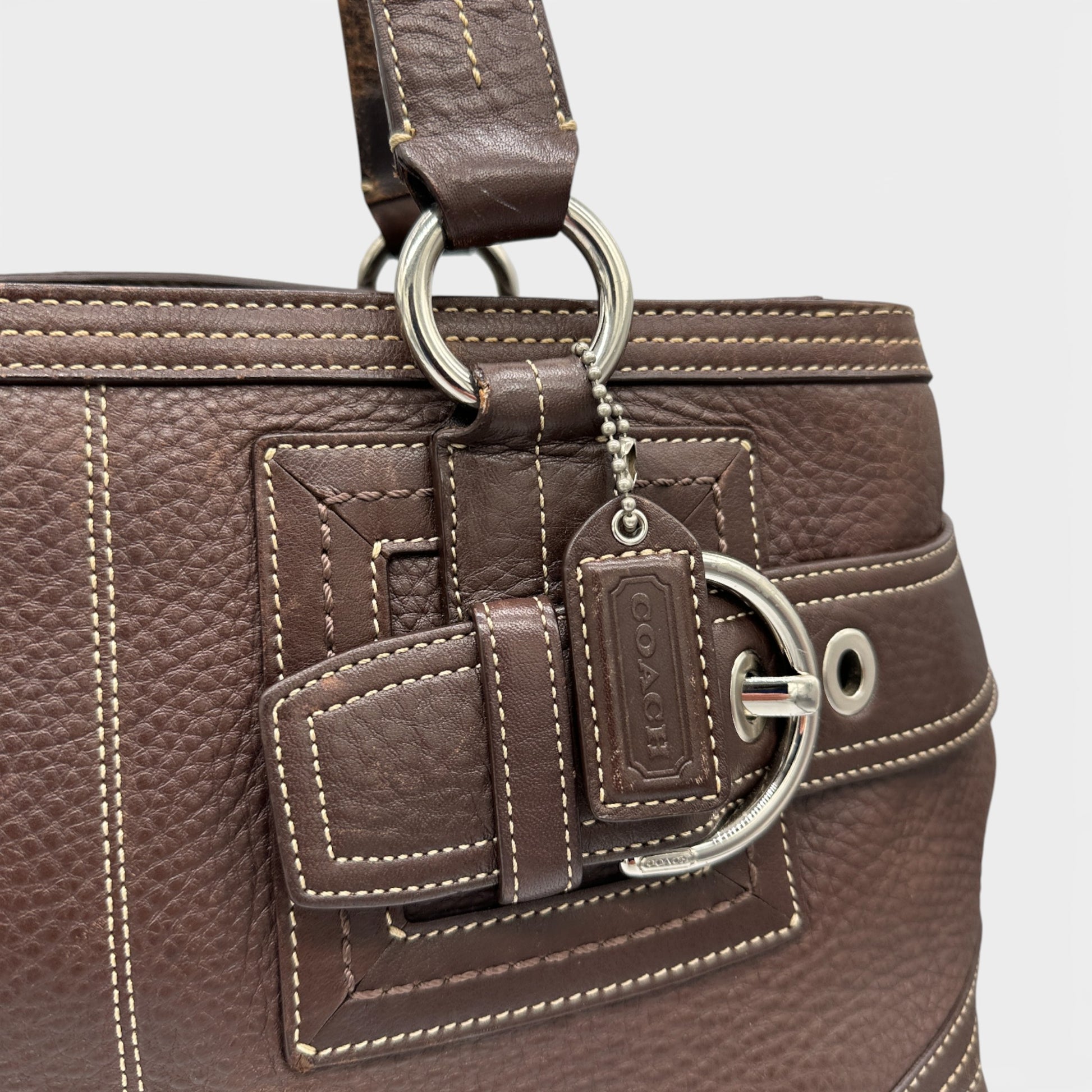 Vintage Coach 2116 Soho Tote Schultertasche. Aus glattem, schwarzem Rindsleder mit silberfarbenen Soho-Schnallen. Ein Y2K-Modell aus dem Jahr 2006.