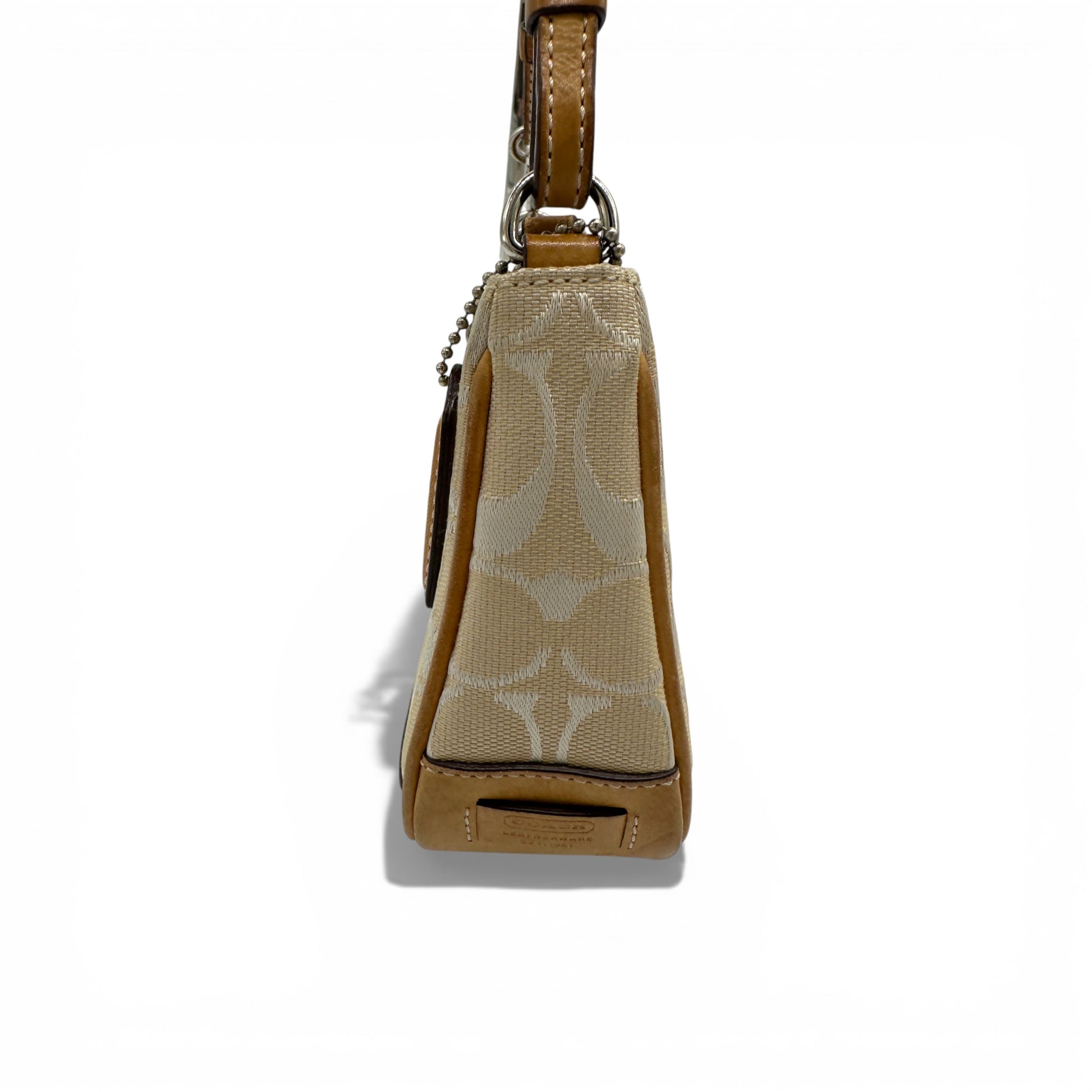 Vintage Coach 6094 Demi Mini Schultertasche. Weiß mit silbernem Coach-Monogramm und hellbraunem Lederbesatz. Ein Y2K-Modell aus dem Jahr 2004.