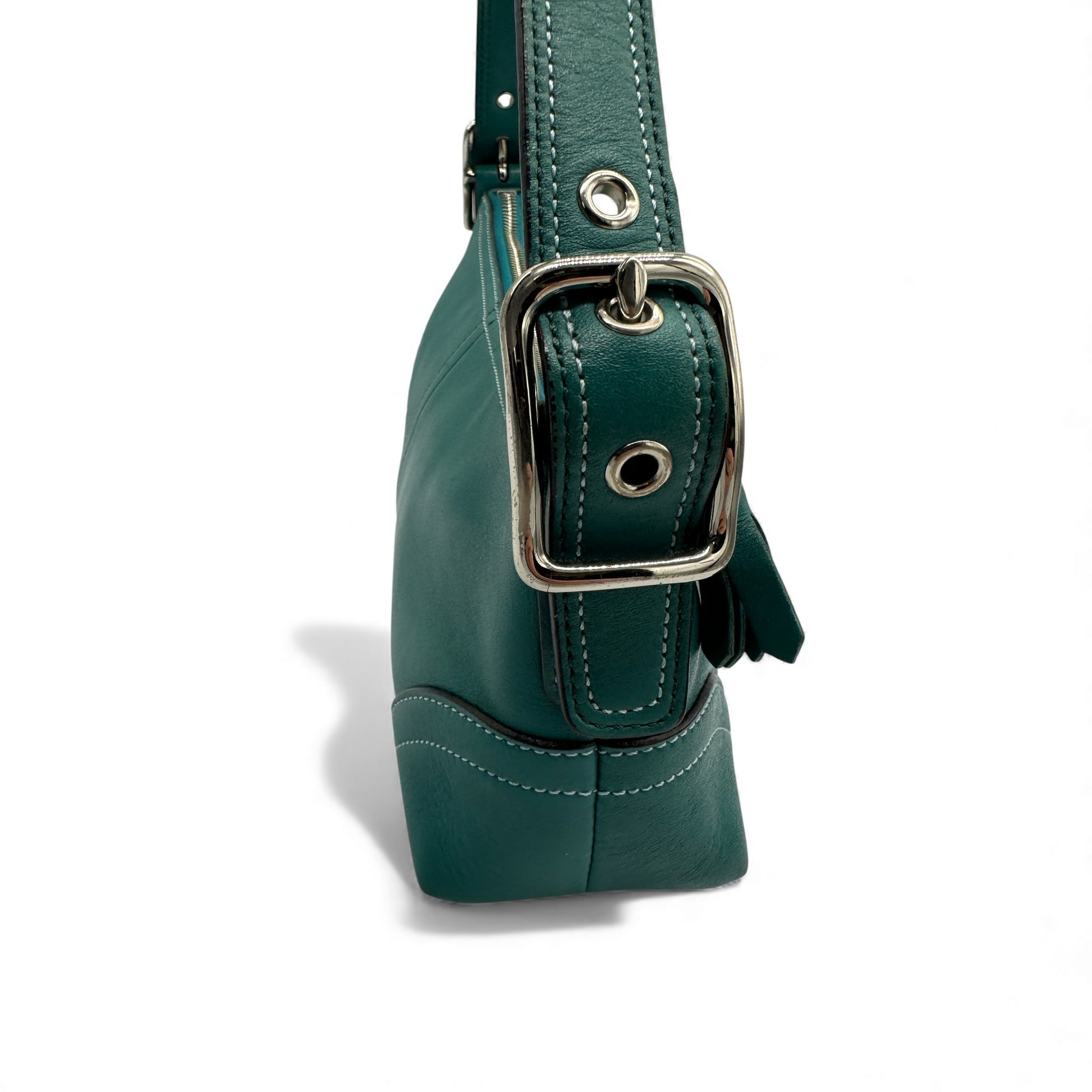 Vintage Coach 8A64 Schultertasche aus türkisfarbenem Leder im Baguette-Stil