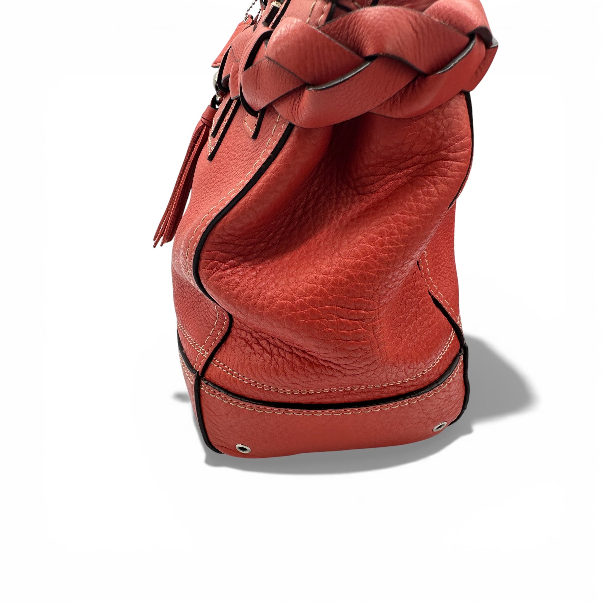 Vintage Coach Hampton Clip Handtasche, Modell F13087. Aus weichem, rotem, genarbtem Rindsleder, mit silberfarbener Trensenschnalle und geflochtenen Akzenten. Ein Y2K-Modell aus dem Jahr 2009.