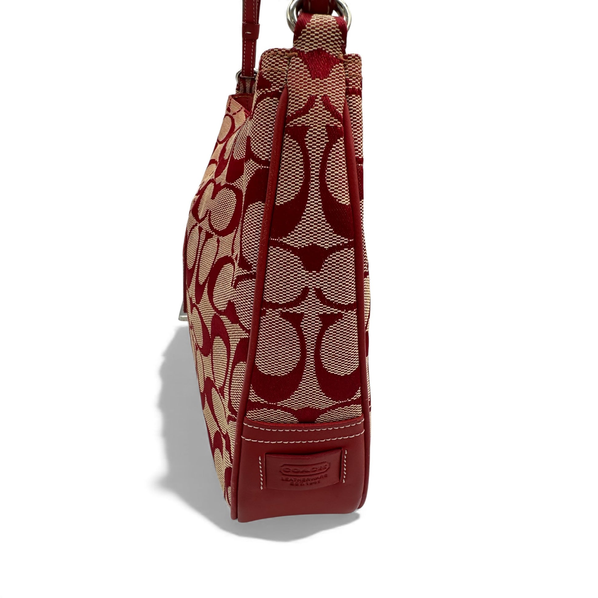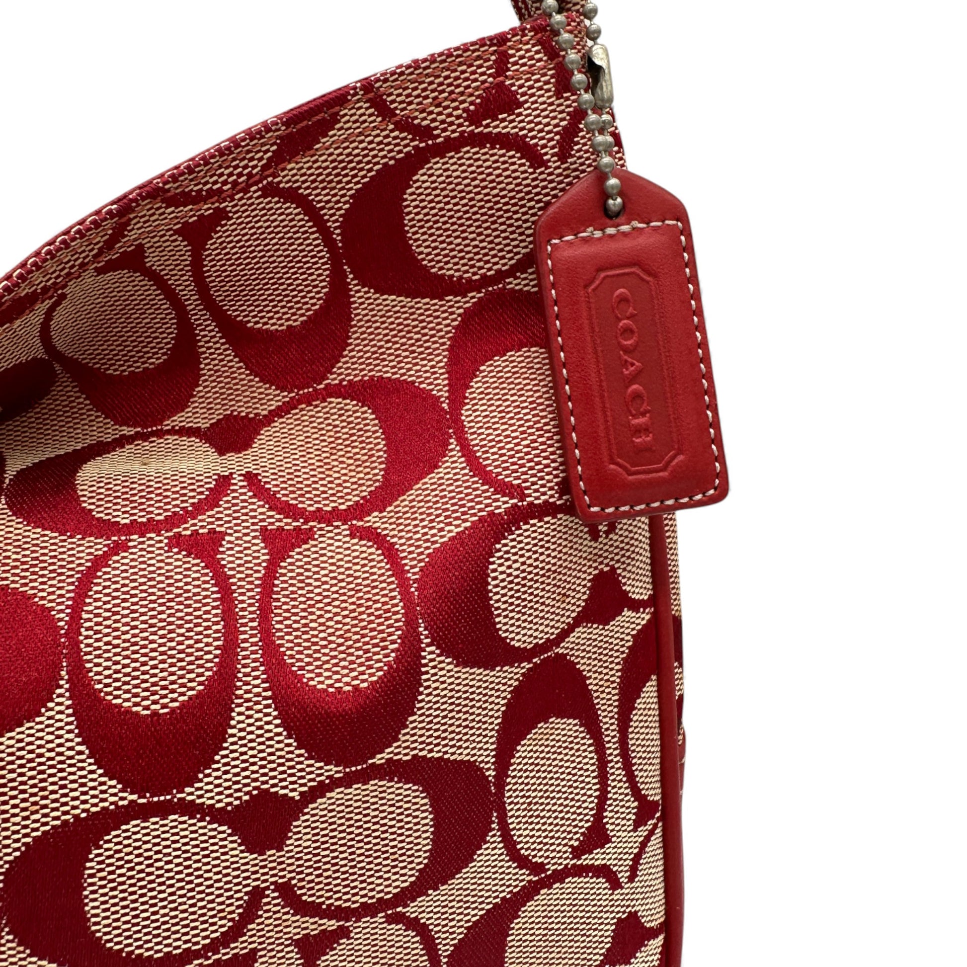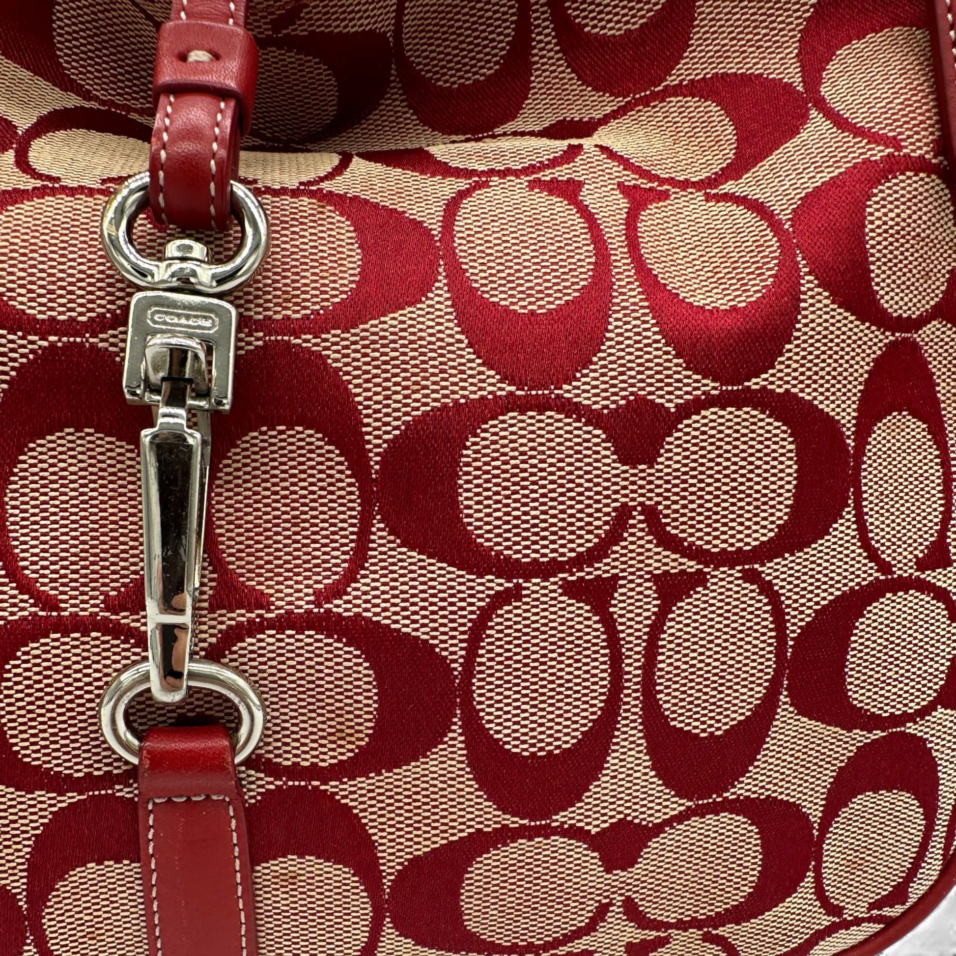 Vintage Coach 6091 Hamptons Clip Shoulder Bag. In rare red signature monogram, trimmed with red leather and silver clip hardware. A Y2K piece from 2001.