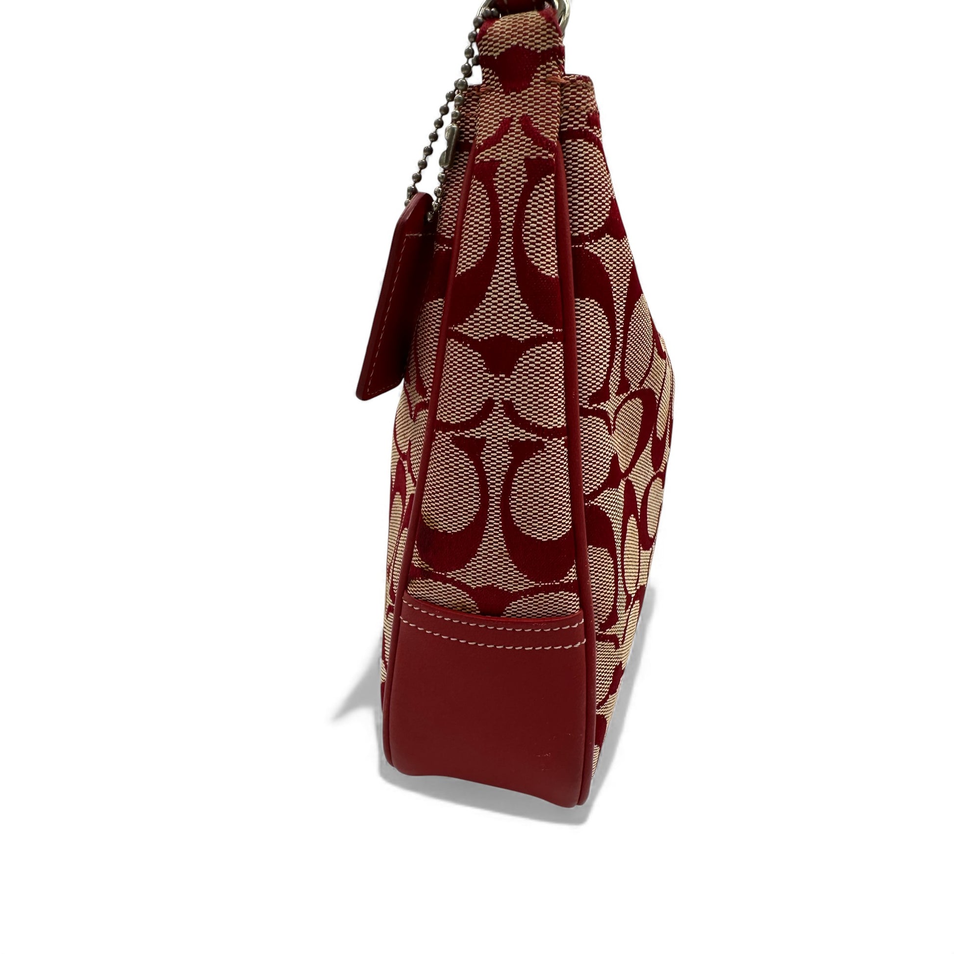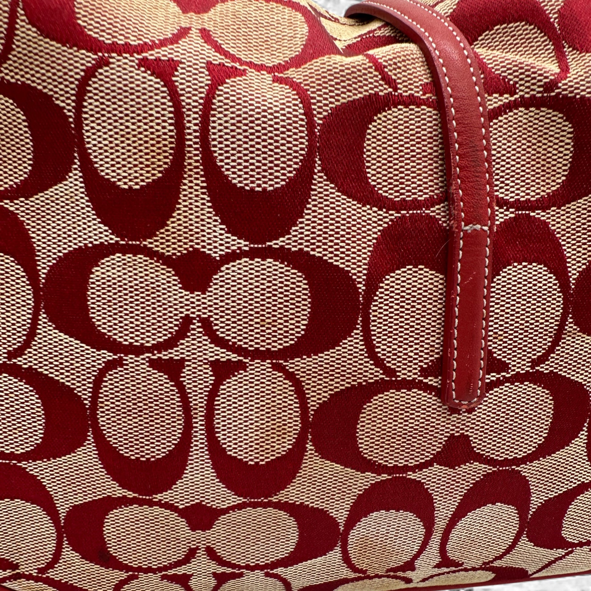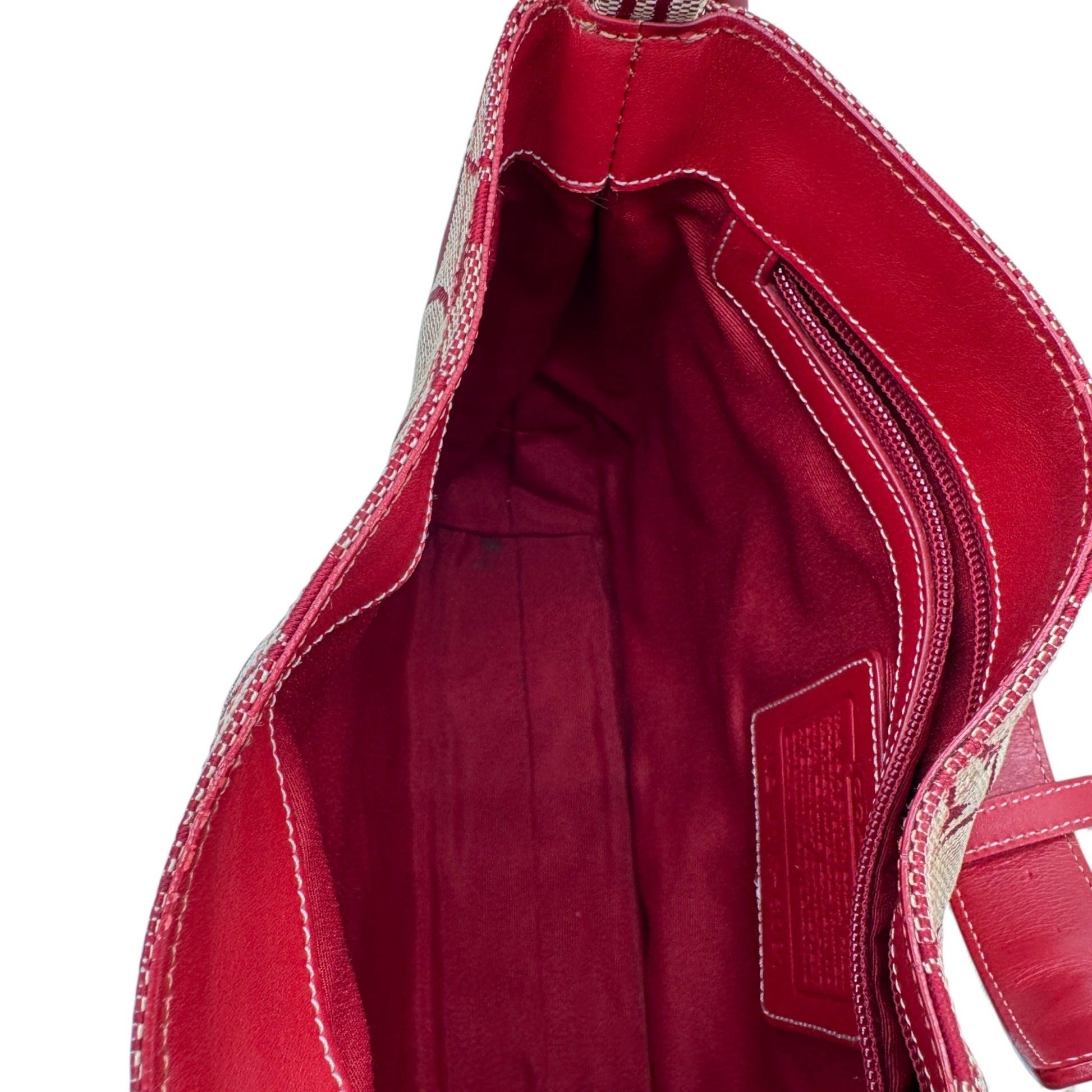Vintage Coach 6091 Hamptons Clip Shoulder Bag. In rare red signature monogram, trimmed with red leather and silver clip hardware. A Y2K piece from 2001.
