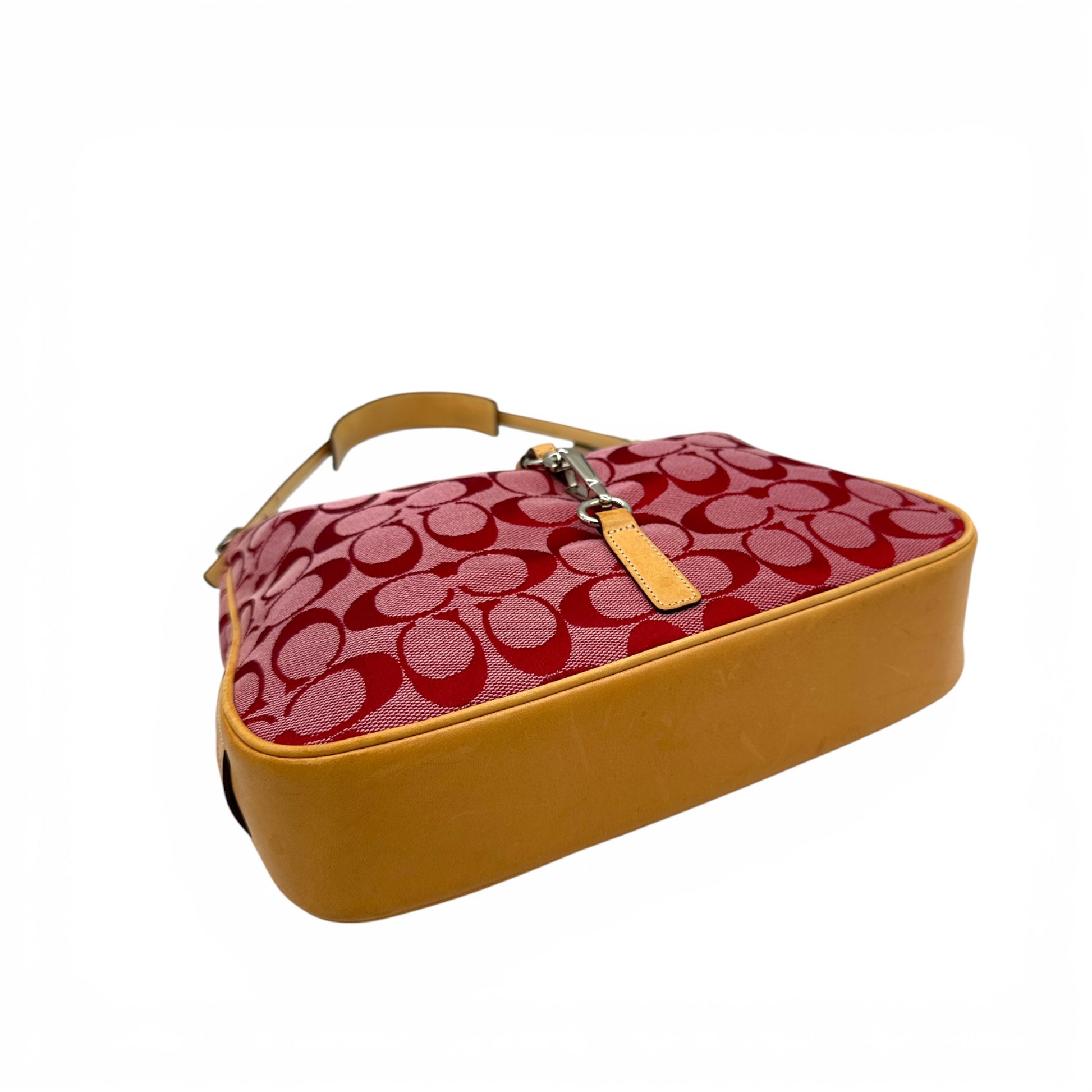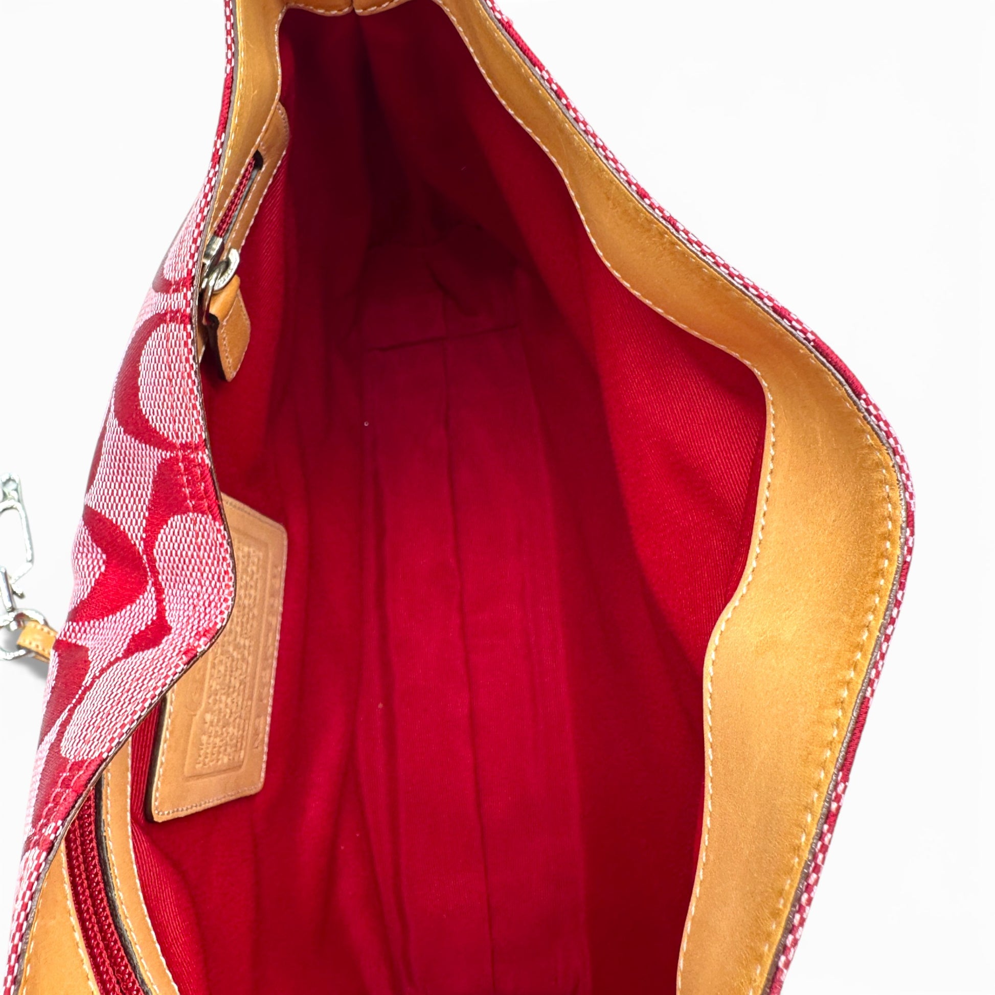 Vintage Coach 6091 Hamptons Clip Shoulder Bag. In deep burgundy red signature monogram, trimmed with tan leather and silver clip hardware. A Y2K piece from 2002.