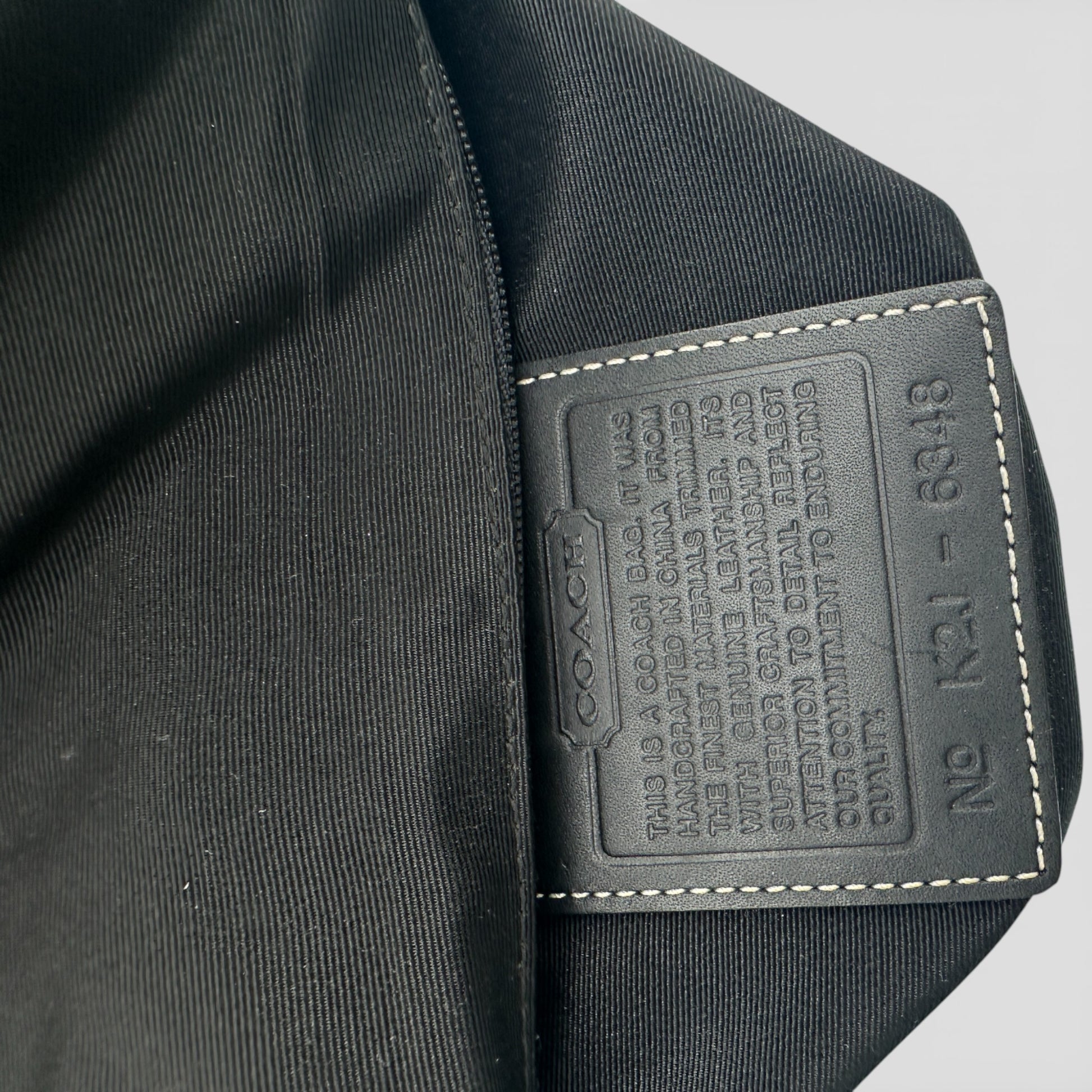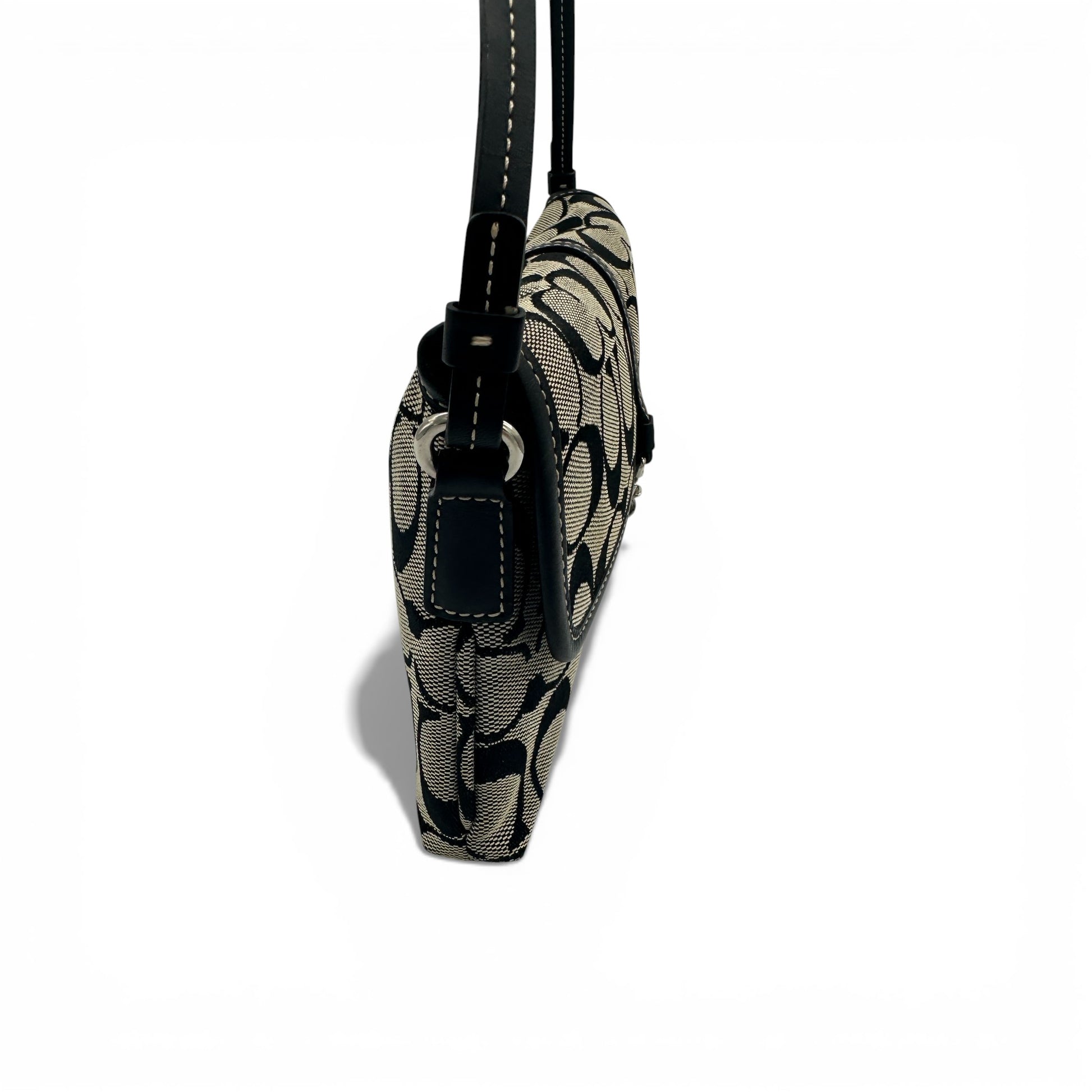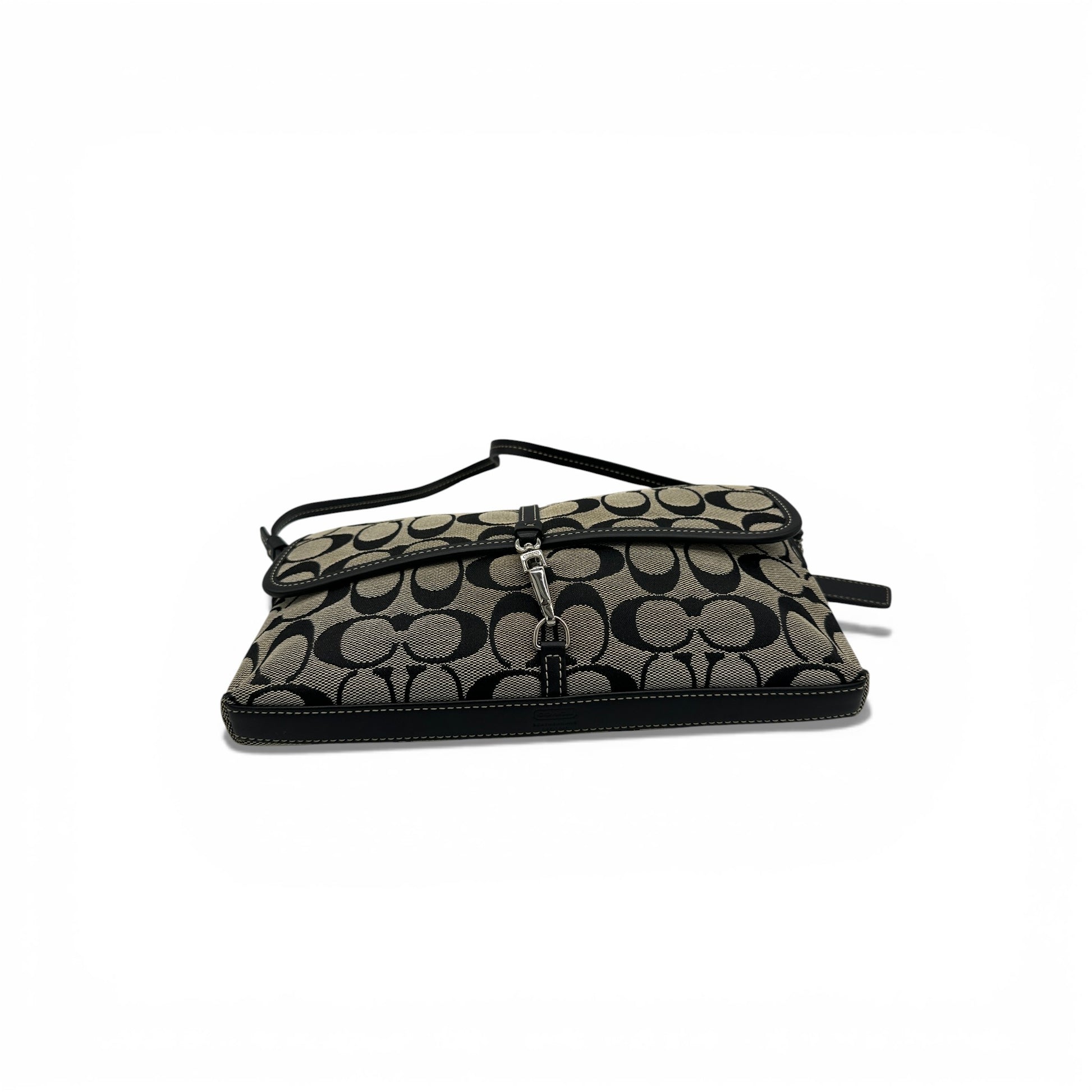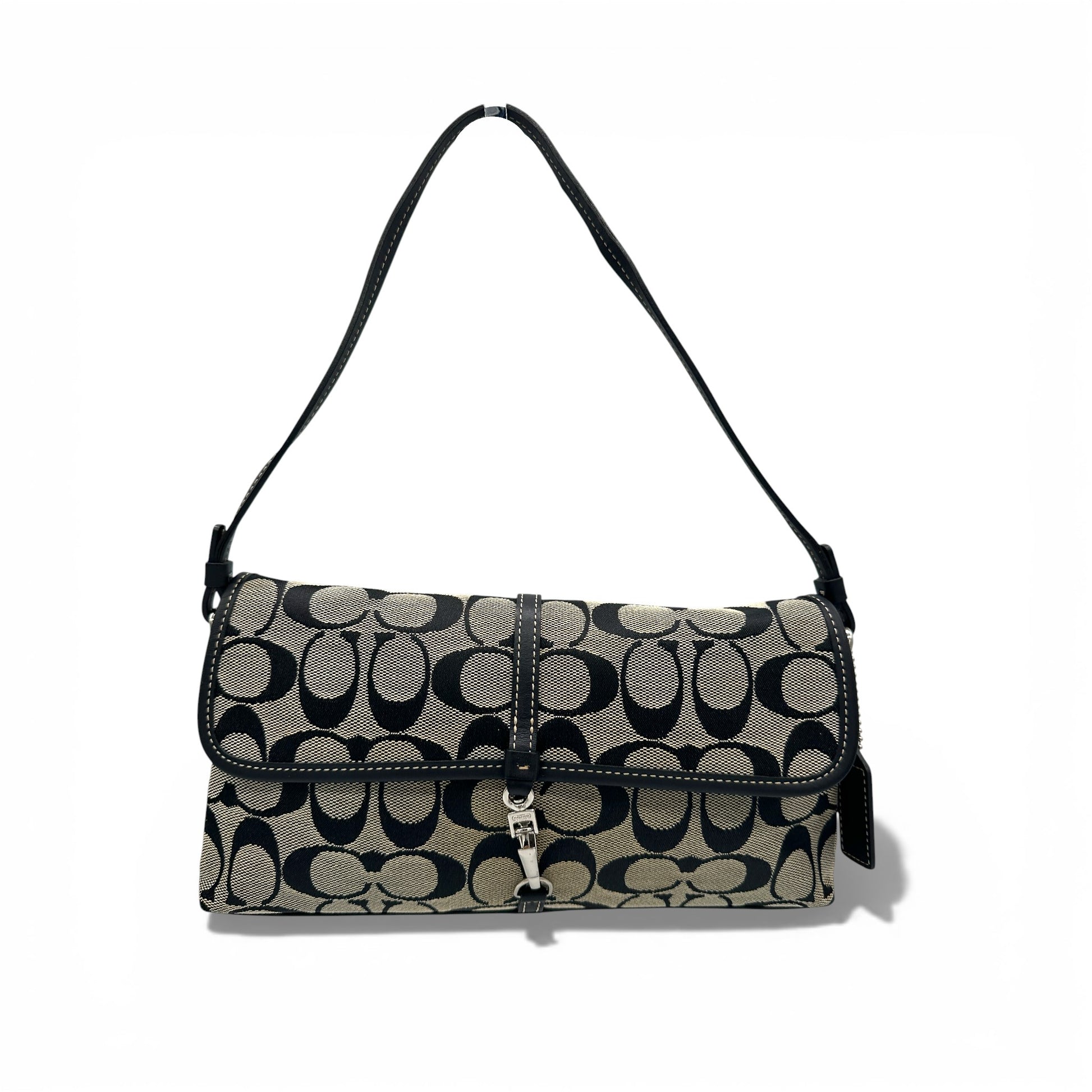 Vintage Coach 6348 Demi Hampton Clip Shoulder Bag in black and grey signature monogram with black leather trim and silver hardware - with flap and clip closure. A Y2K piece from 2002.