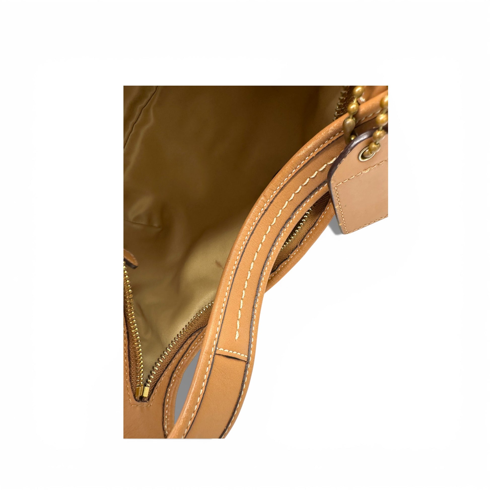 Vintage Coach 10776 Ergo Shoulder Bag in beige and brown signature monogram, trimmed with brown leather. A Y2K piece from 2007.