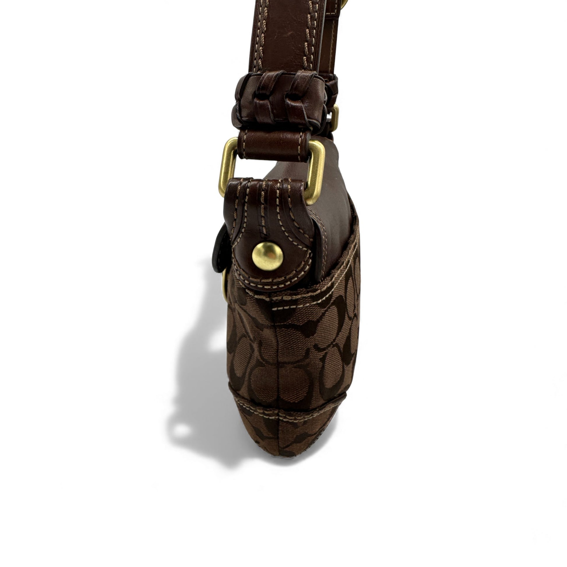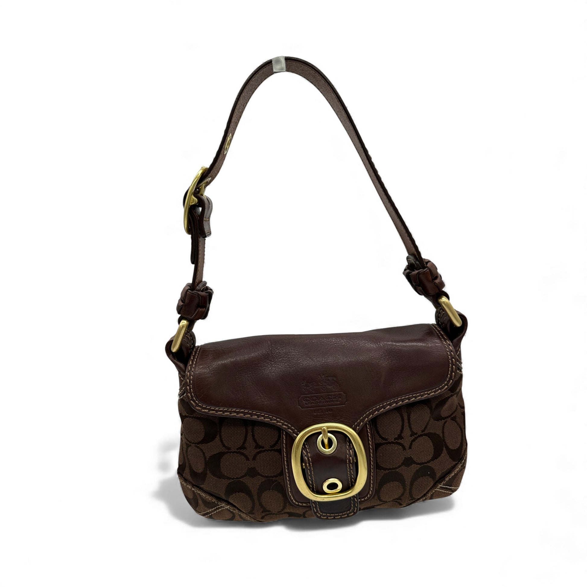 Vintage Coach 11441 Bleecker Soho Buckle Shoulder Bag. In rare brown chocolate brown Signature Monogram, trimmed with dark brown leather and gold-tone brass Soho buckle hardware. A rare Y2K piece from 2007.