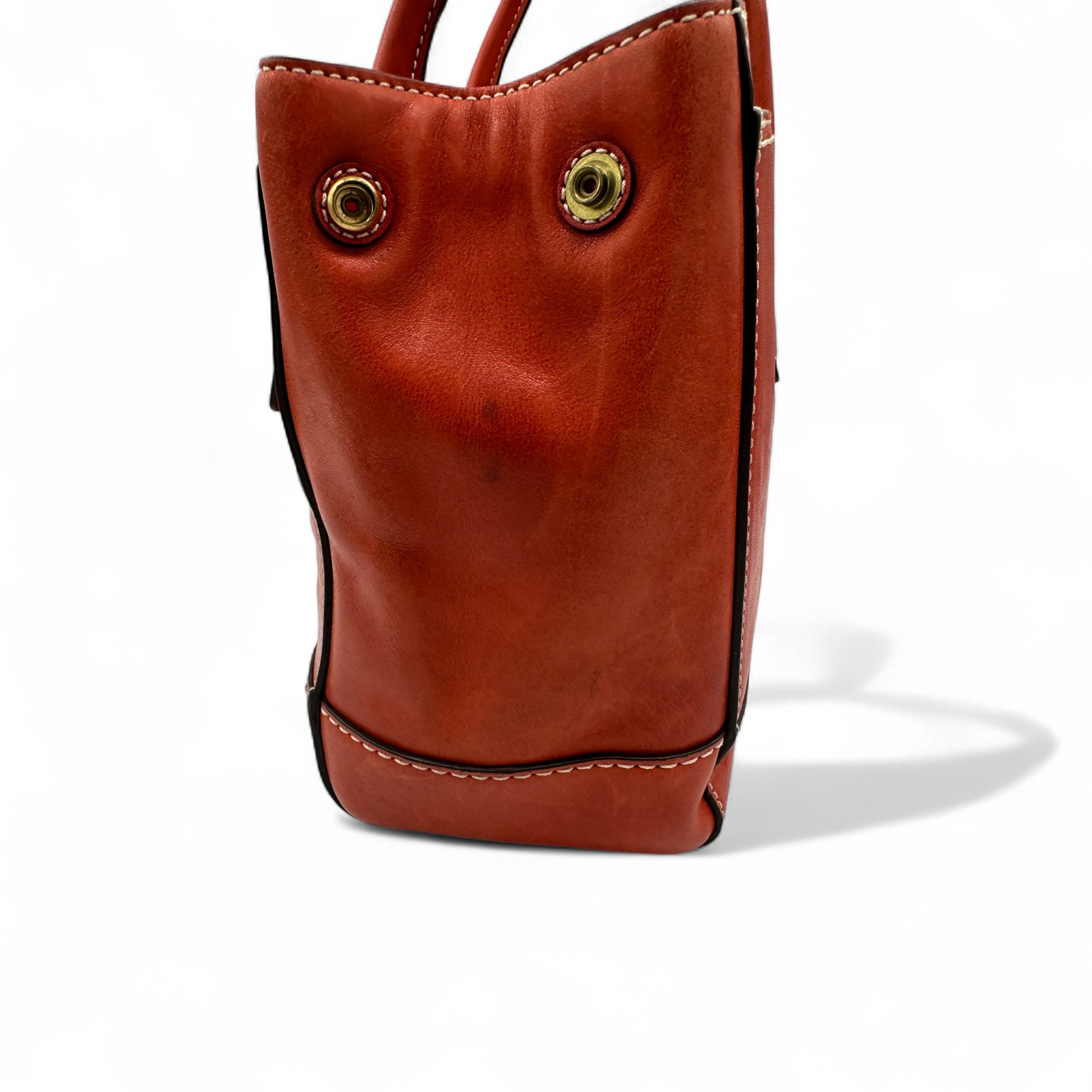 Vintage Coach 11553 Turnlock Handbag. In red glove tanned cowhide leather with brass turnlock hardware. A Y2K piece from 2008.