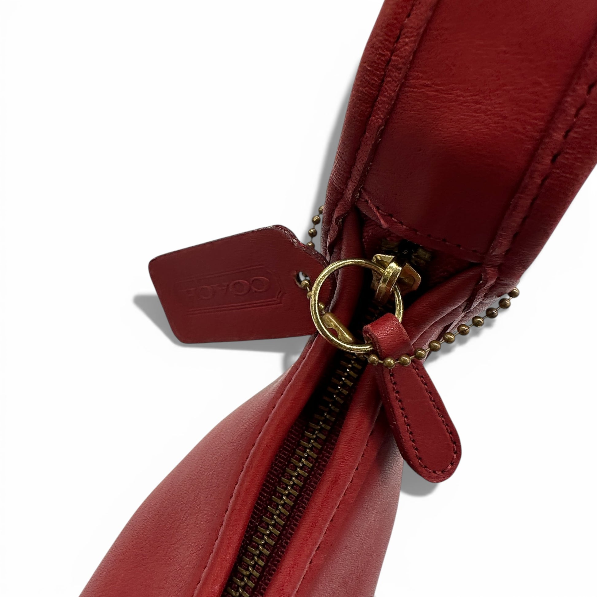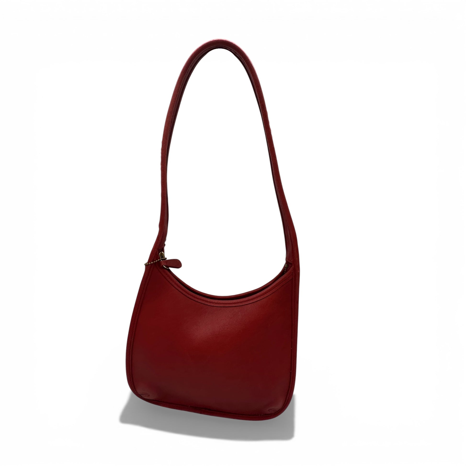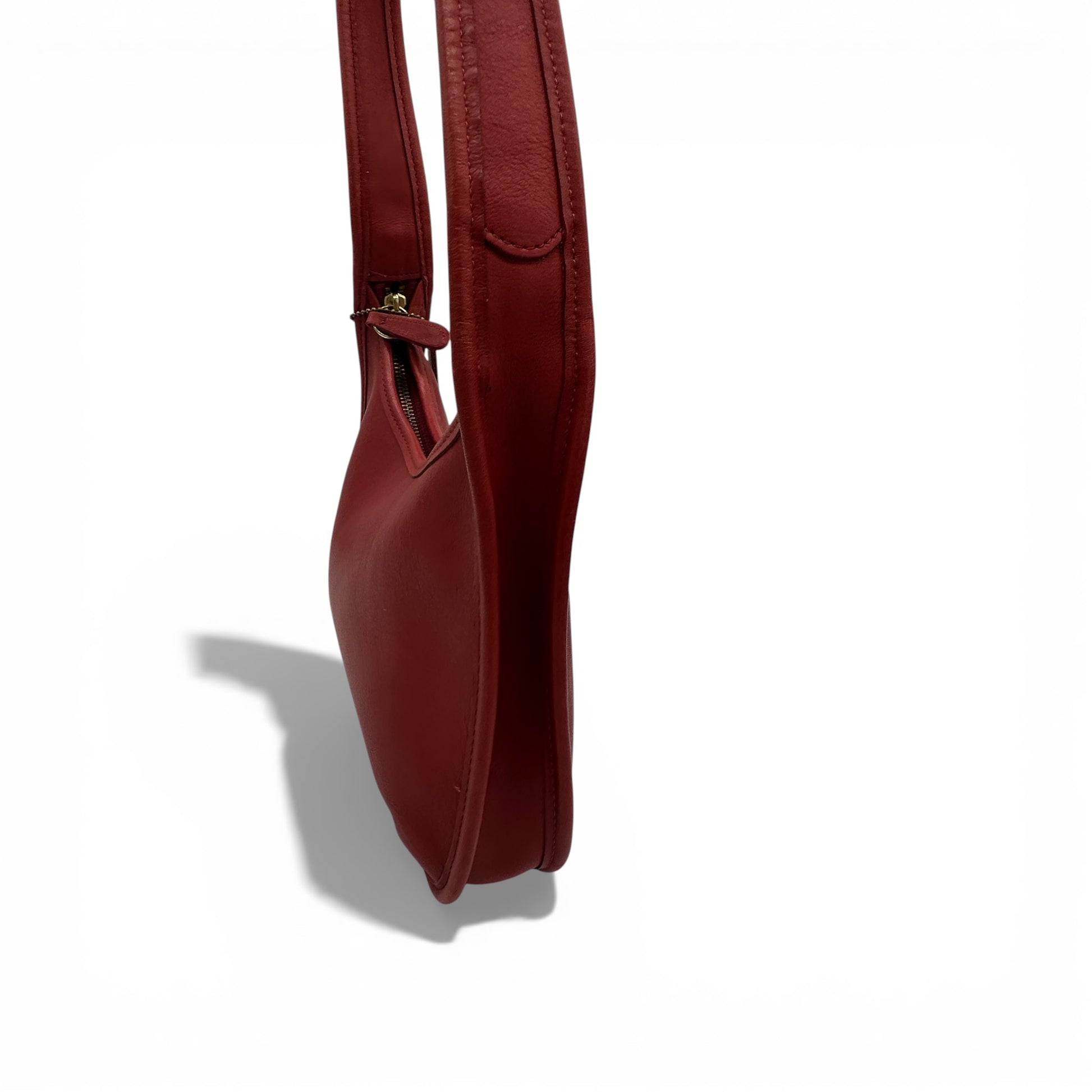 Vintage Coach 9020 Ergo Shoulder Bag. Made in the USA, this cherry red, glove tanned leather bag is a signature style from the 90’s. Made in 1997.