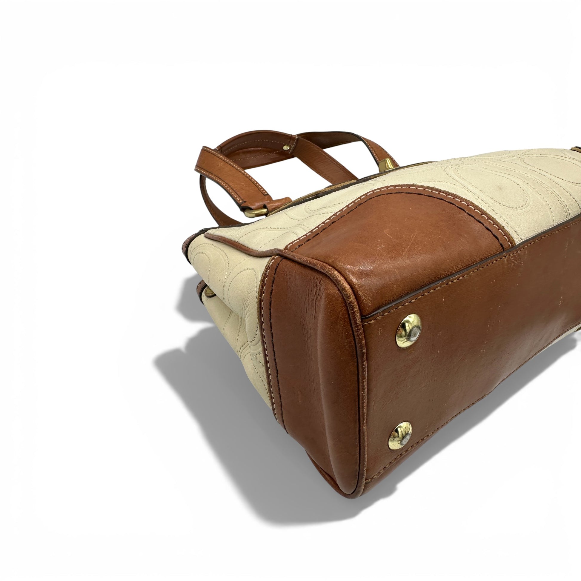Vintage Coach 11330 Hamptons Turnlock Shoulder Bag. In cream embossed signature monogram leather, with tan leather trim and brass turnlock hardware. A Y2K piece from 2007.
