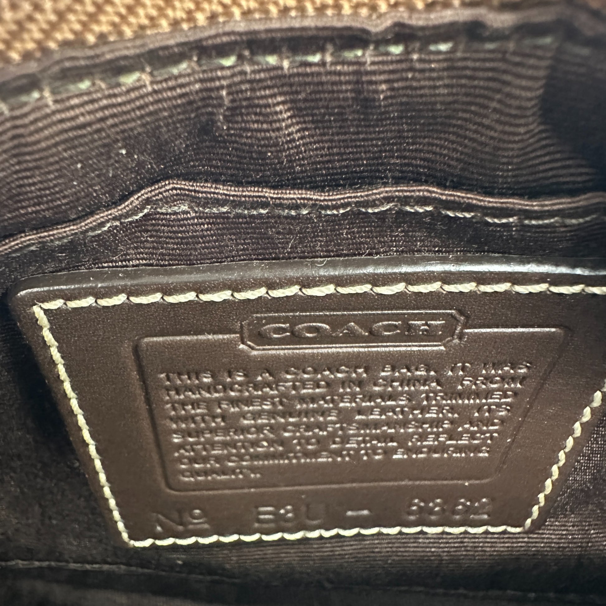Sac bandoulière Coach Demi Soho 6362 vintage. En cuir marron et beige à monogramme emblématique, orné de finitions en cuir marron foncé et d'une boucle Soho argentée. Modèle phare des mini-sacs Coach des années 2000, créé en 2003.