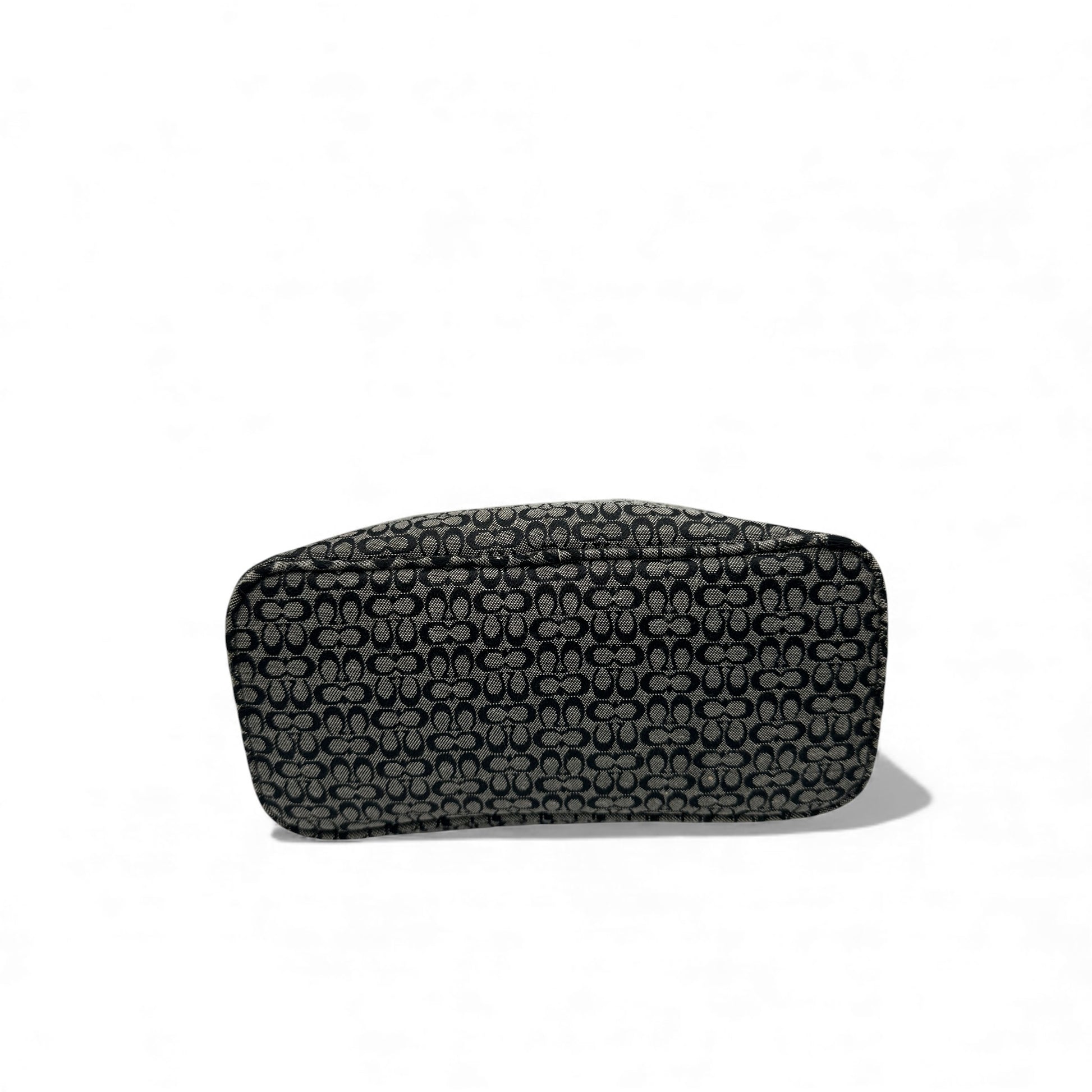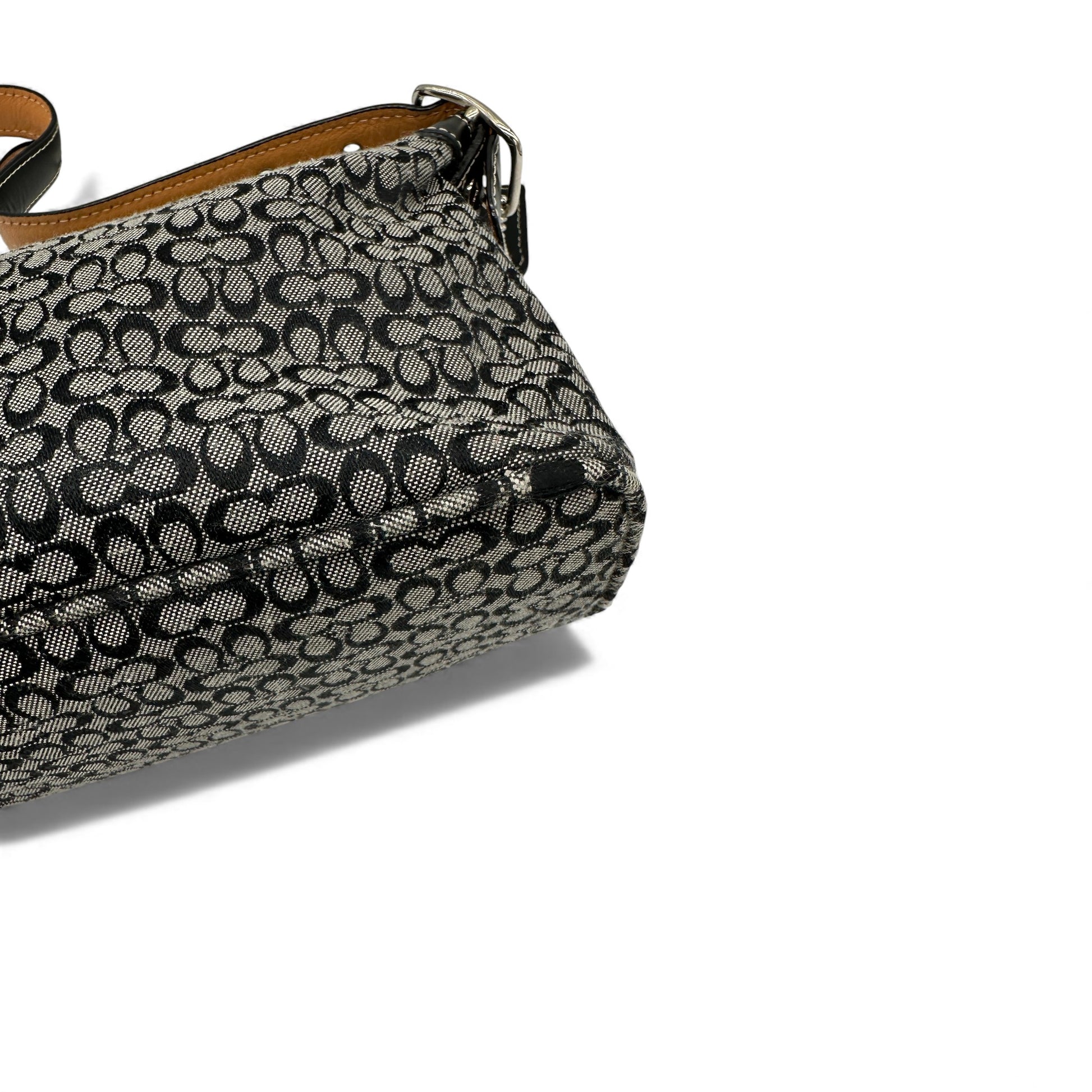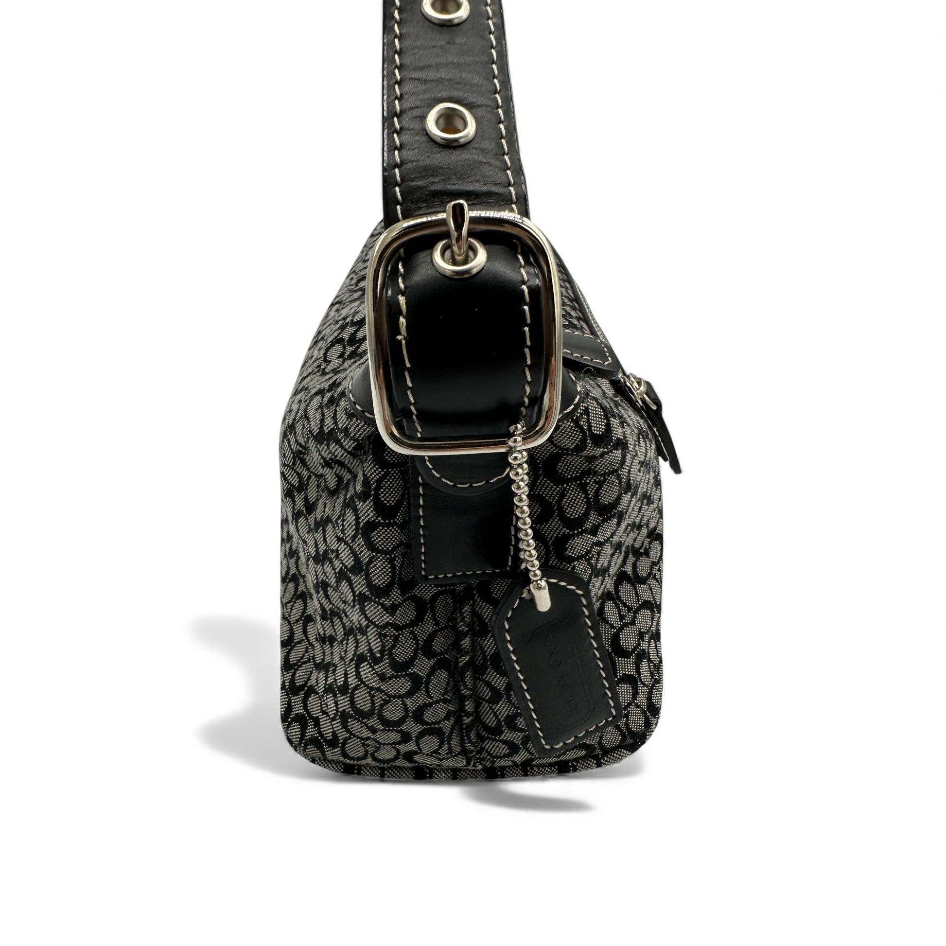Sac bandoulière Coach 6332 vintage en toile noire à mini monogramme, finitions en cuir noir et détails argentés. Pièce emblématique des années 2000 (2003).