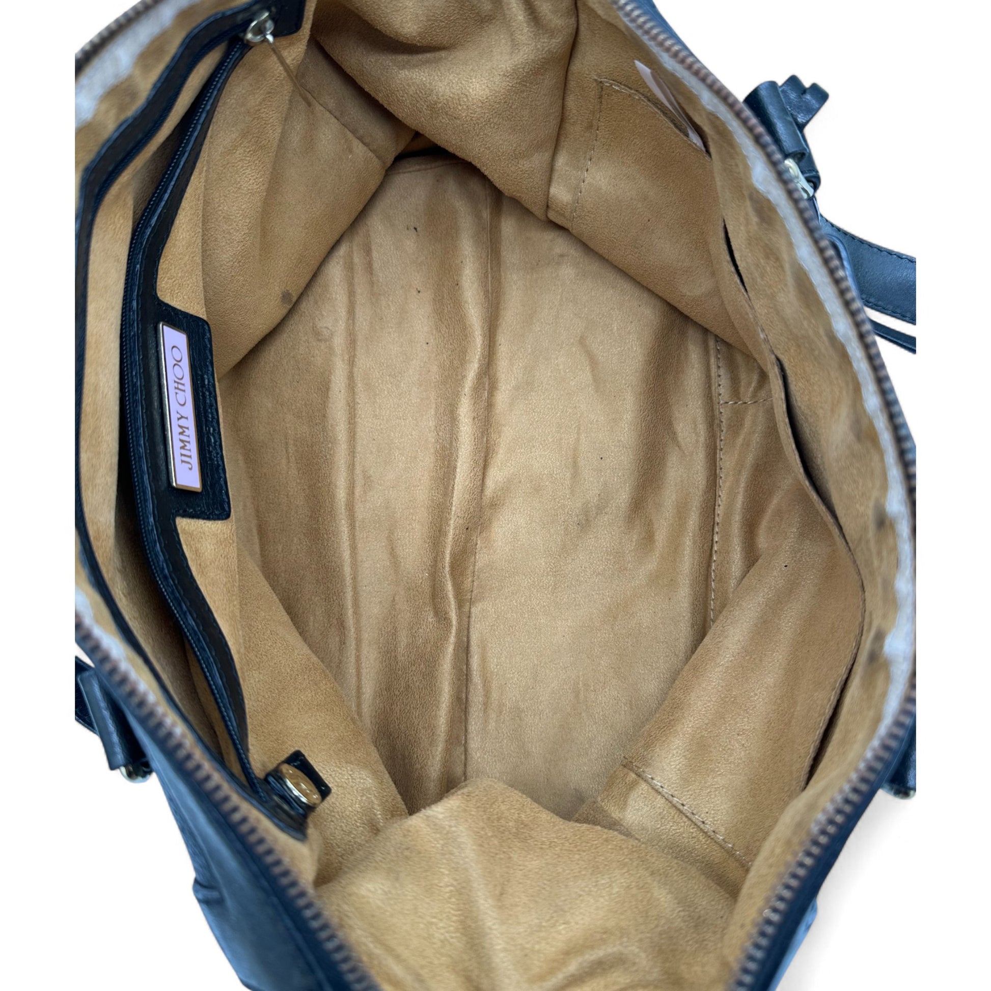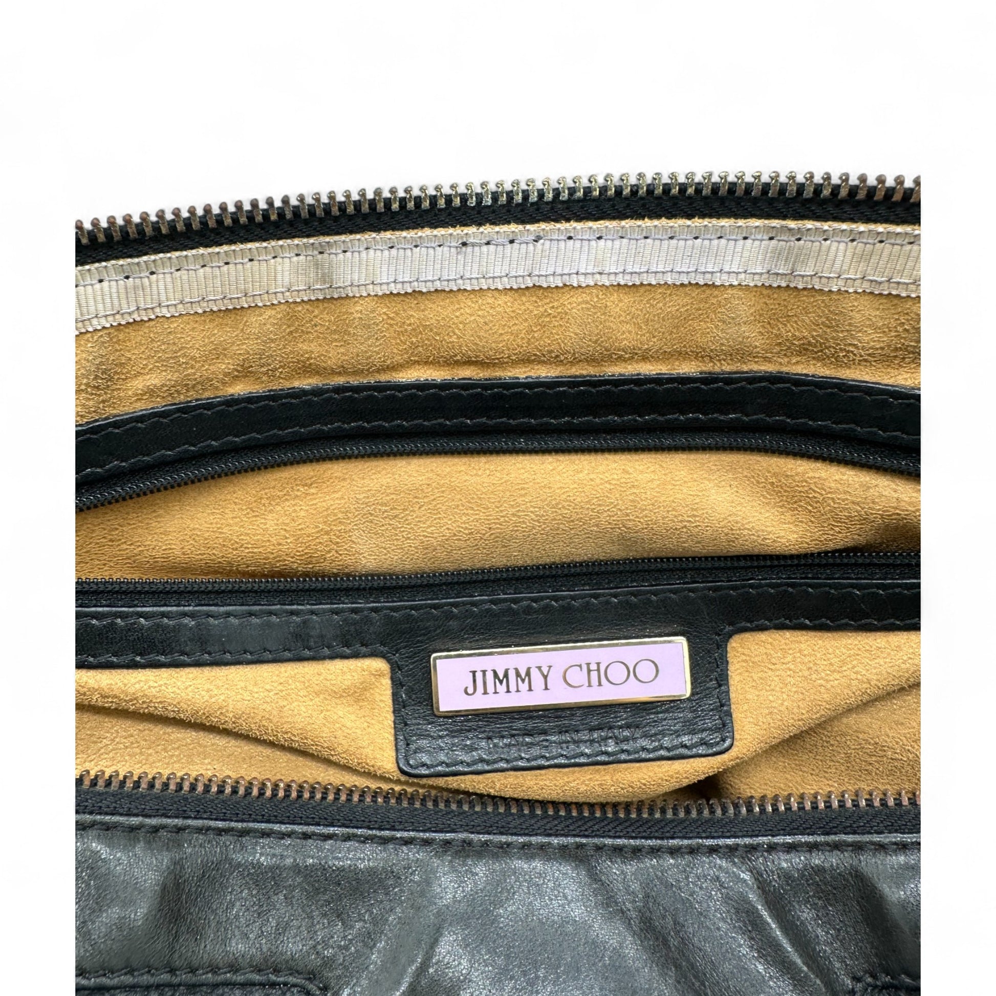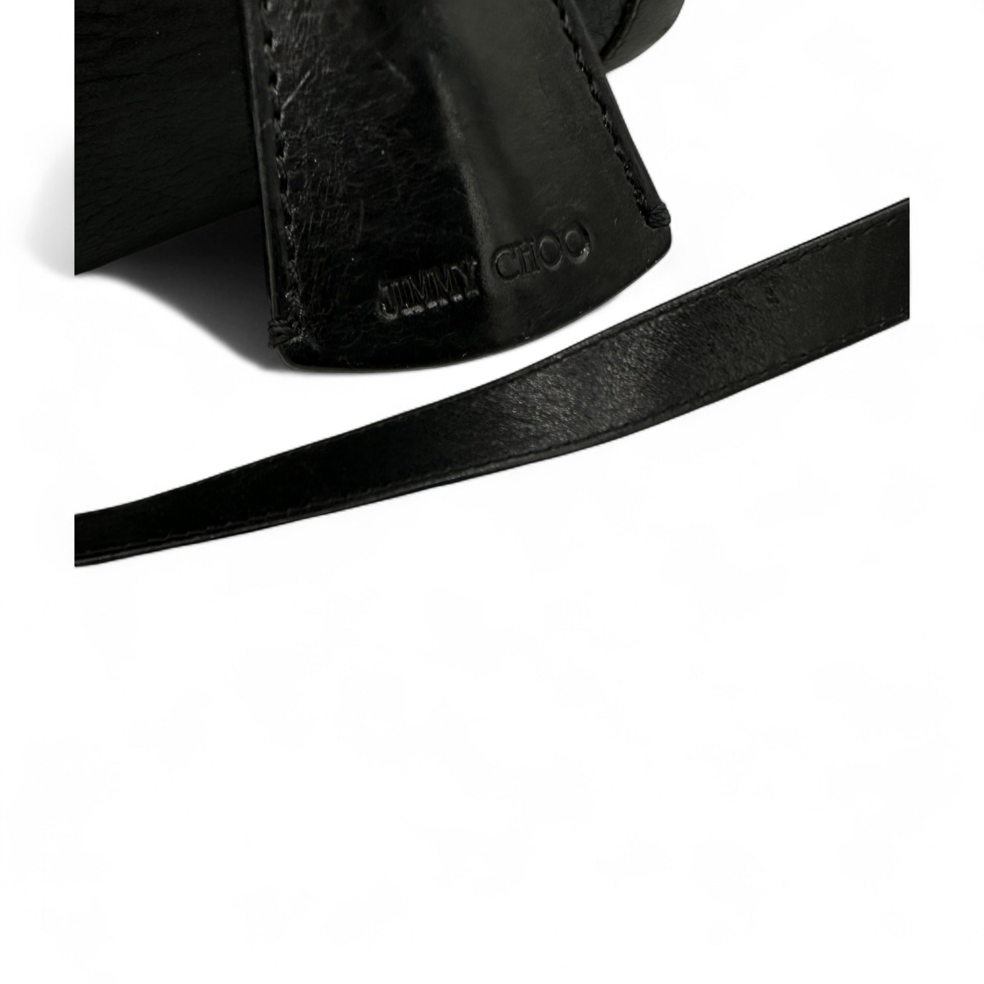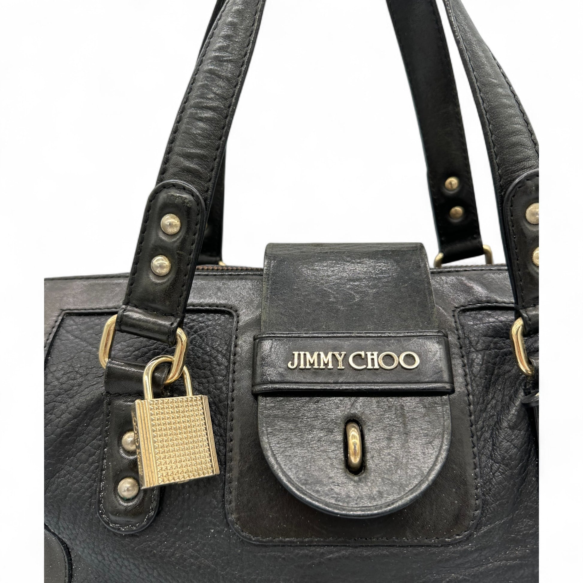 Jimmy Choo Black Leather Padlock Handbag. Made in Italy of soft black cowhide leather, with gold coloured hardware, padlock and studded detailing. Includes 2-way strap for use as a handbag, shoulder bag, or using the detachable leather crossbody strap.