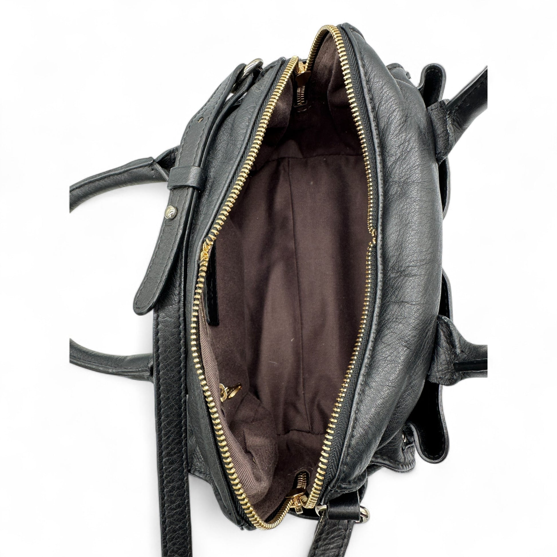 See by Chloé Black Leather Nellie Handbag with two way strap. Made of soft black cowhide leather with gold coloured hardware.
