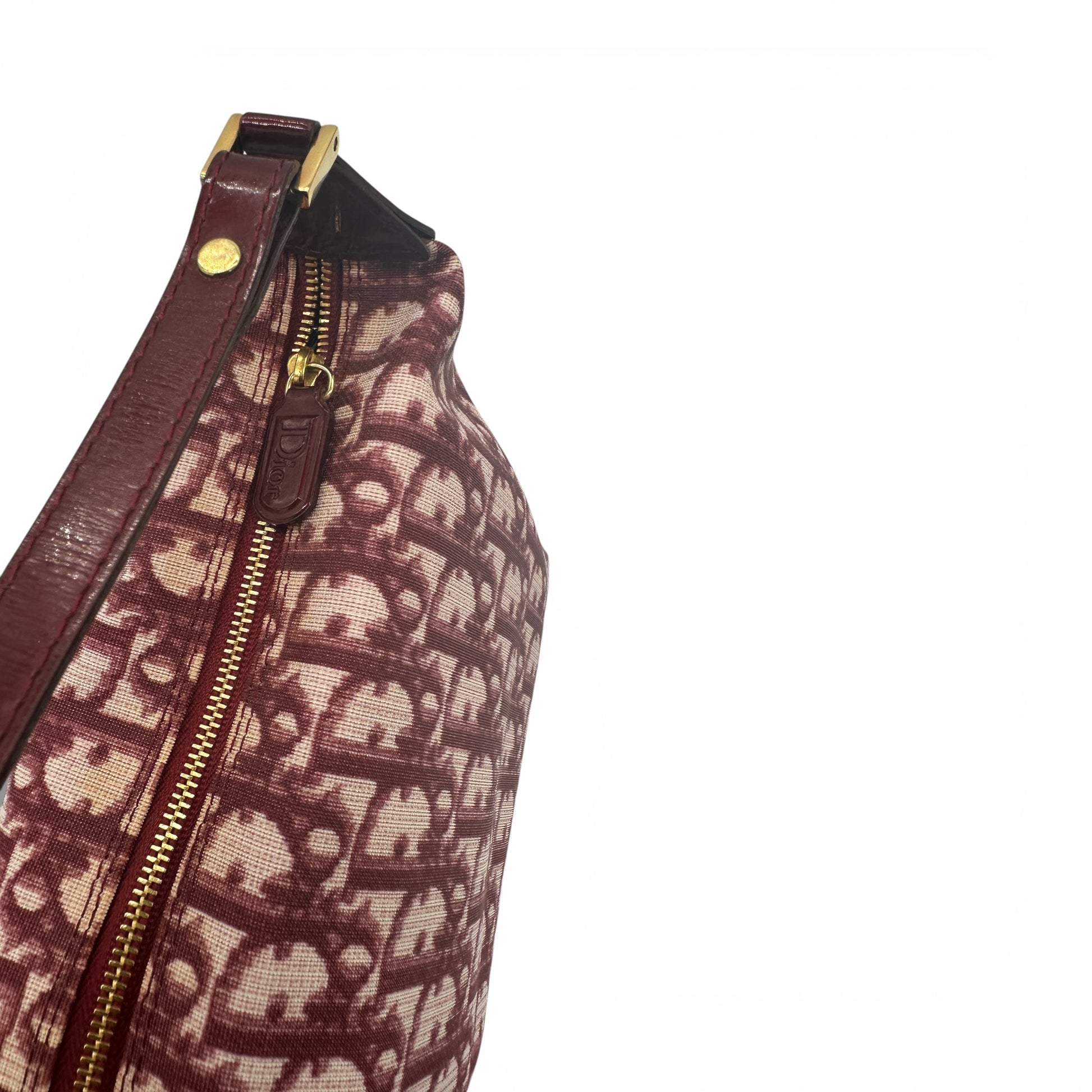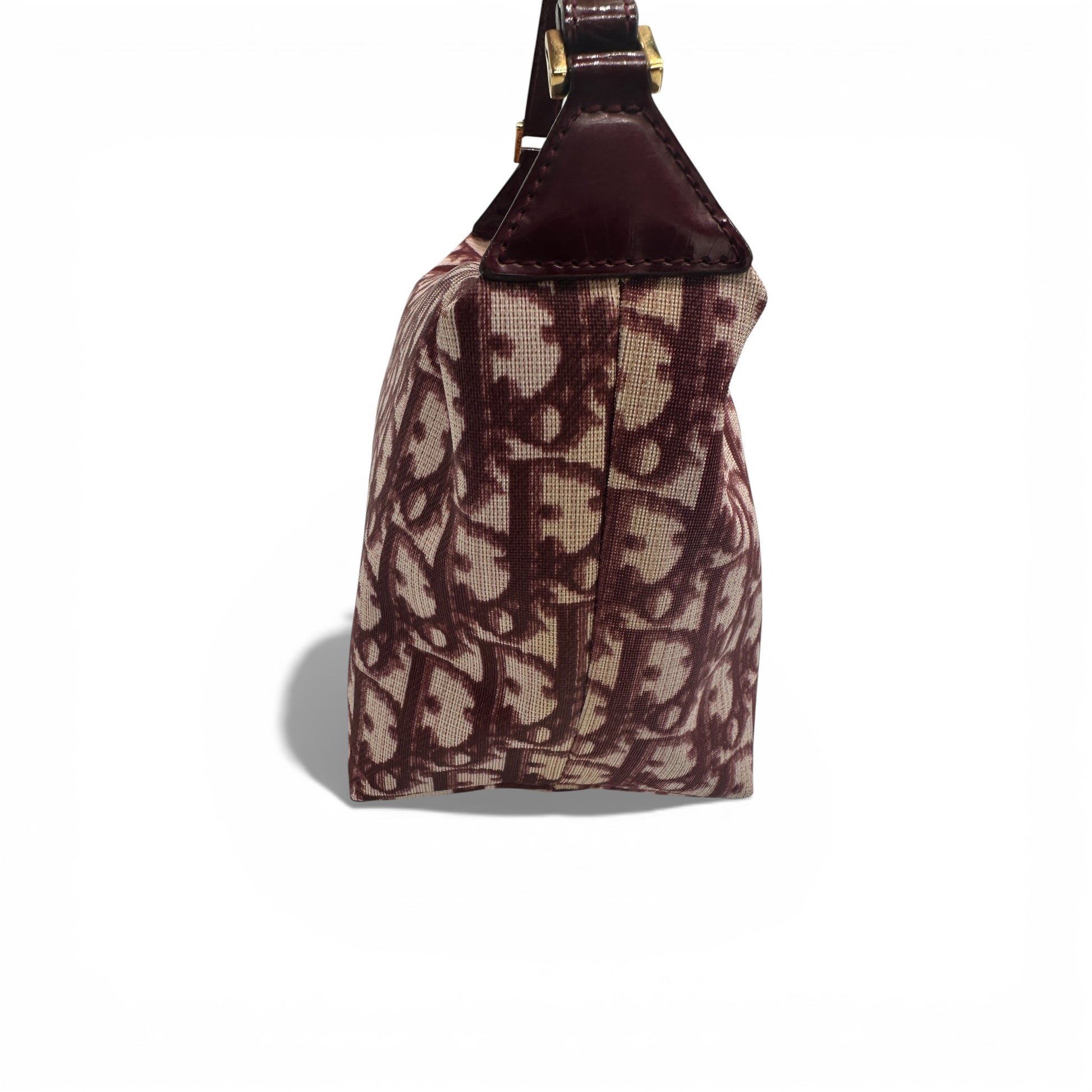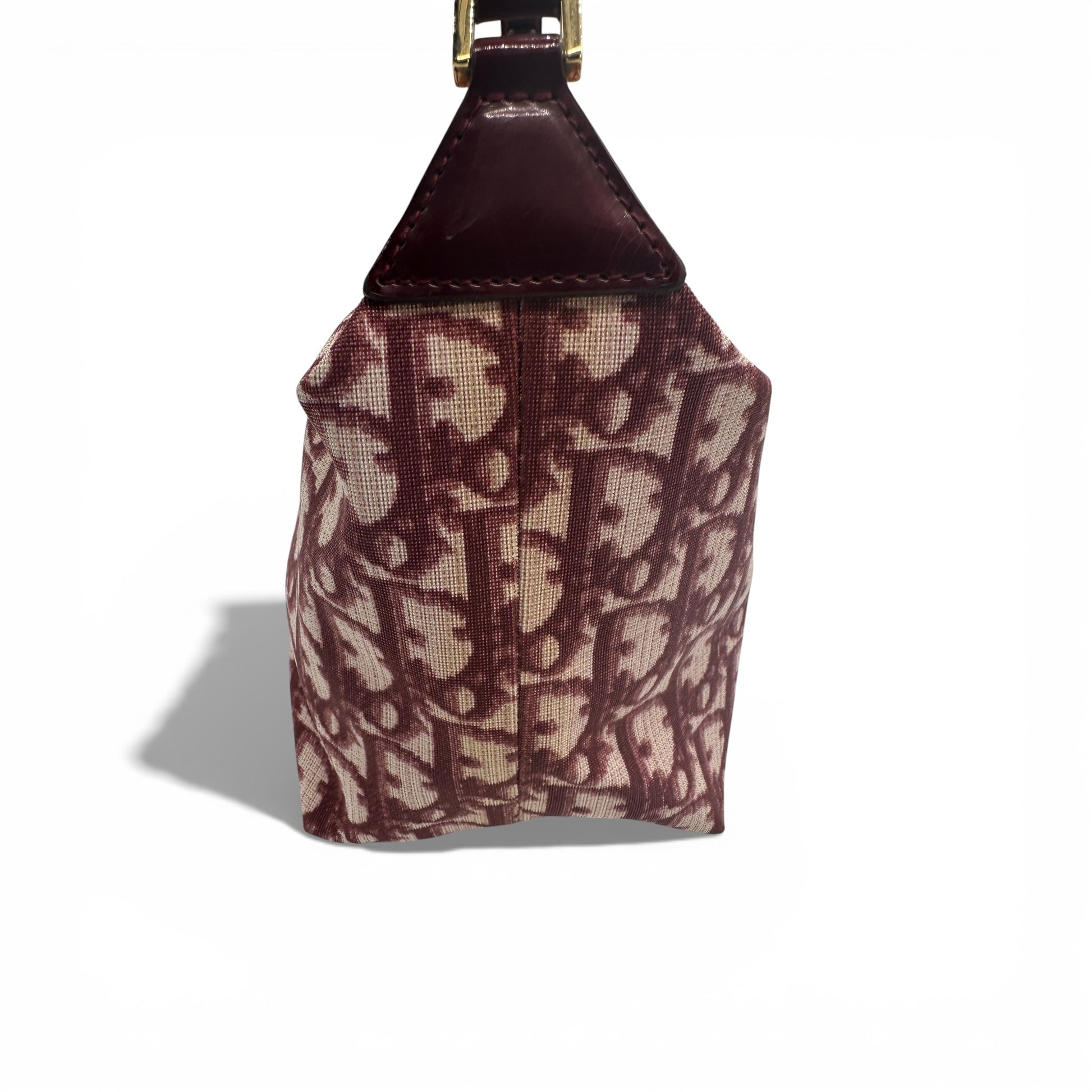Vintage Christian Dior Oblique Monogram Handbag. In burgundy Dior Oblique jacquard monogram coated canvas. Trimmed with burgundy patent leather, and gold-tone hardware.