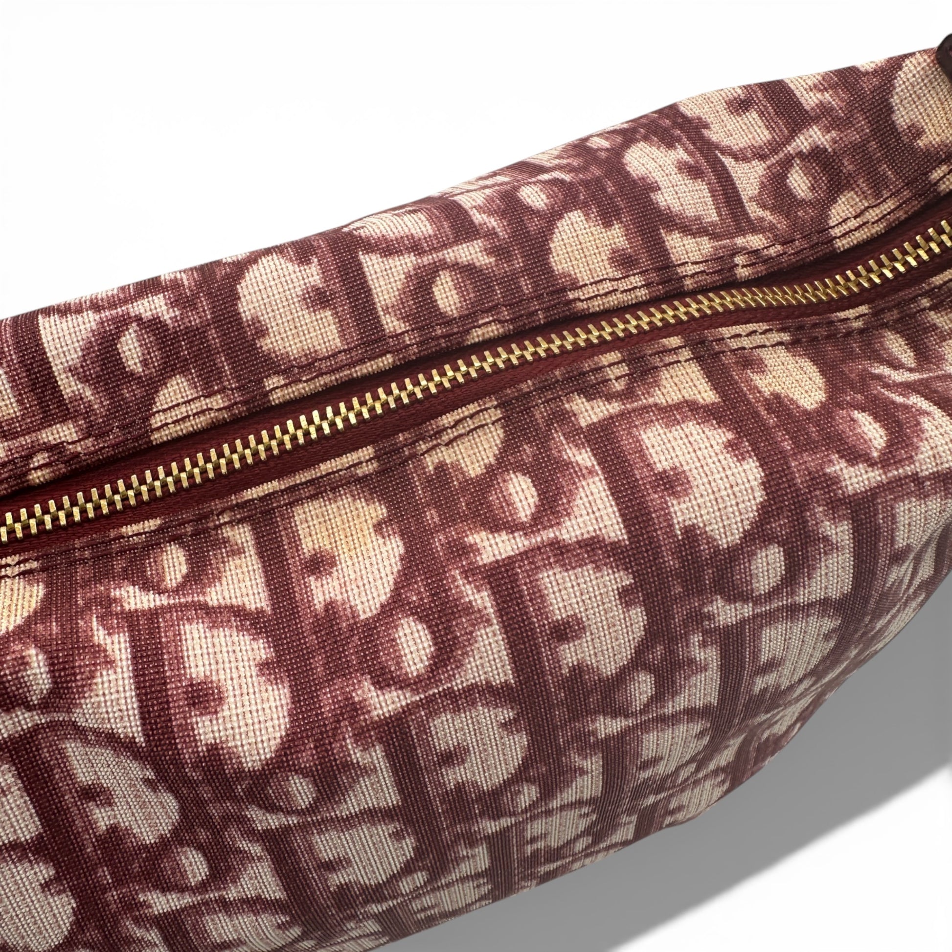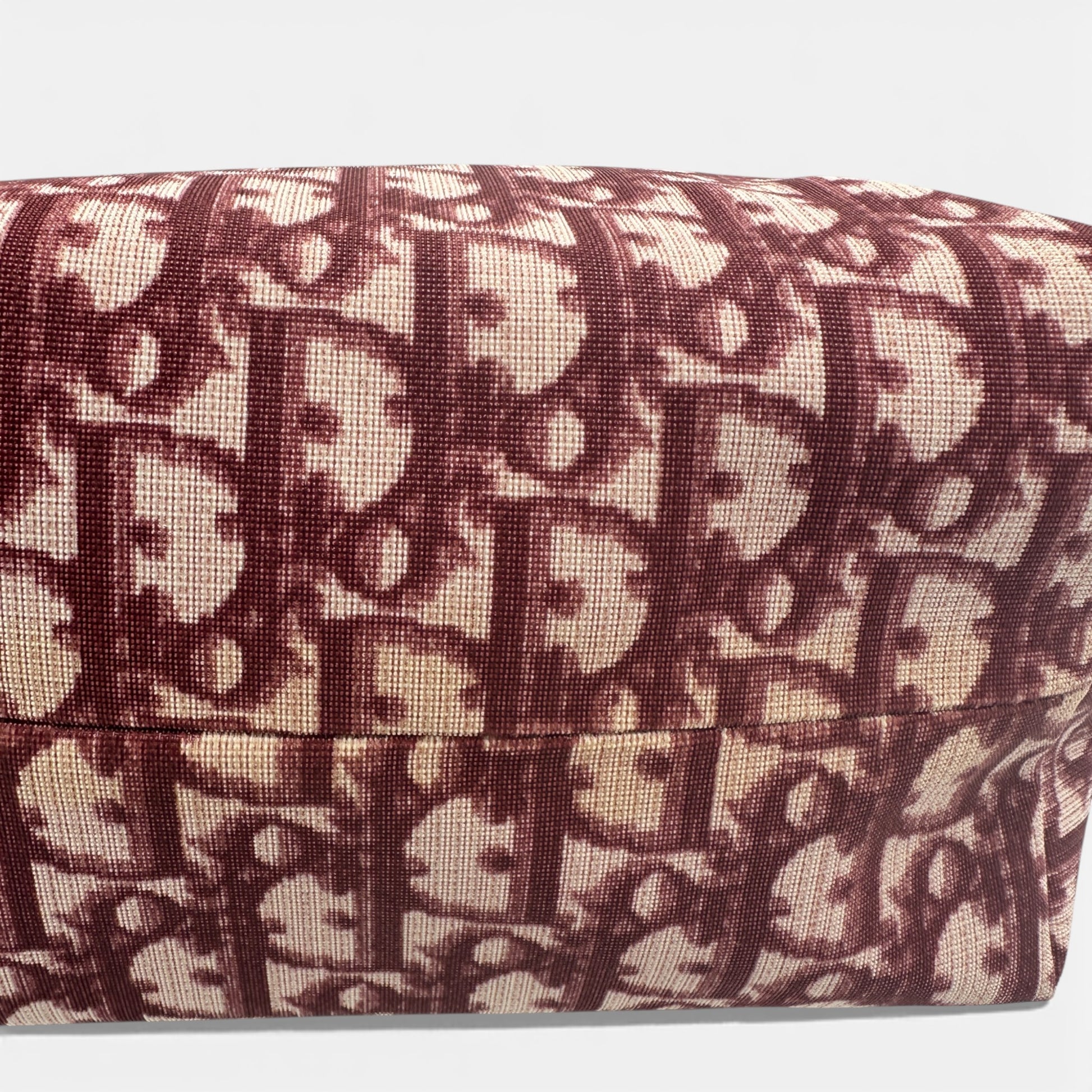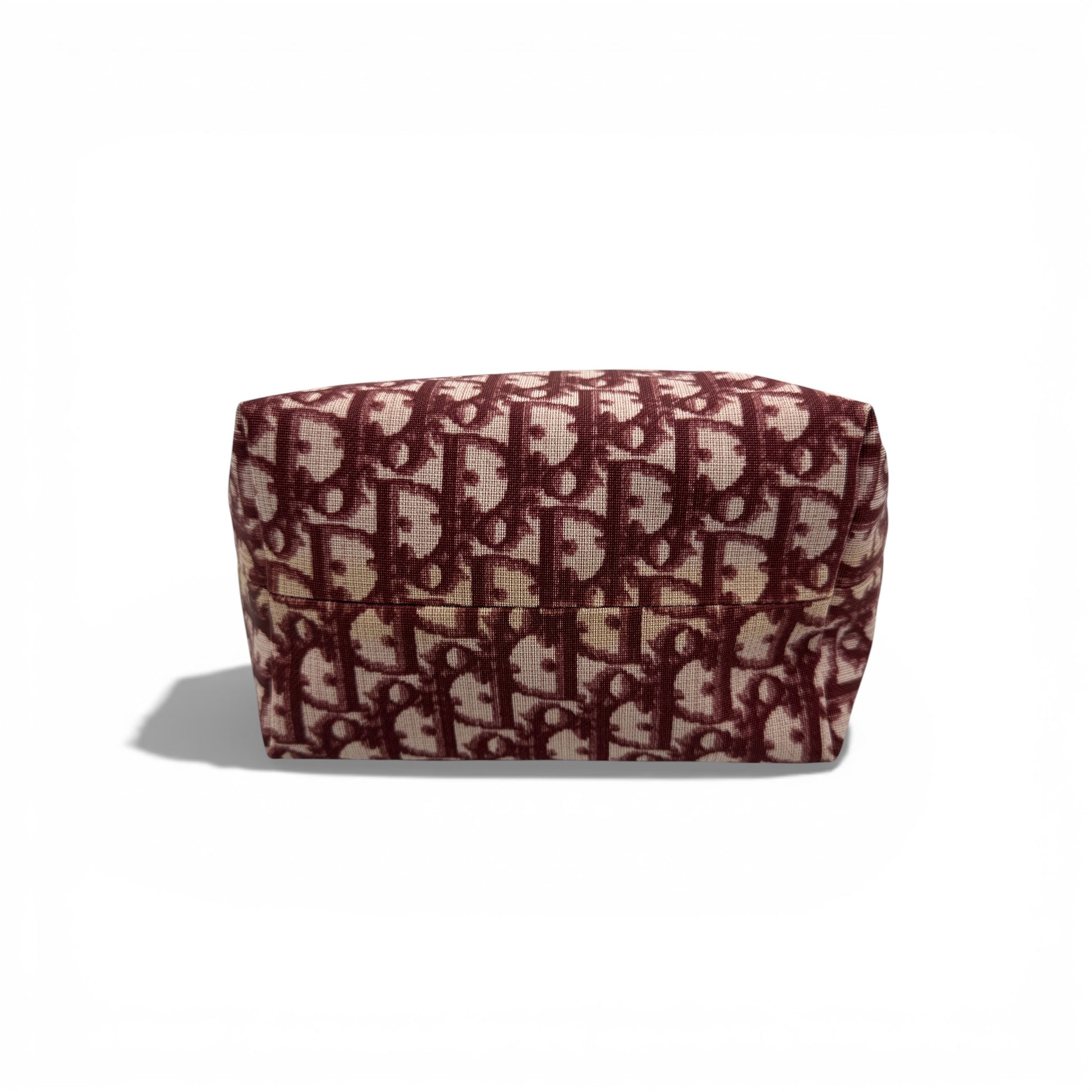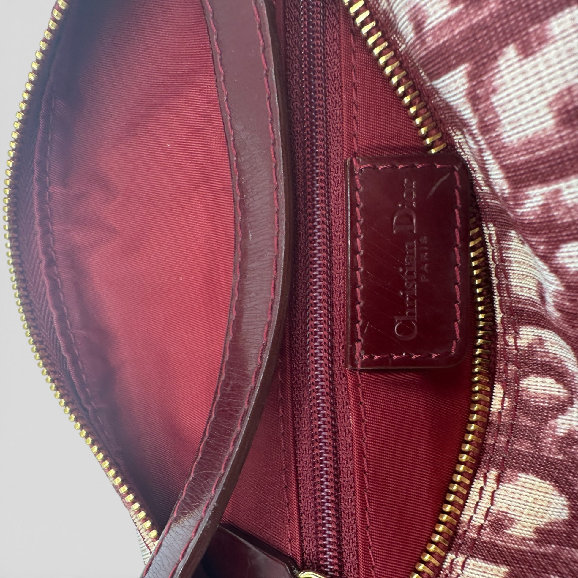 Vintage Christian Dior Oblique Monogram Handbag. In burgundy Dior Oblique jacquard monogram coated canvas. Trimmed with burgundy patent leather, and gold-tone hardware.