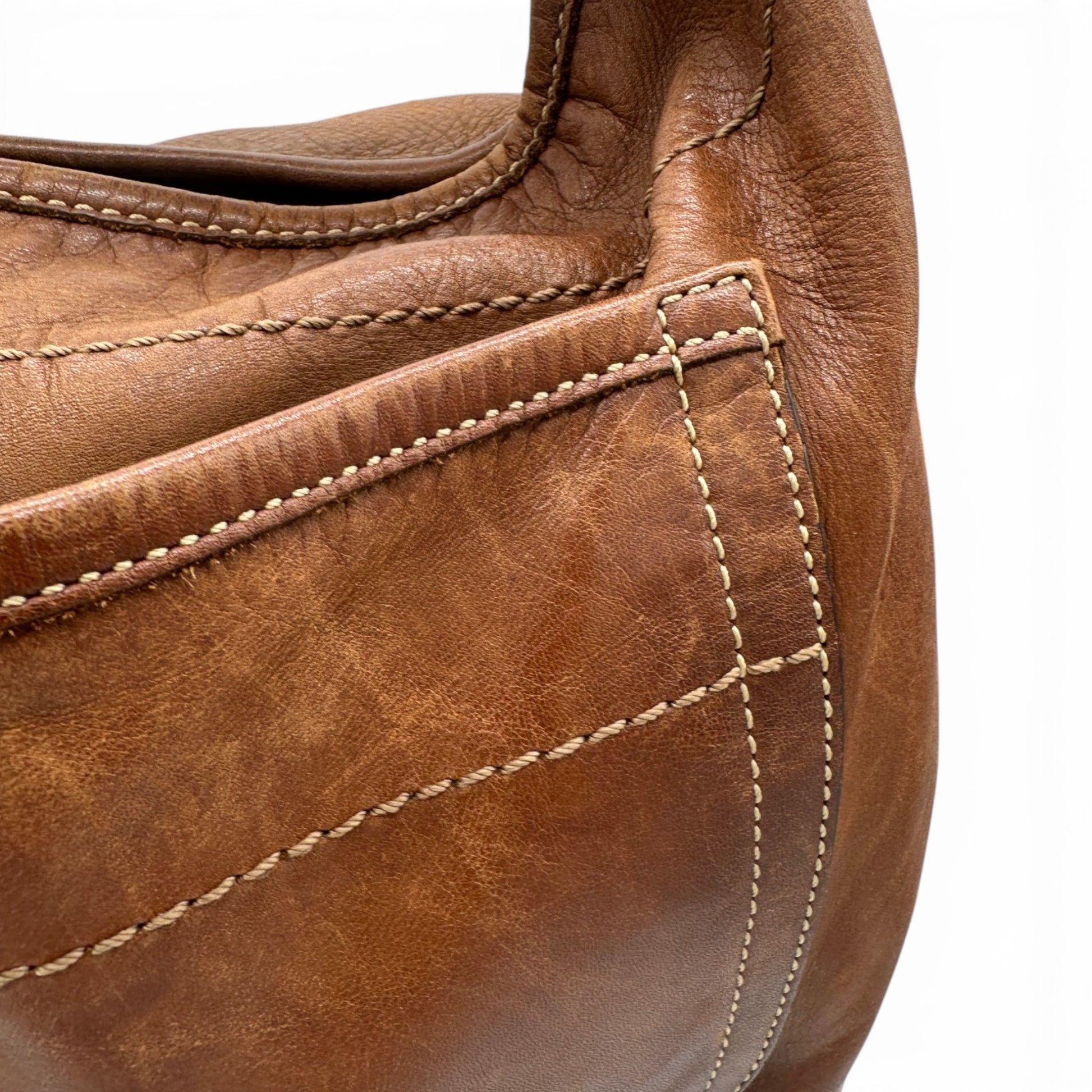 Vintage Coach 10741 turnlock ergo shoulder bag In rich brown cowhide leather with brass turnlock hardware and top zip closure. A Y2K piece from 2007.