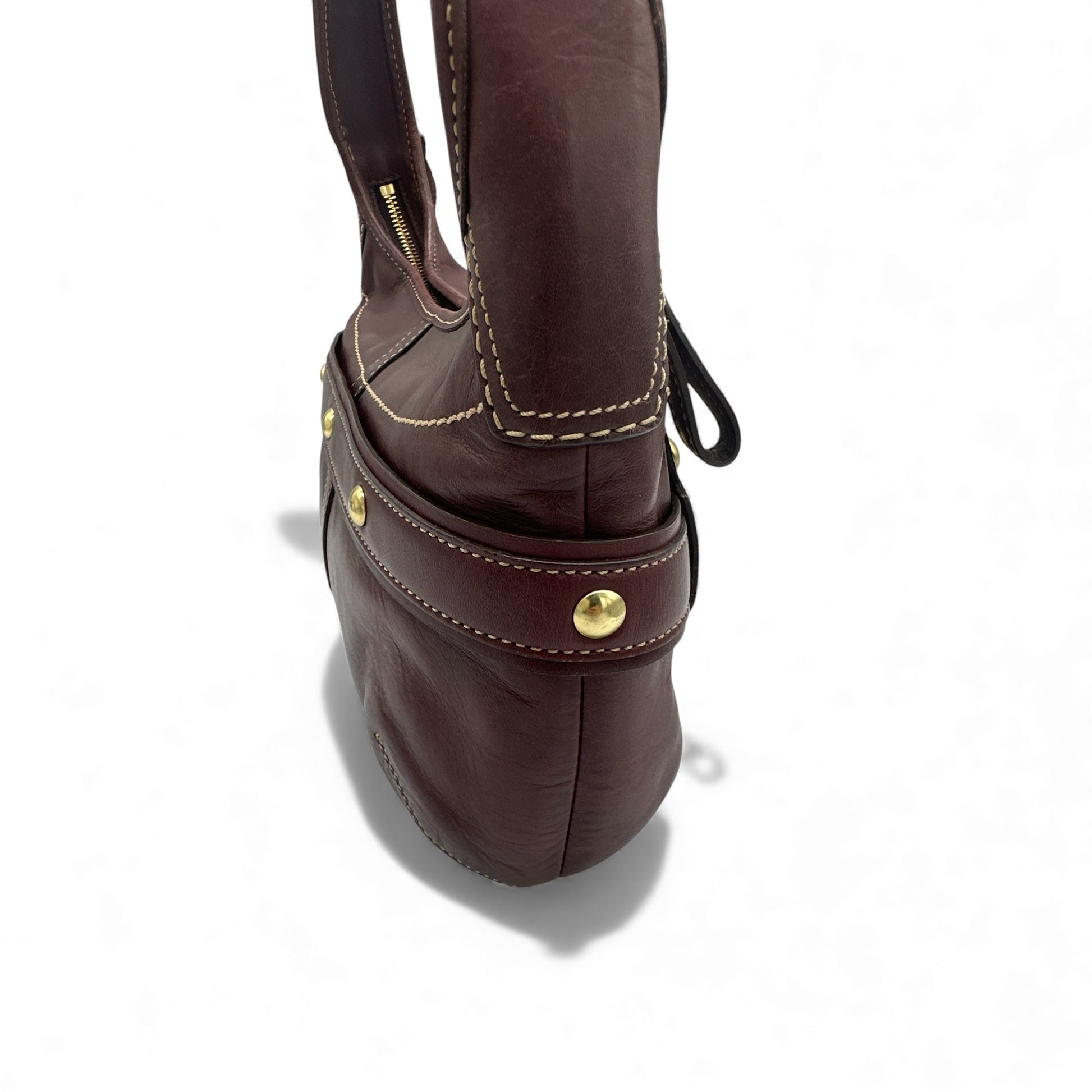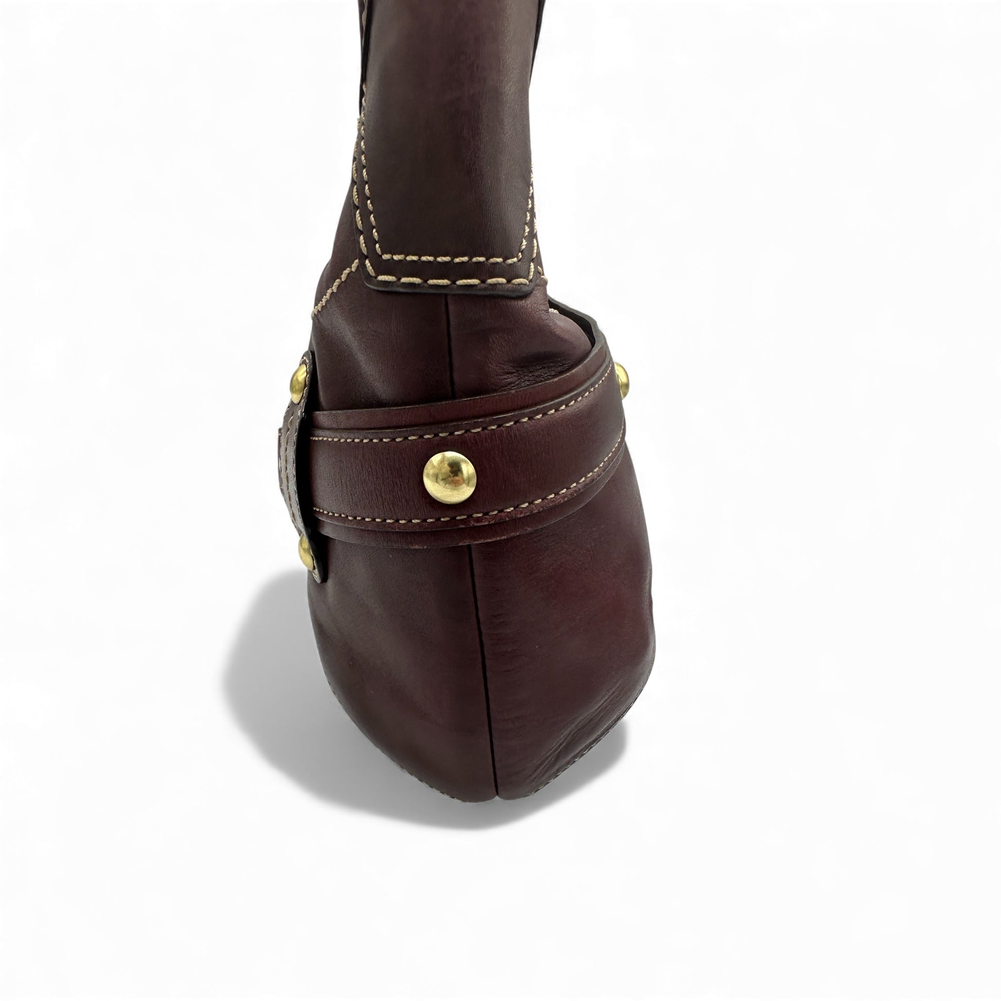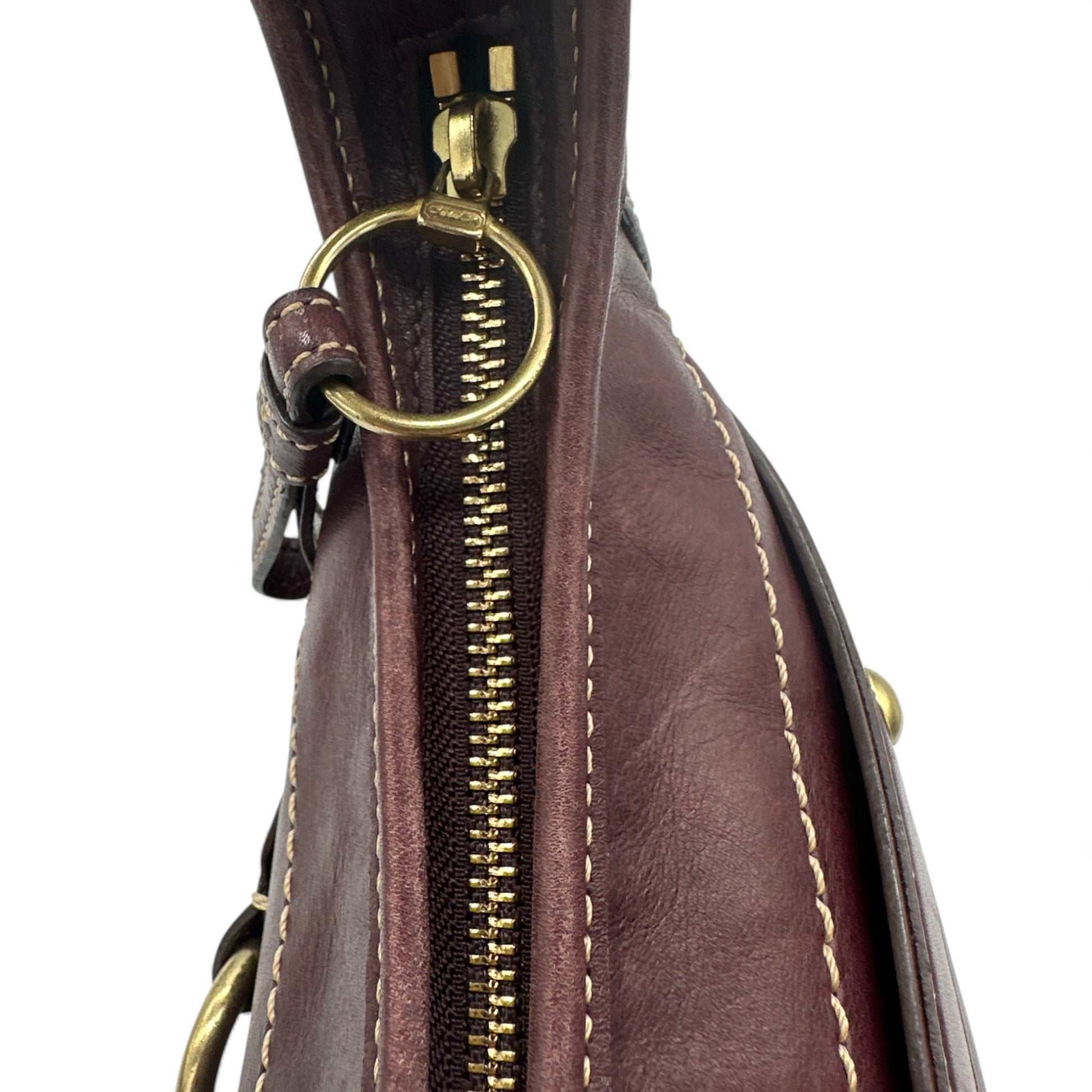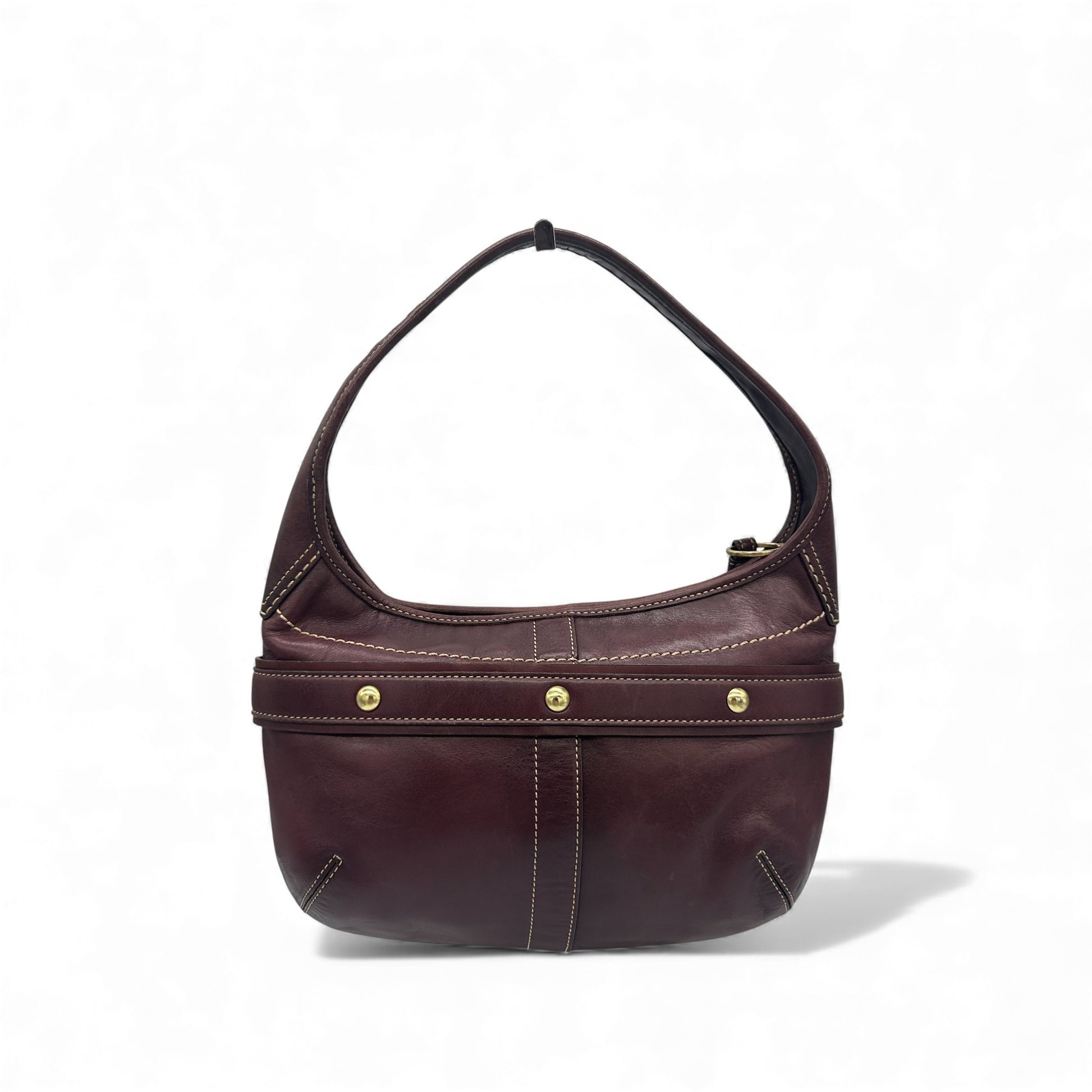 Vintage Coach 11260 Leather Horsebit Buckle Ergo Shoulder Bag, in smooth wine coloured cowhide leather with gold coloured hardware. A rare Y2K piece from 2007.