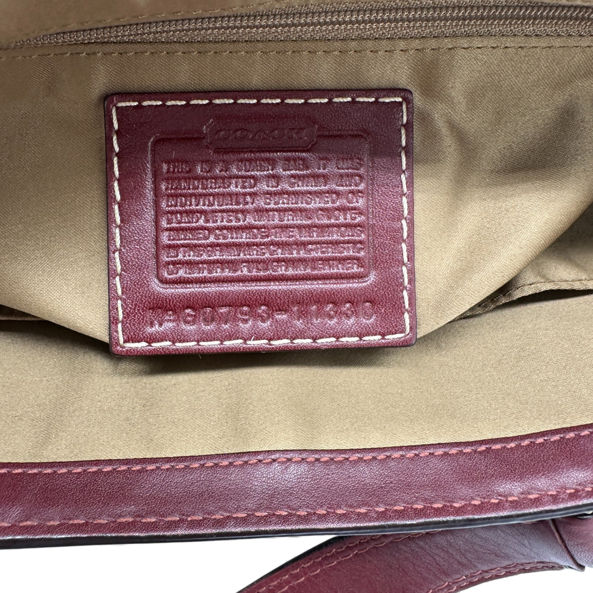 Vintage Coach 11330 Hamptons Turnlock Shoulder Bag. In Bordeaux red embossed signature monogram leather, with burgundy red leather trim and brass turnlock hardware. A Y2K piece from 2007.