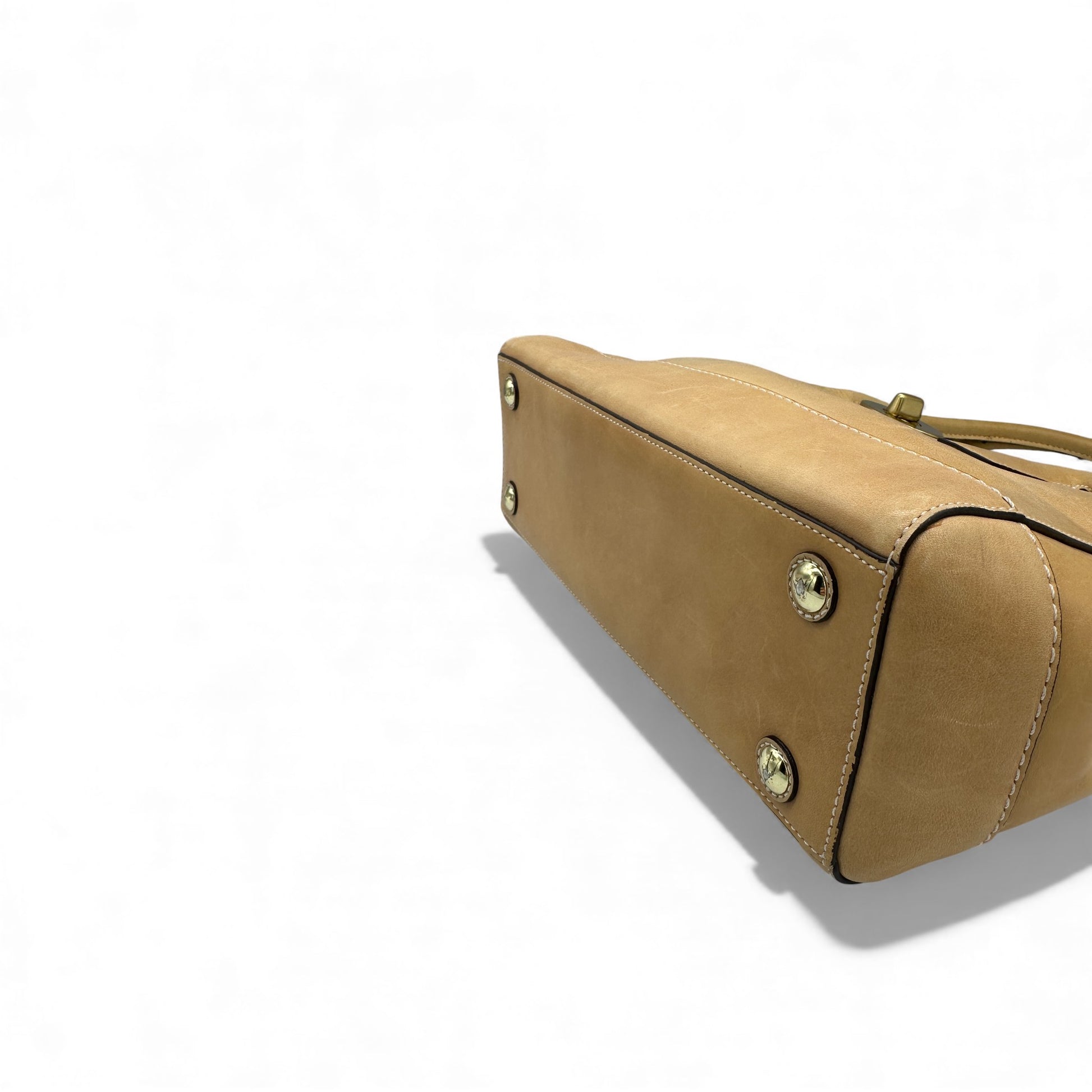 Vintage Coach F11553 Turnlock Handbag. In beige glove tanned cowhide leather with brass gold-tone turnlock hardware. With zip closure, with front compartment with turnlock closure. A Y2K piece from 2008.