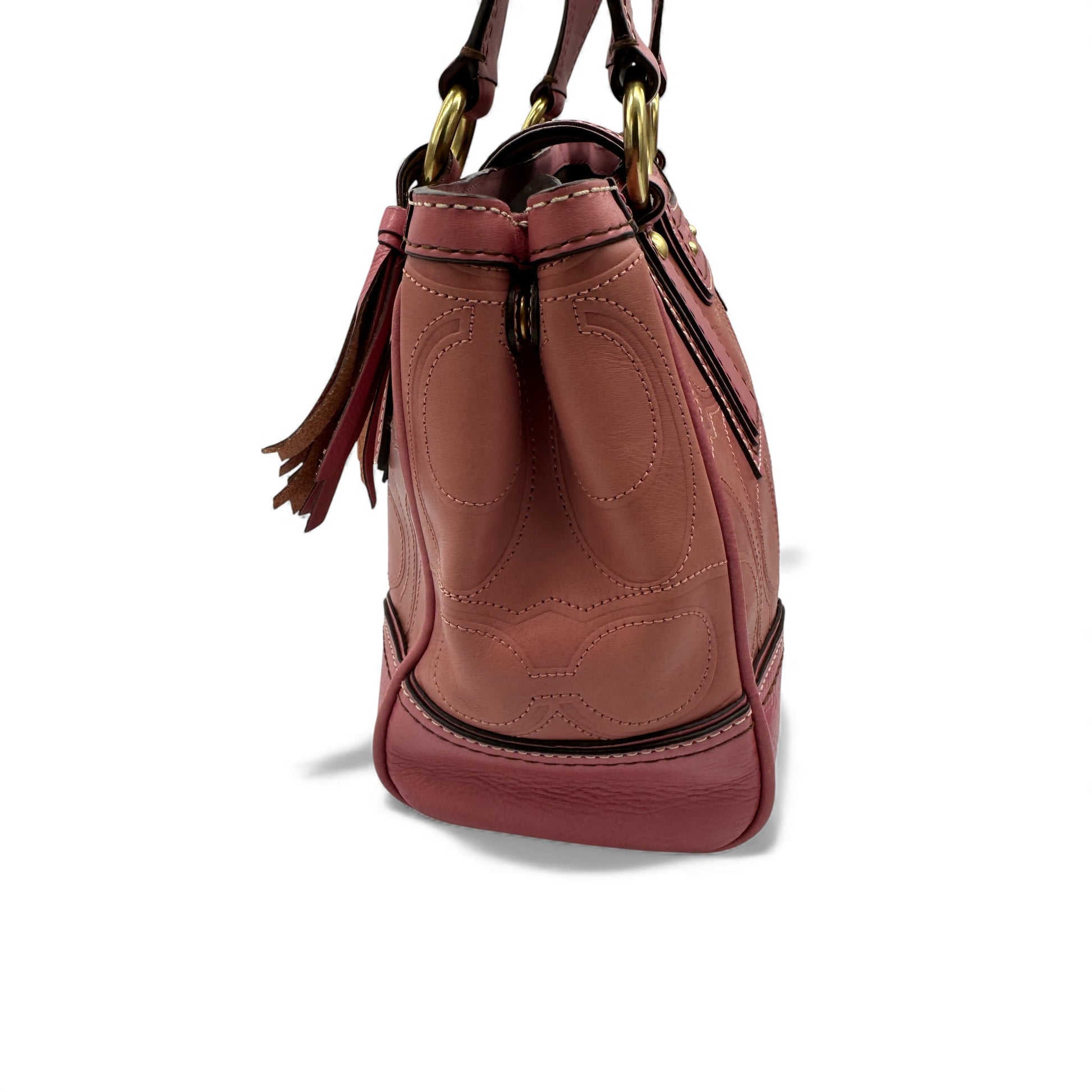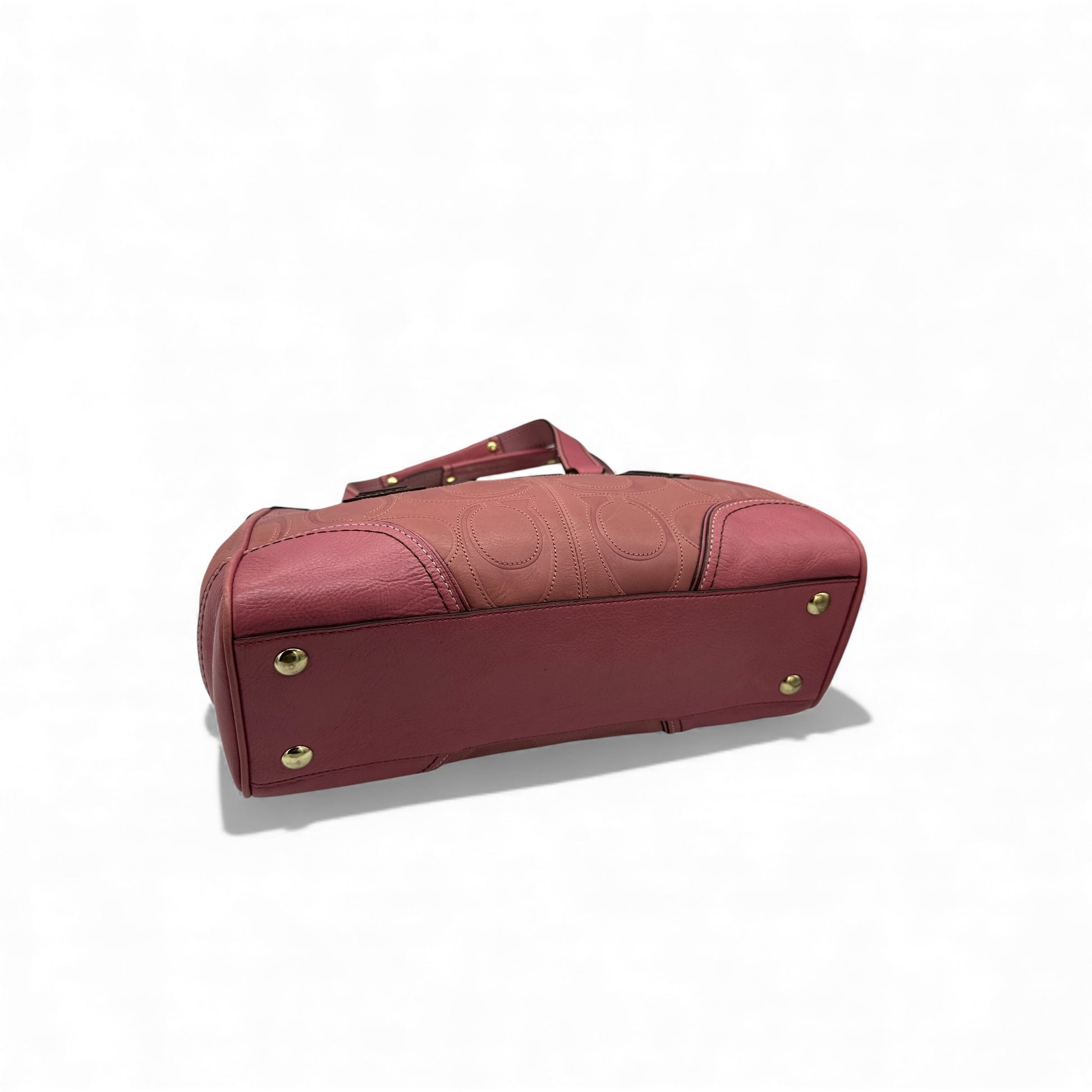 Vintage Coach 12289 Turnlock Handbag, in pink monogram embossed leather, with brass turnlock hardware. A Y2K piece from 2008.