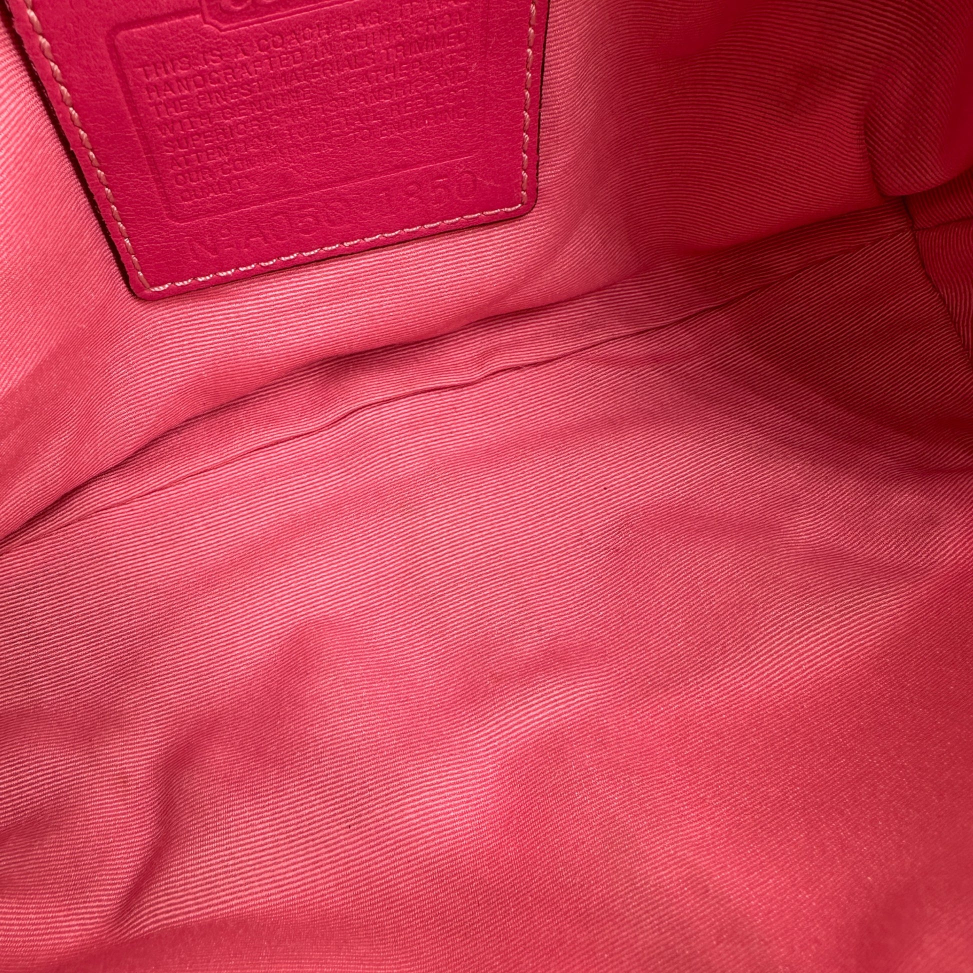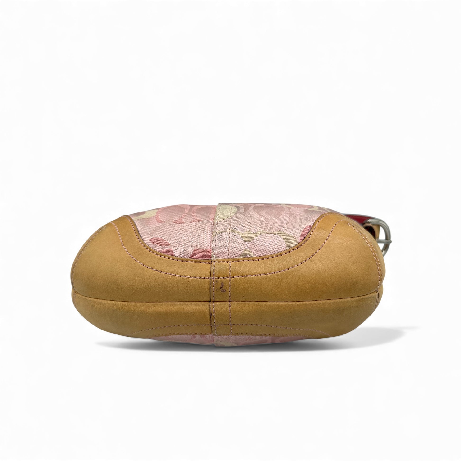 Vintage Coach 1850 Croissant Shoulder Bag. In baby pink optic monogram, trimmed with with tan leather and silver-tone hardware. A rare Y2K piece from 2005.