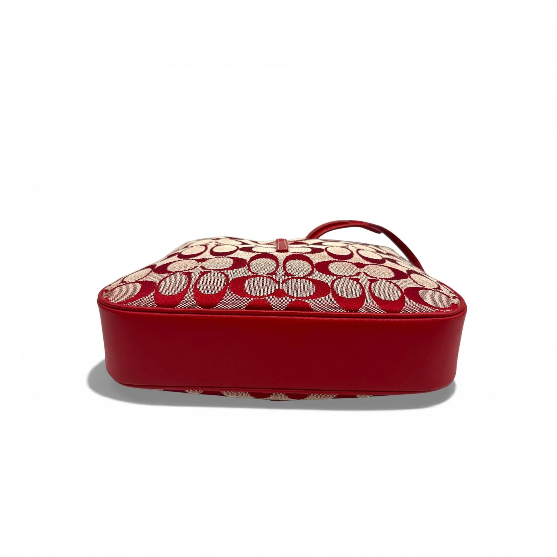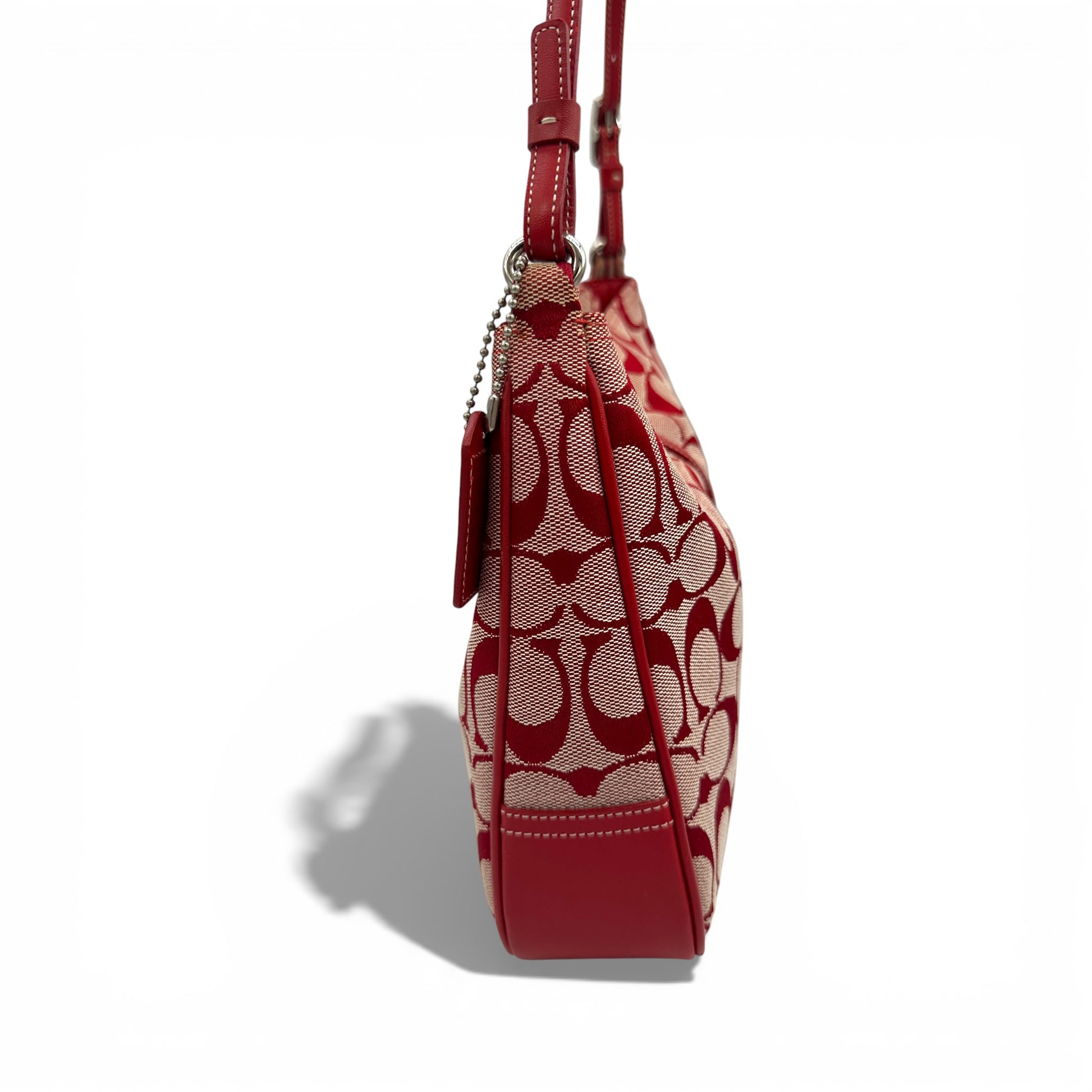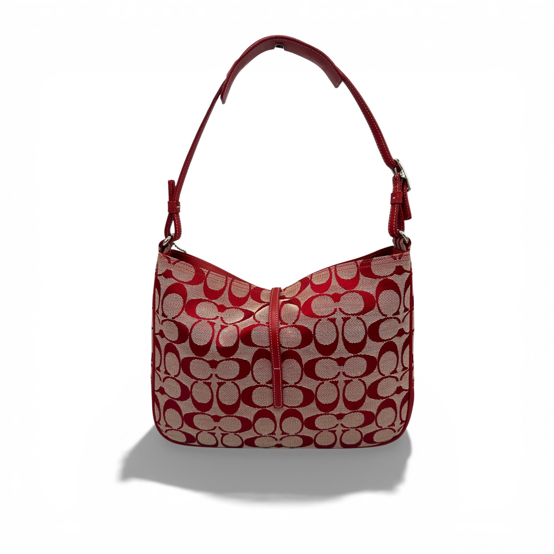 Vintage Coach 6091 Hamptons Clip Shoulder Bag. In rare red signature monogram, trimmed with red leather and silver clip hardware. A Y2K piece from 2001.