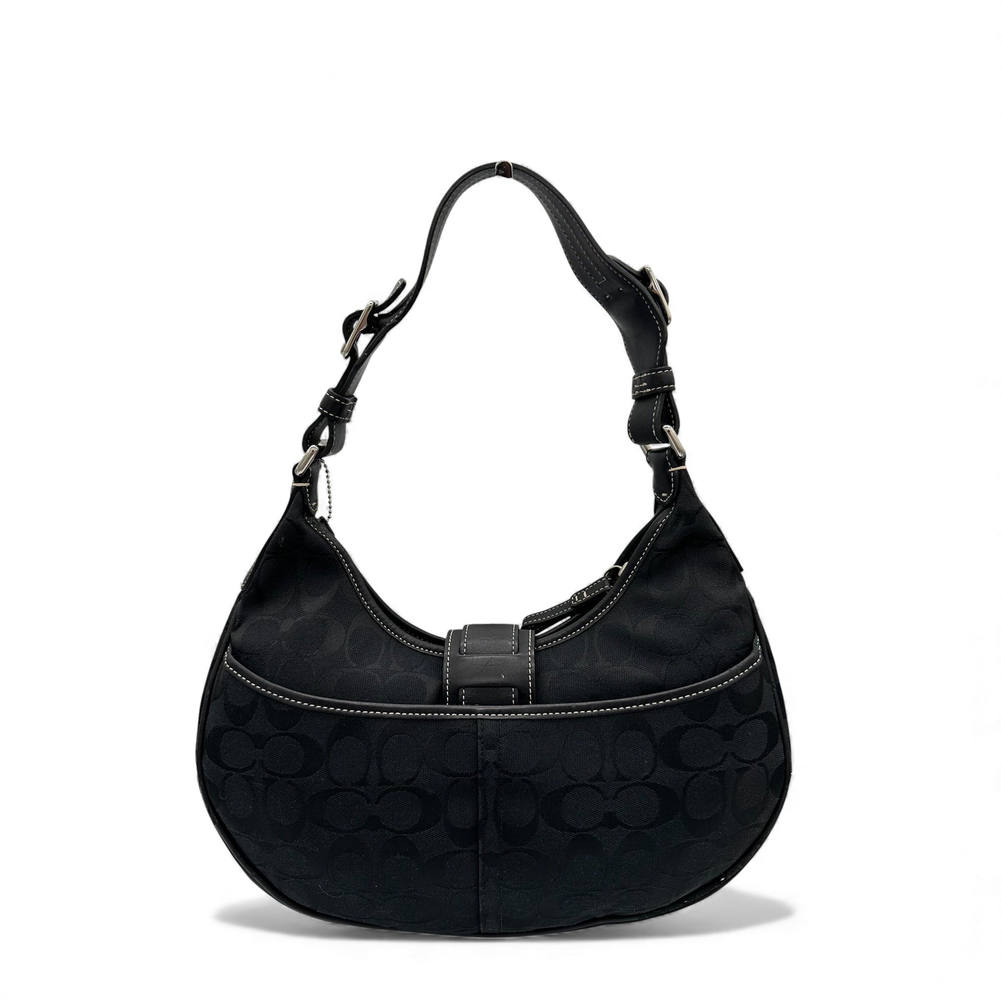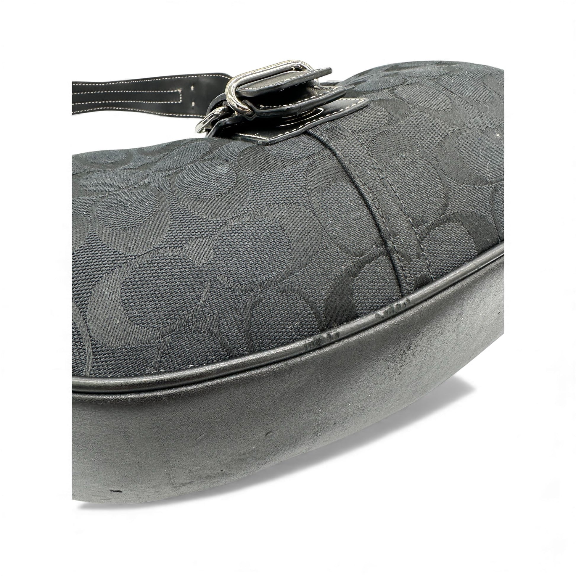 Vintage Coach 6363 Soho Buckle Shoulder Bag. In black and charcoal signature monogram, trimmed with black leather. A Y2K piece from 2006.