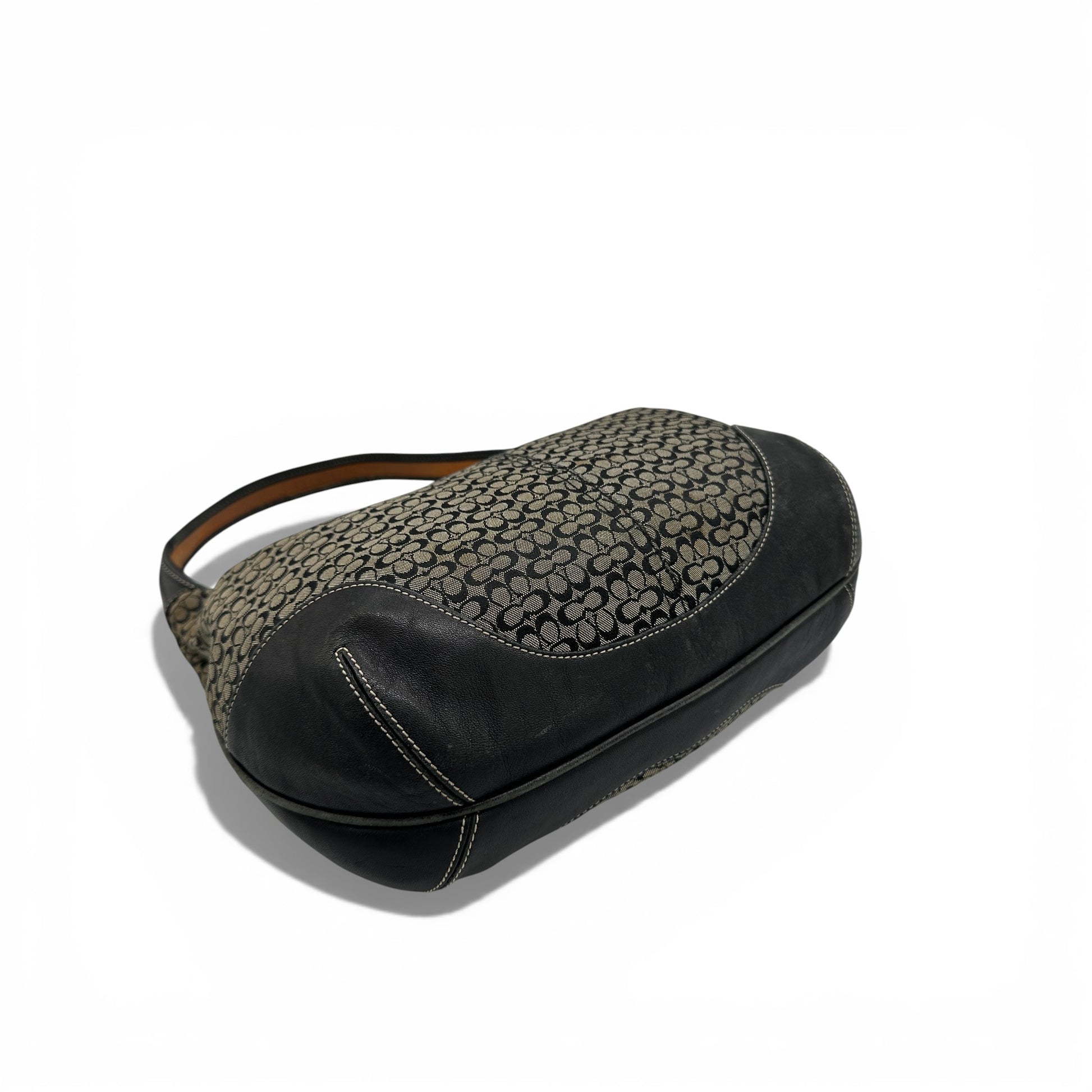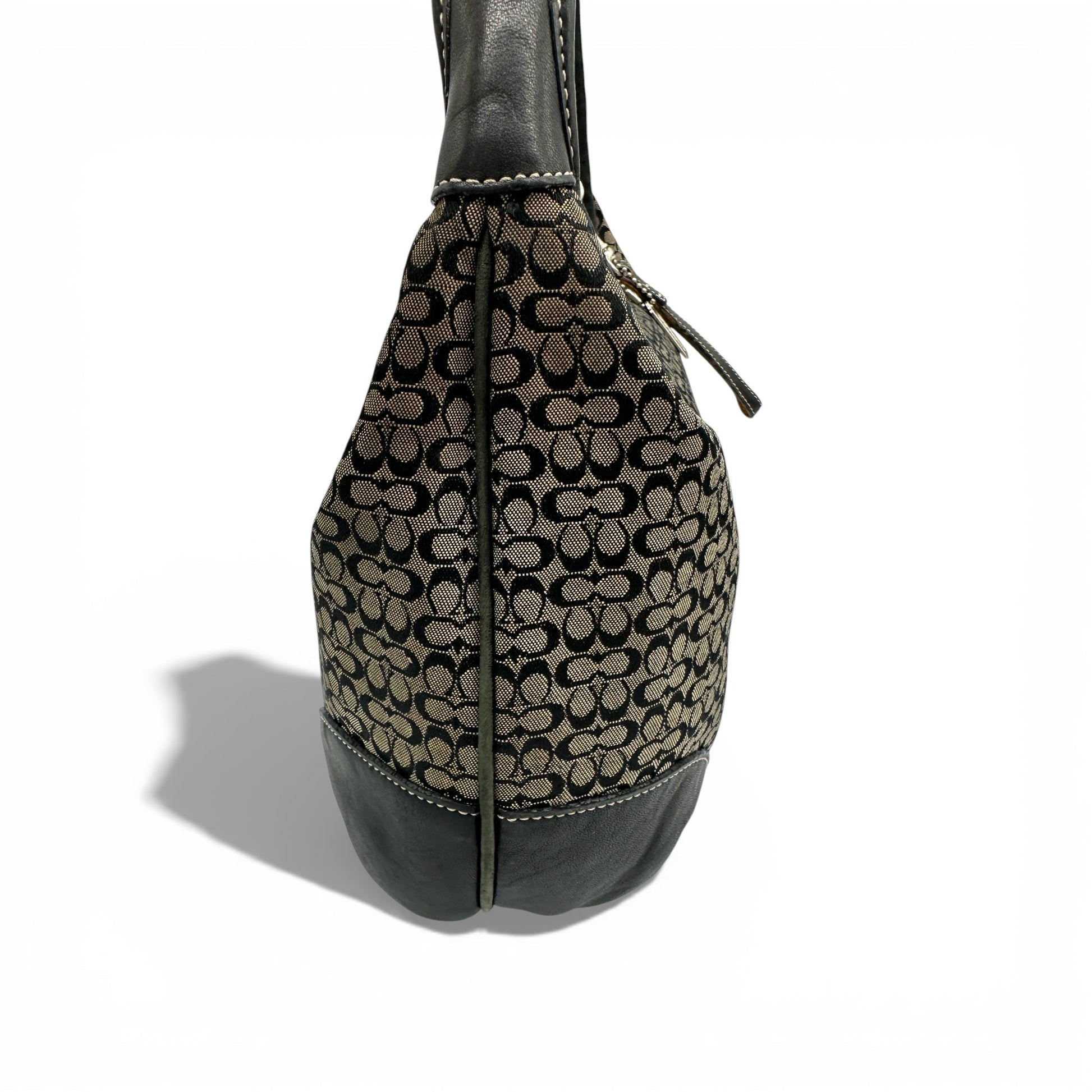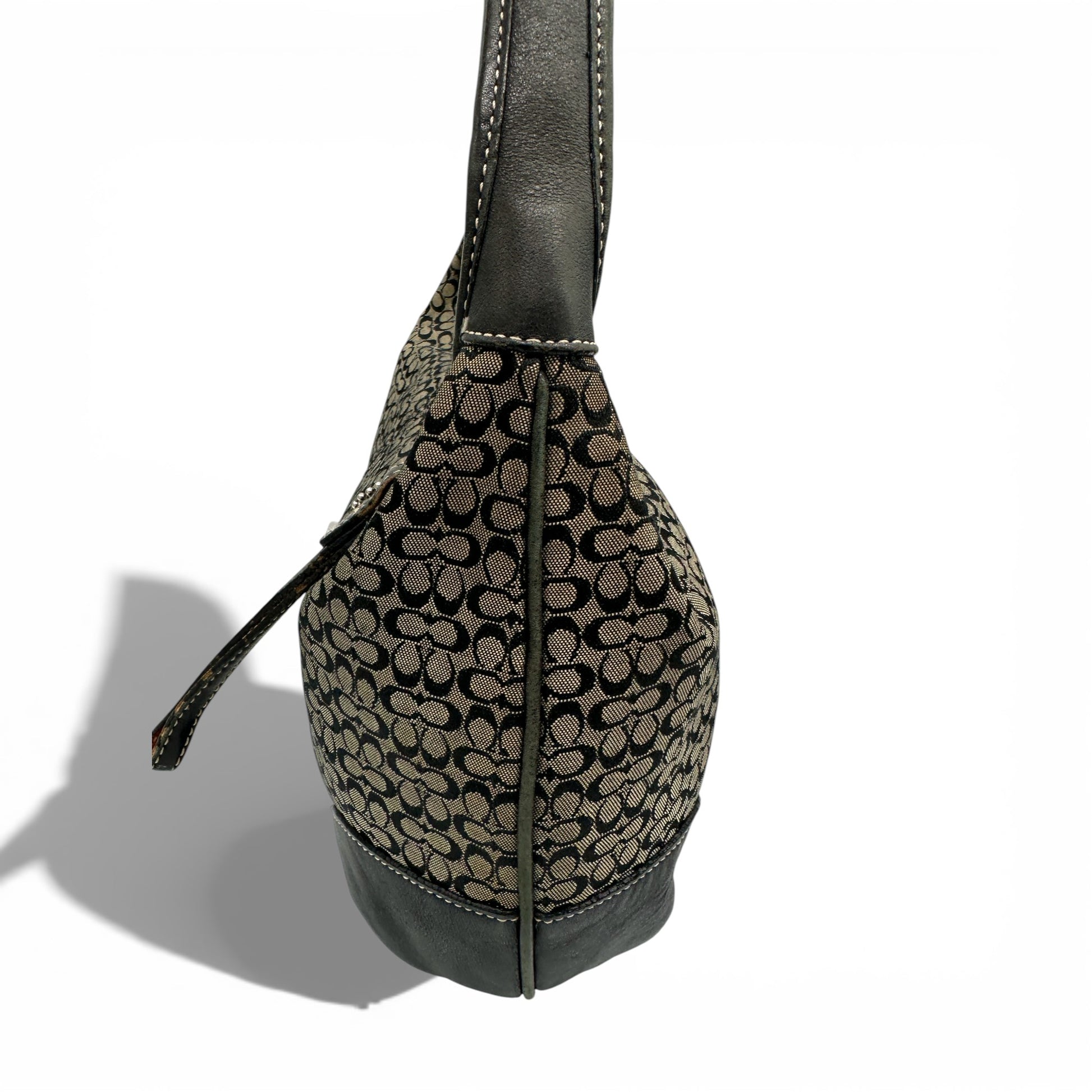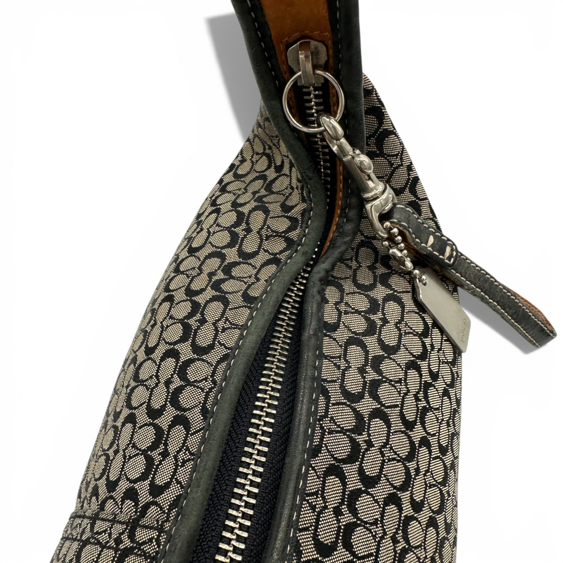 Vintage Coach 6617 Slouchy Ergo Shoulder Bag. In black and grey mini monogram with black leather trim and silver hardware. A Y2K piece from 2003.