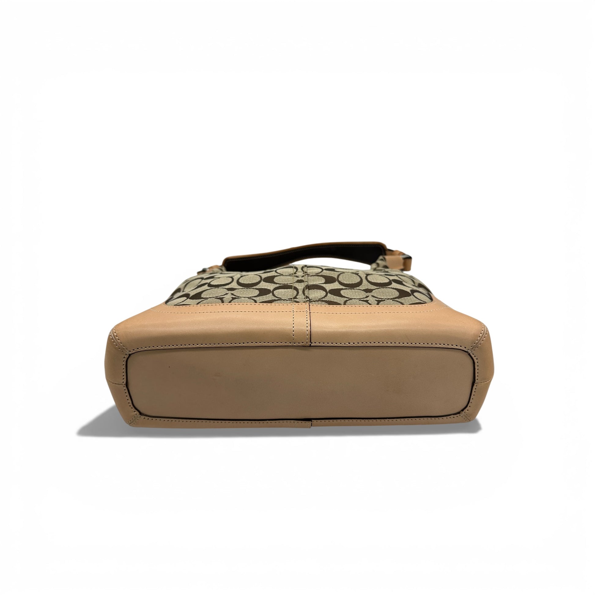 Vintage Coach 6824 Soho Shoulder Bag in brown and beige signature monogram. With tan leather trim and silver coloured-tone buckle hardware. A Y2K piece from 2004 - new with tags.