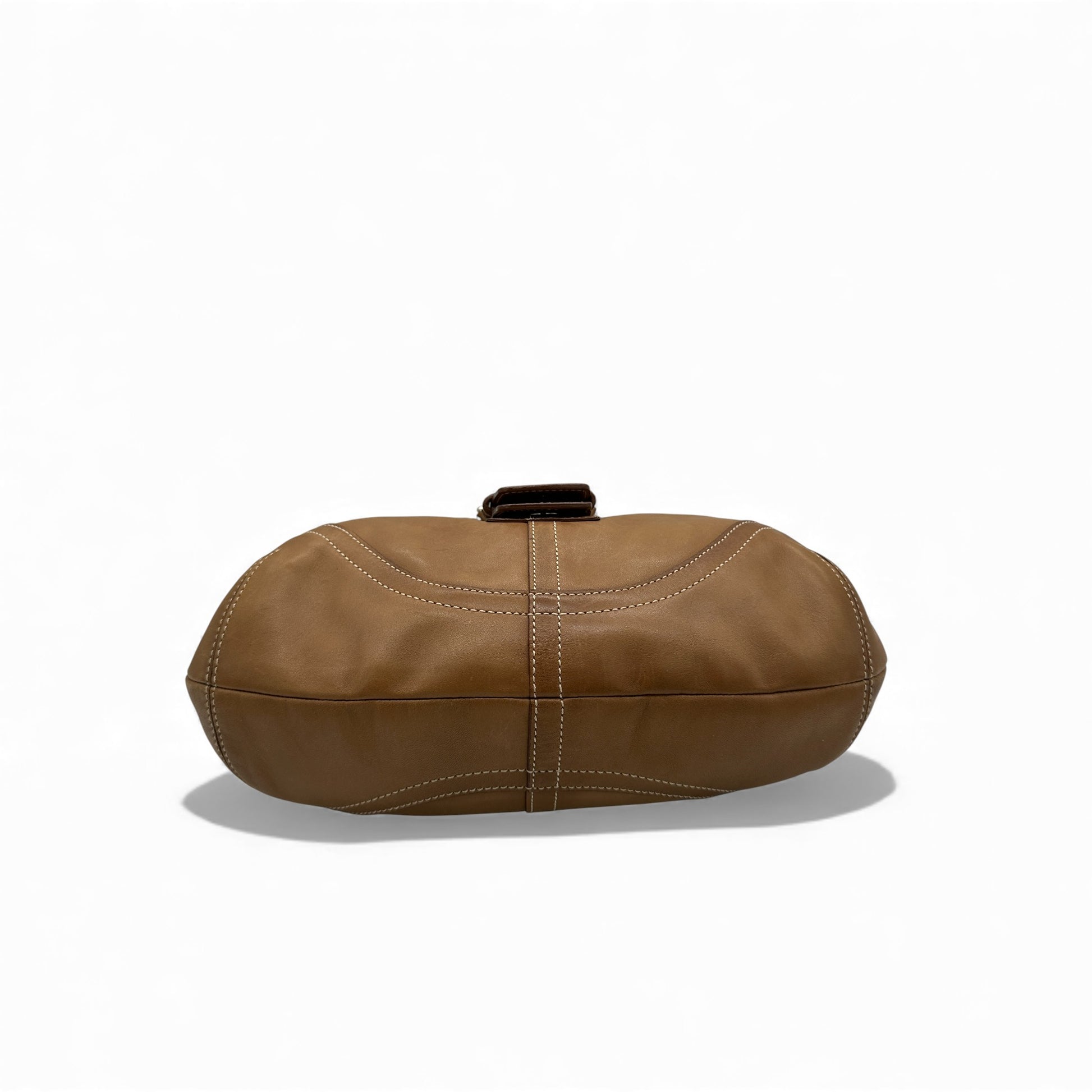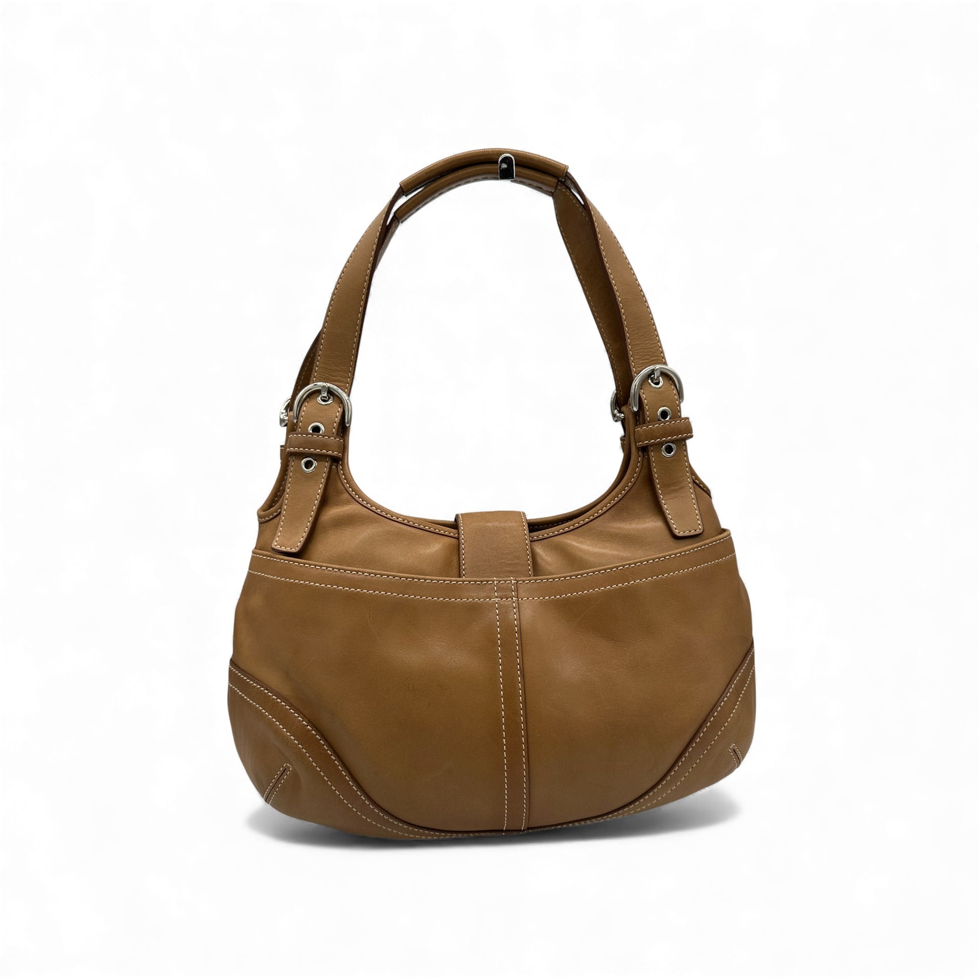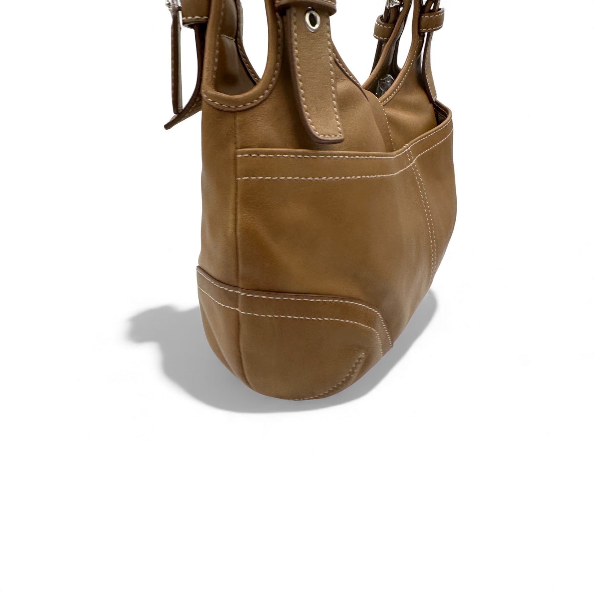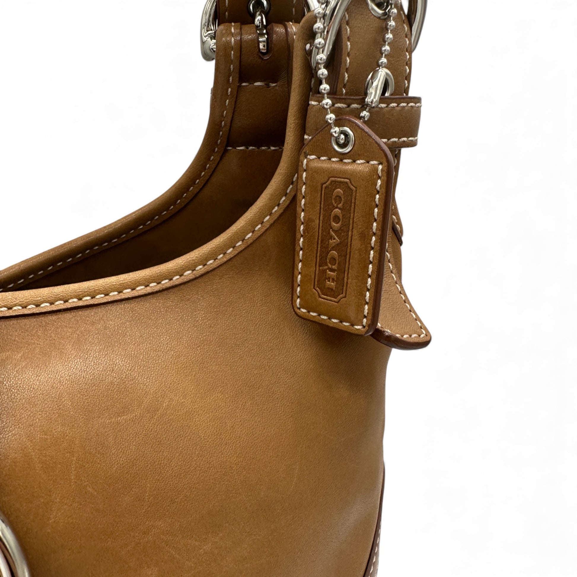 Vintage Coach 9738 Soho Hobo Shoulder Bag. In tan leather with silver soho buckle hardware and signature monogram lining. A staple Y2K piece from 2004.