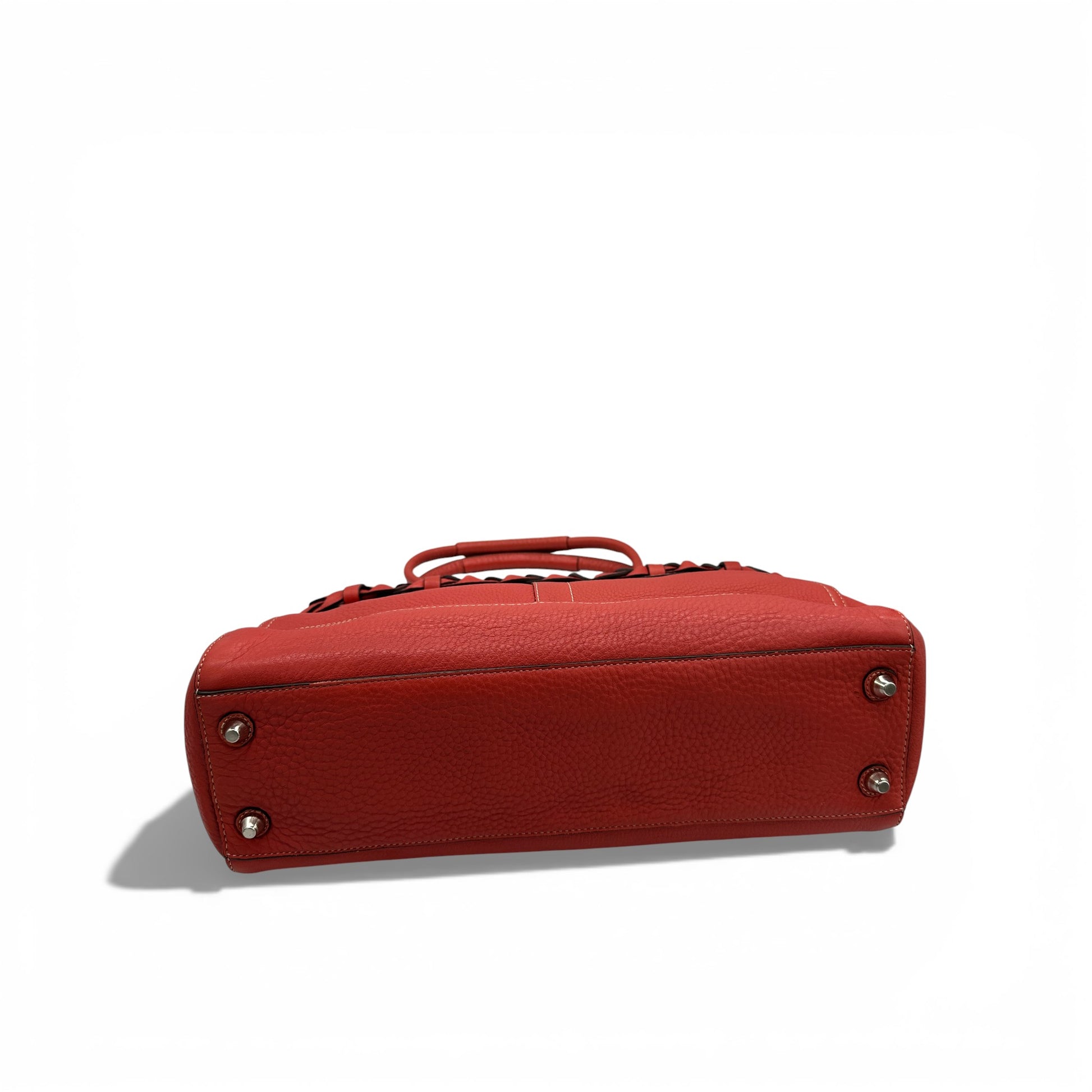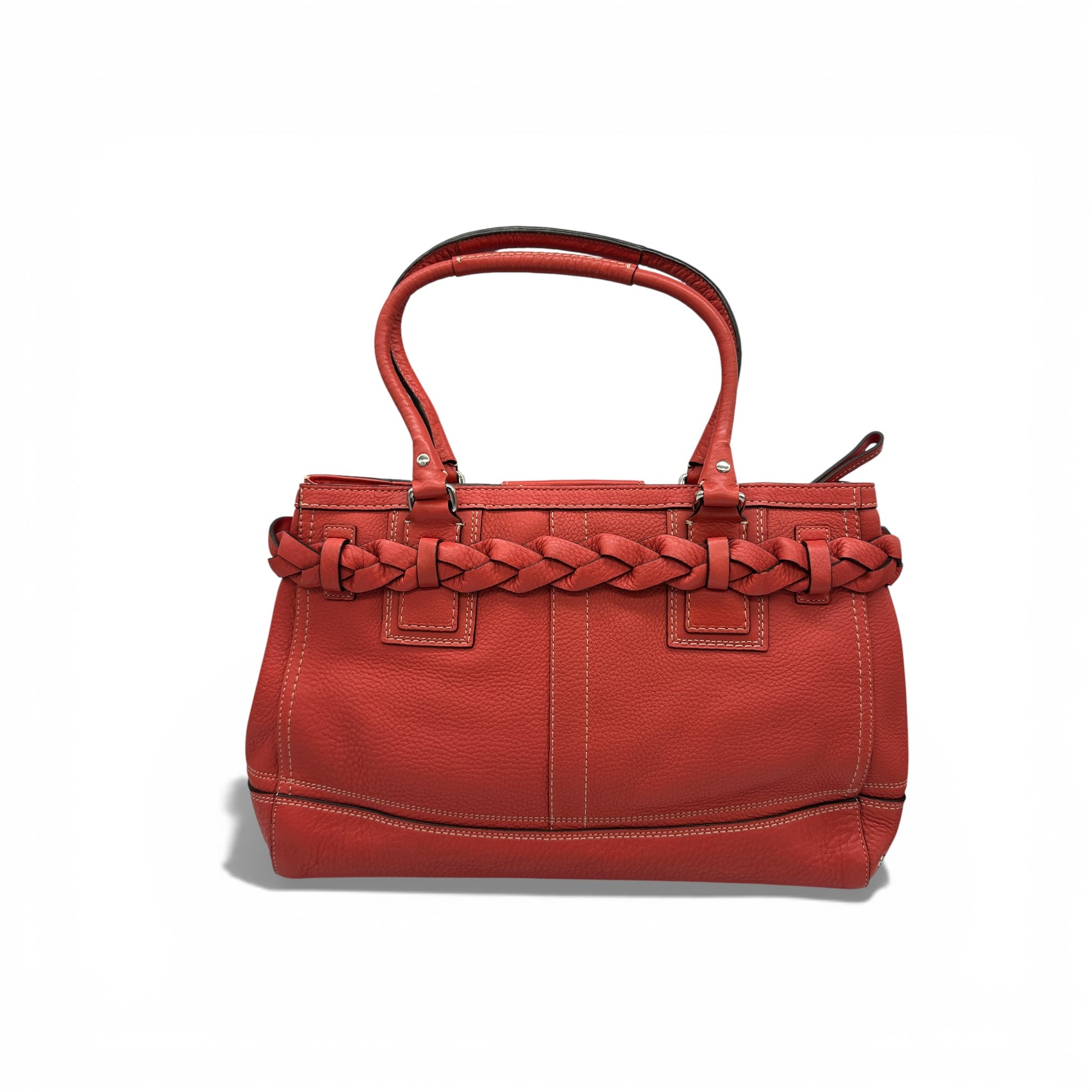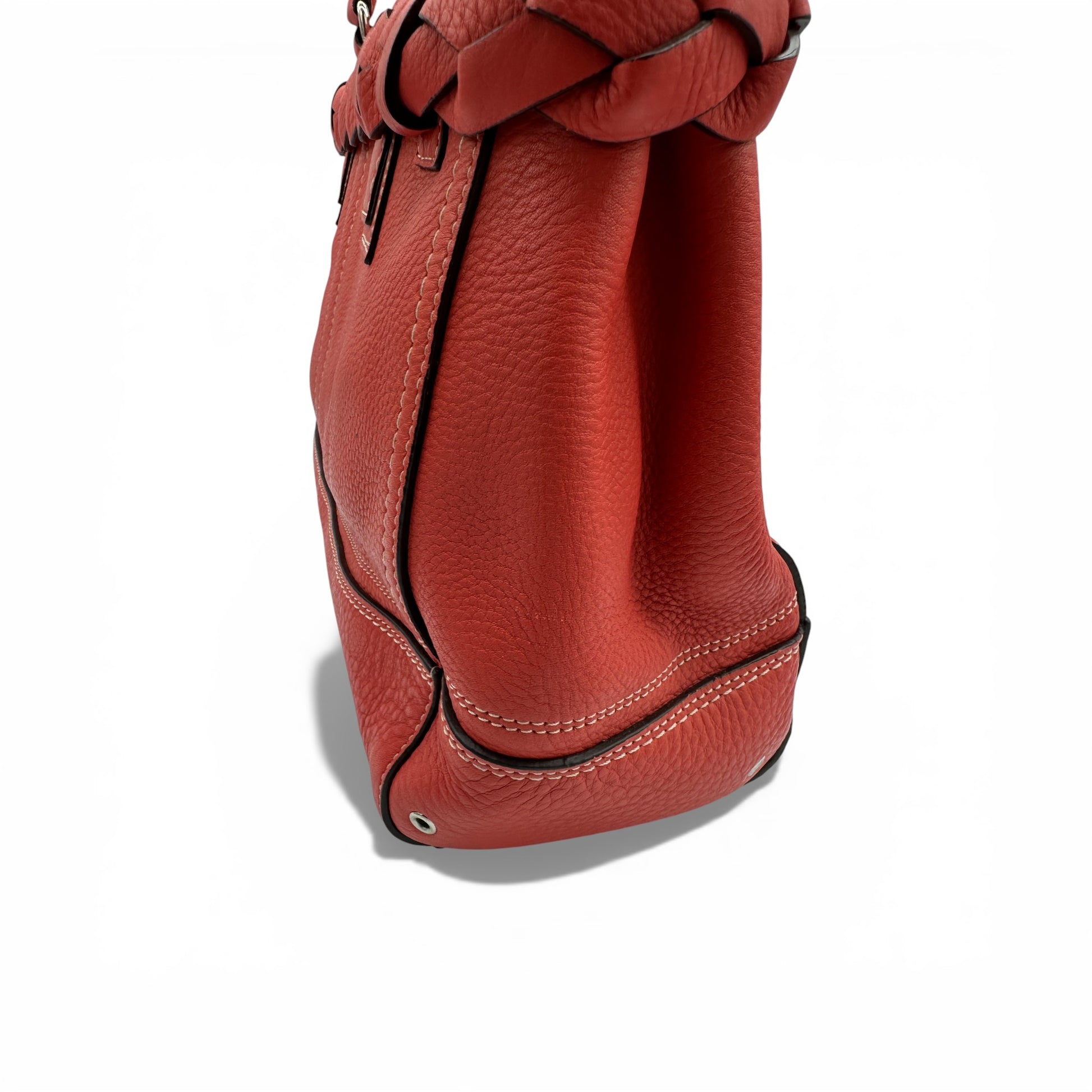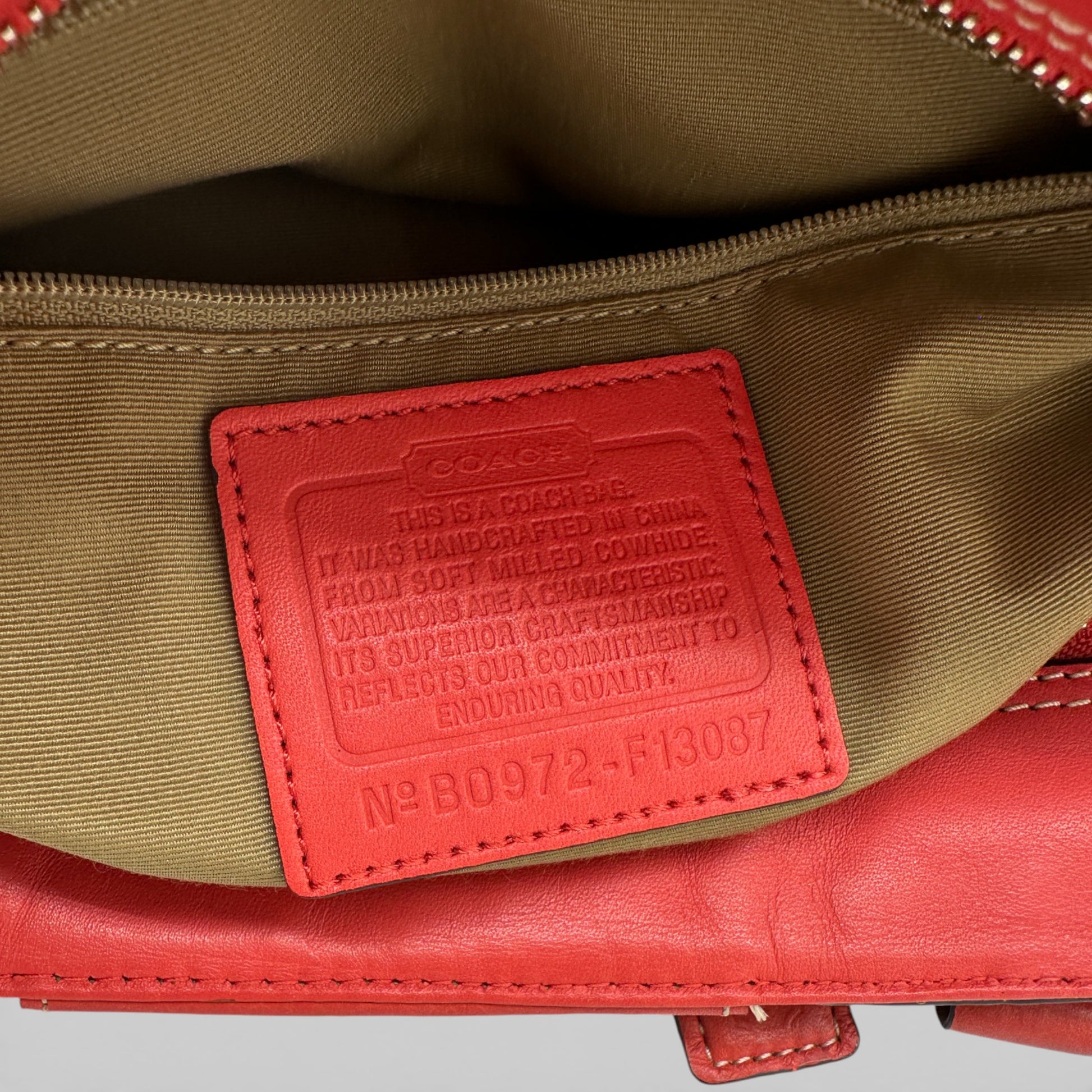 Vintage Coach F13087 Hampton Clip Handbag. In red soft pebbled cowhide leather, with silver horsebit buckle hardware and braided accents. A Y2K piece from 2009.