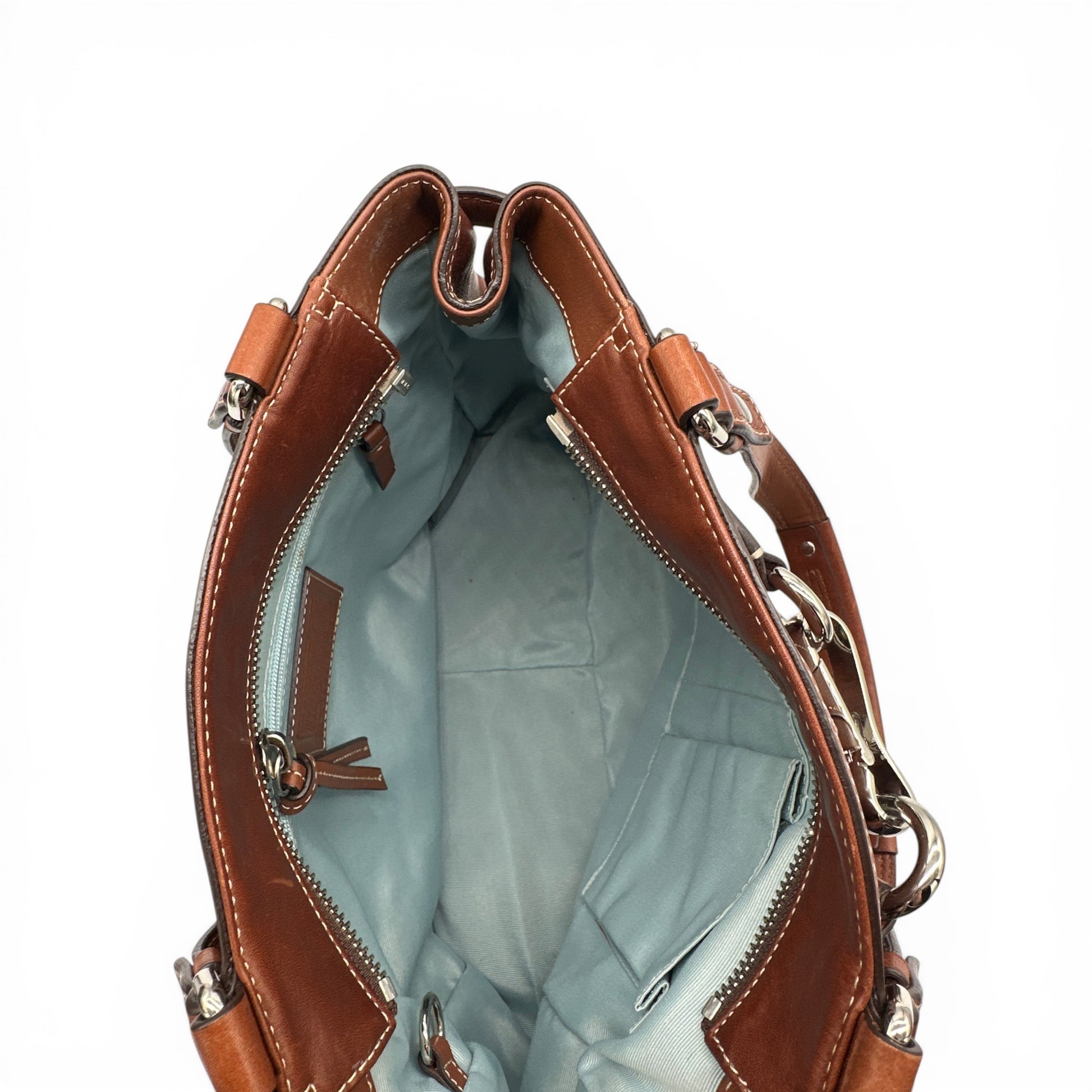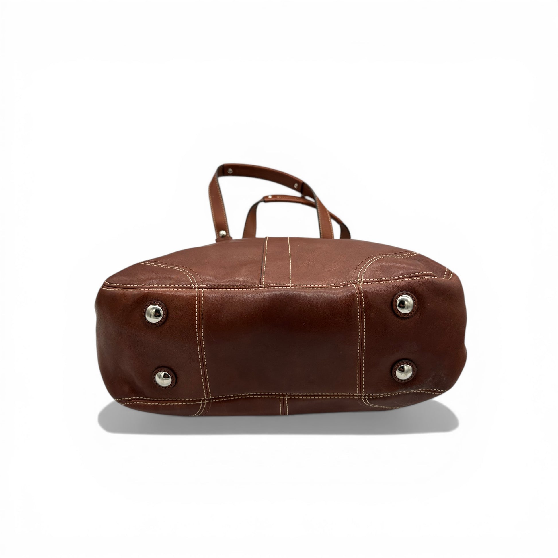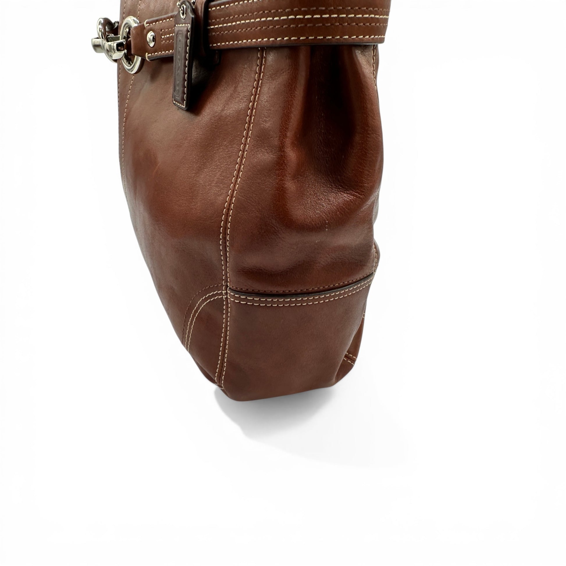 Vintage Coach F13995 Hampton Clip Handbag, in rich brown cowhide leather, with silver-toned Hampton clip hardware. A Y2K piece from 2009.