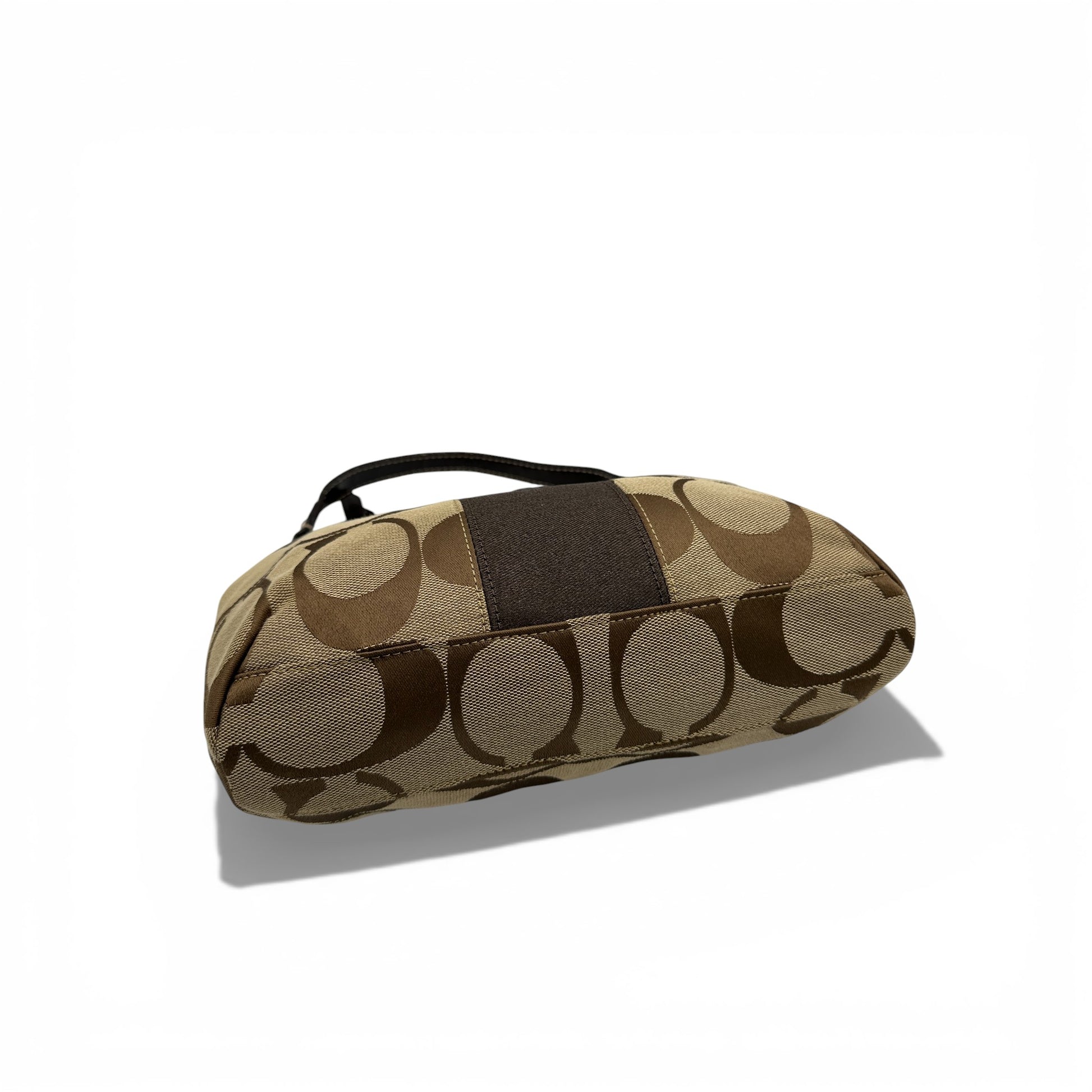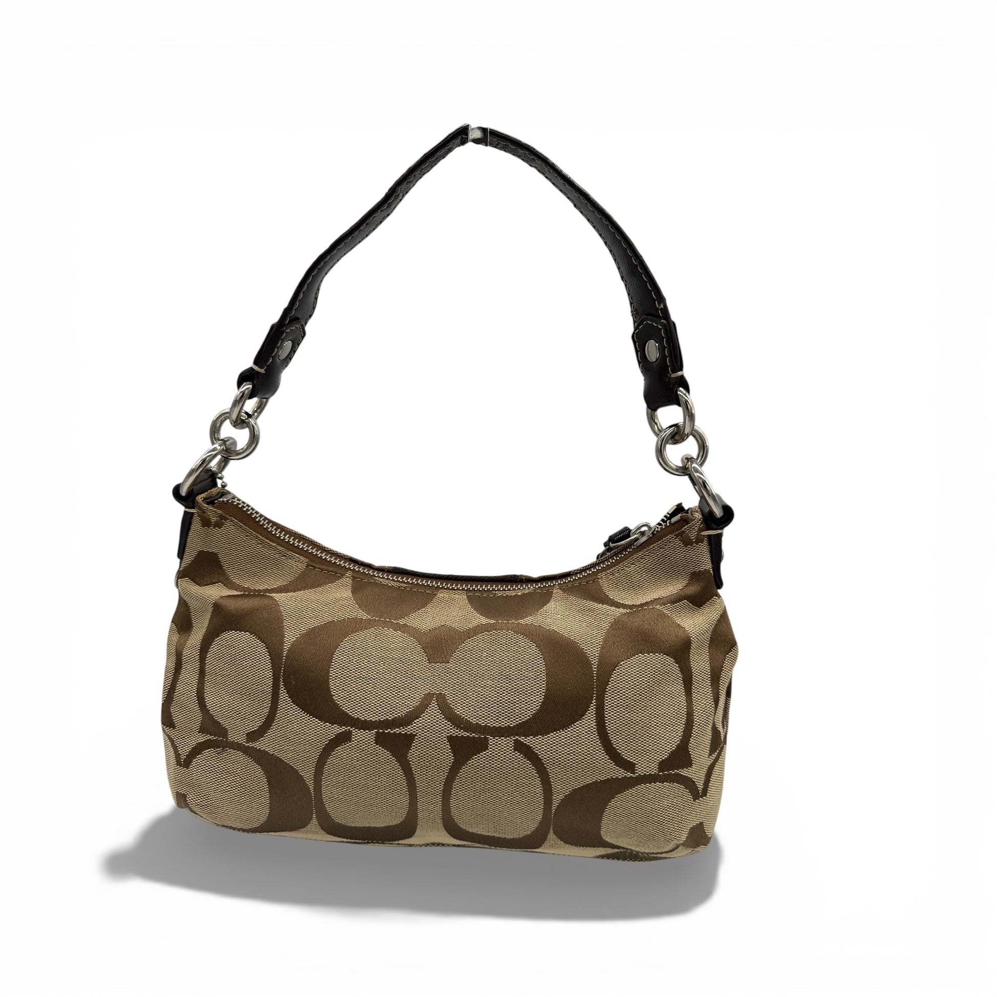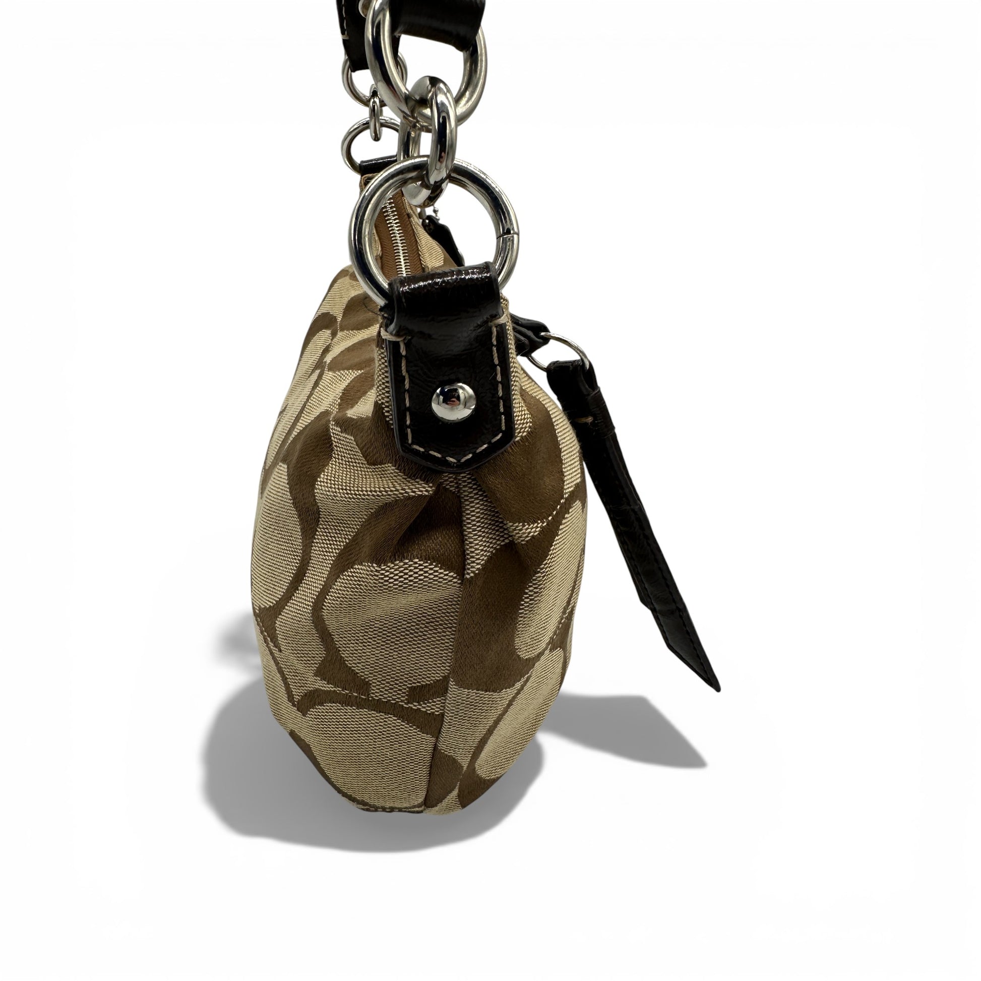 Vintage Coach F19218 Shoulder Bag. In brown and beige signature monogram canvas, with brown patent leather trim and silver-tone hardware. A Y2K piece from 2012